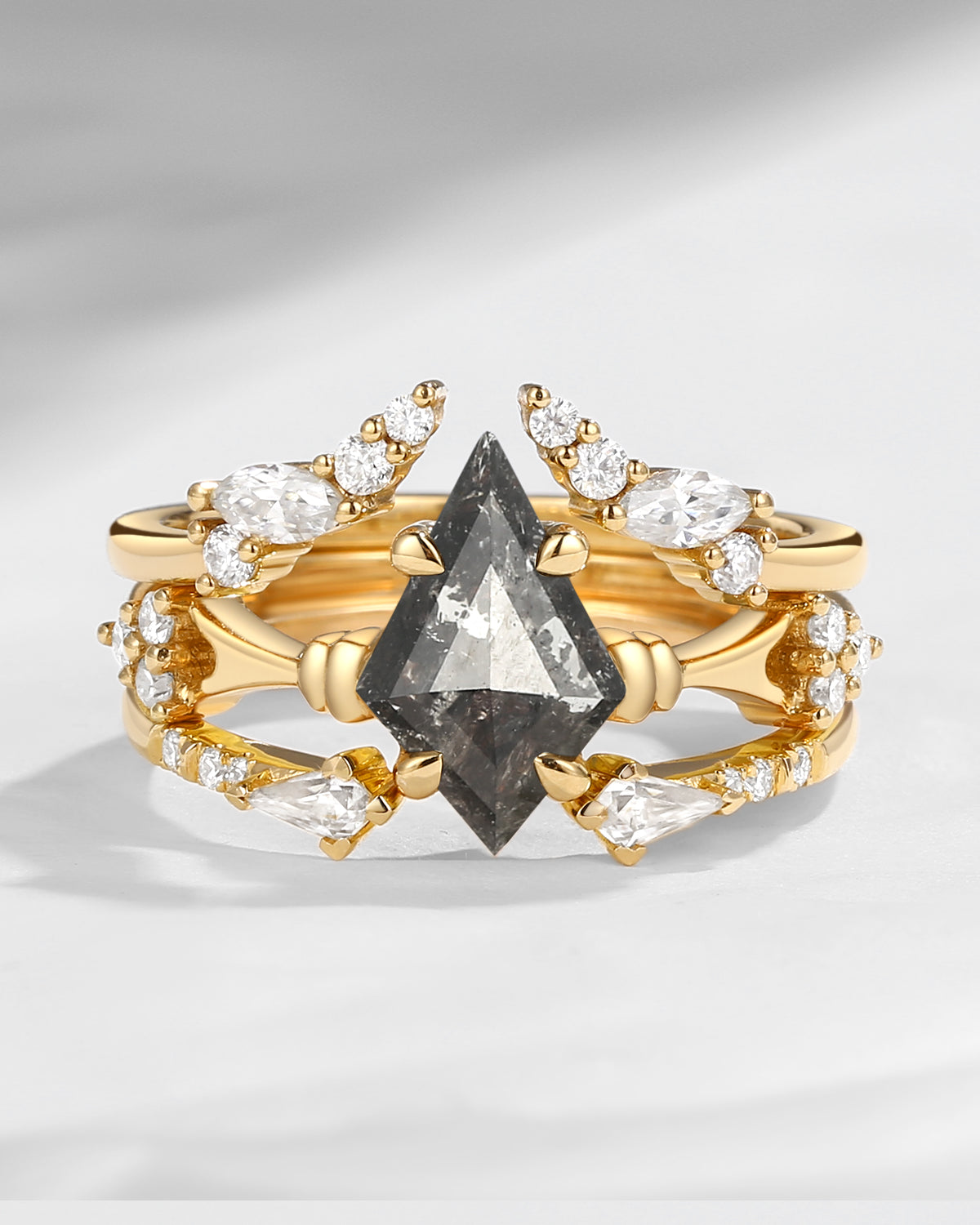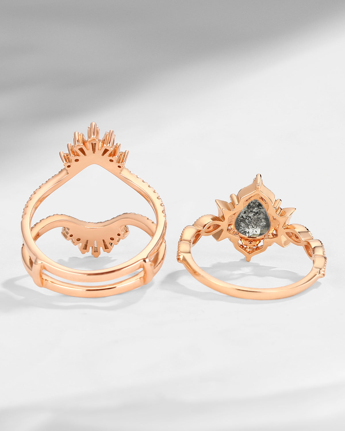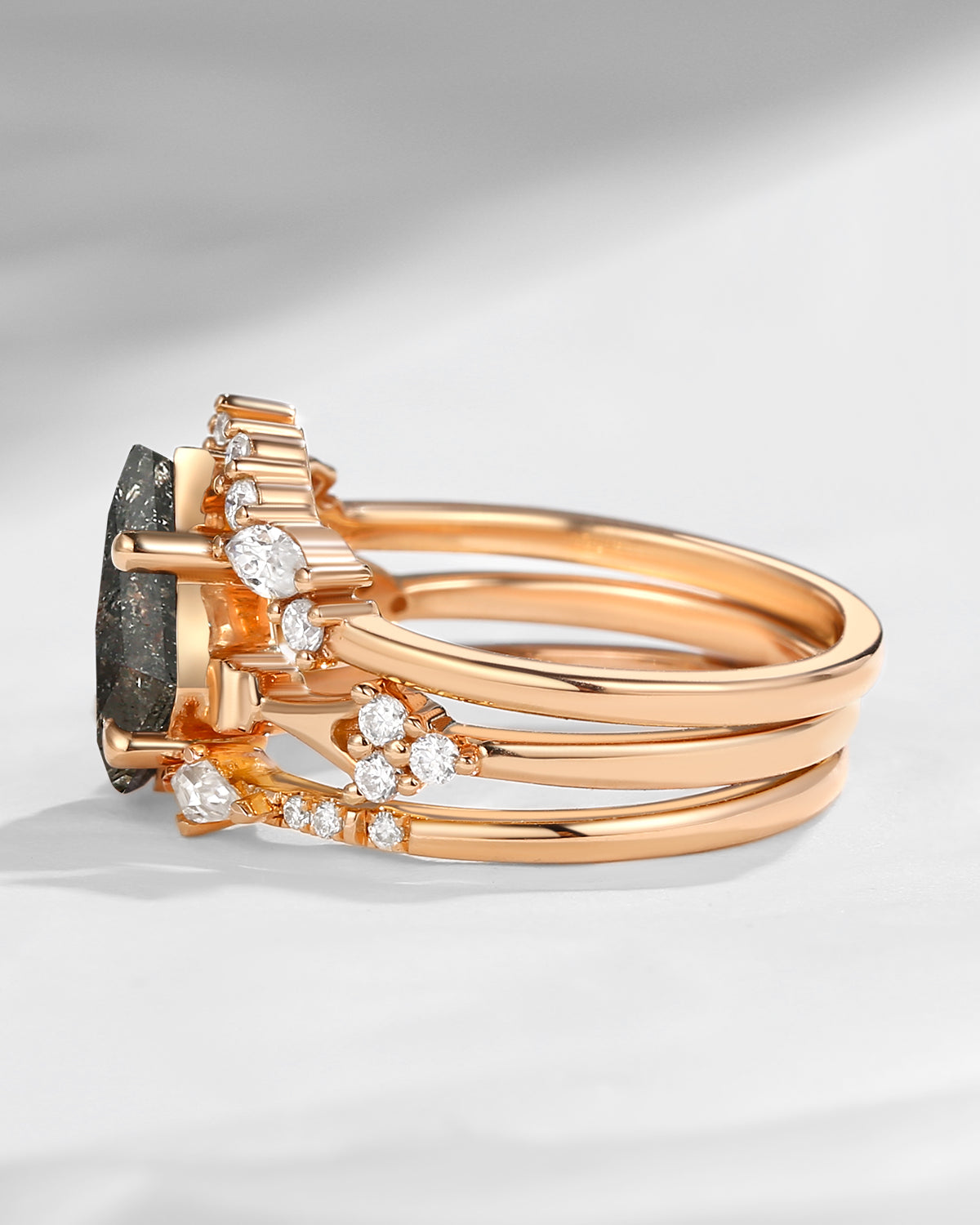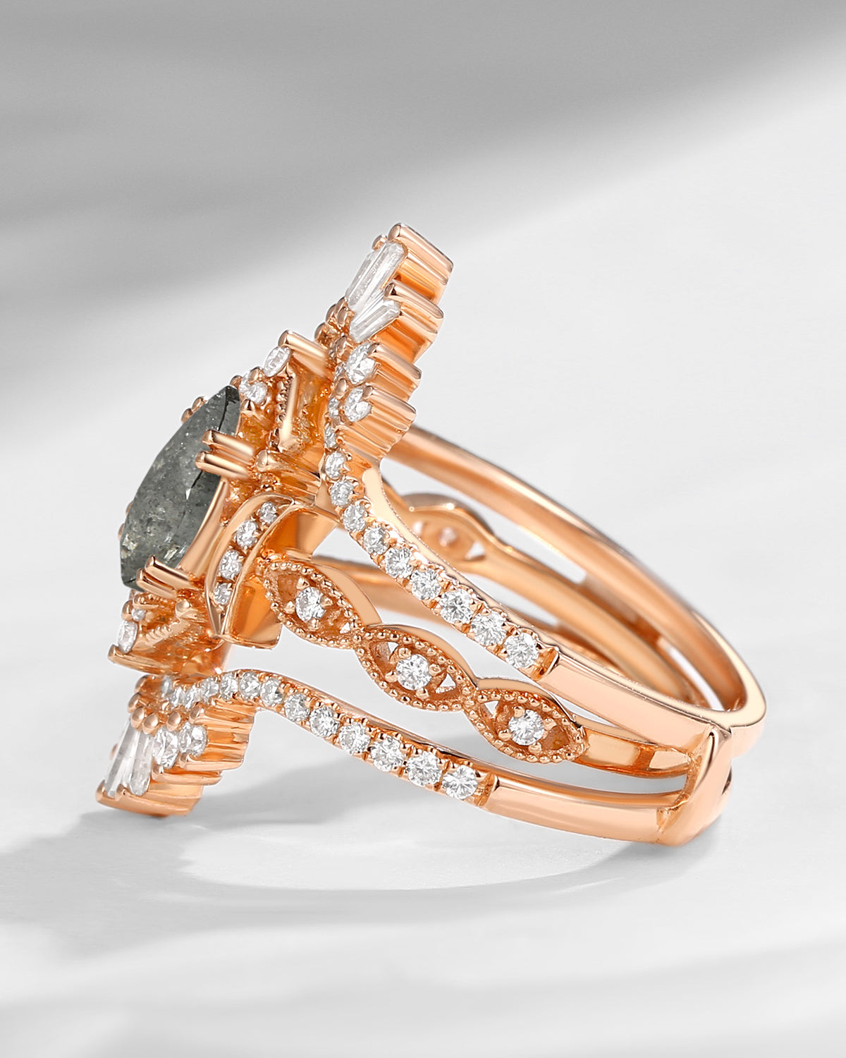 Crescent Moon | Maximalist Style Pear Shaped Moonstone Engagement Ring 3pcs