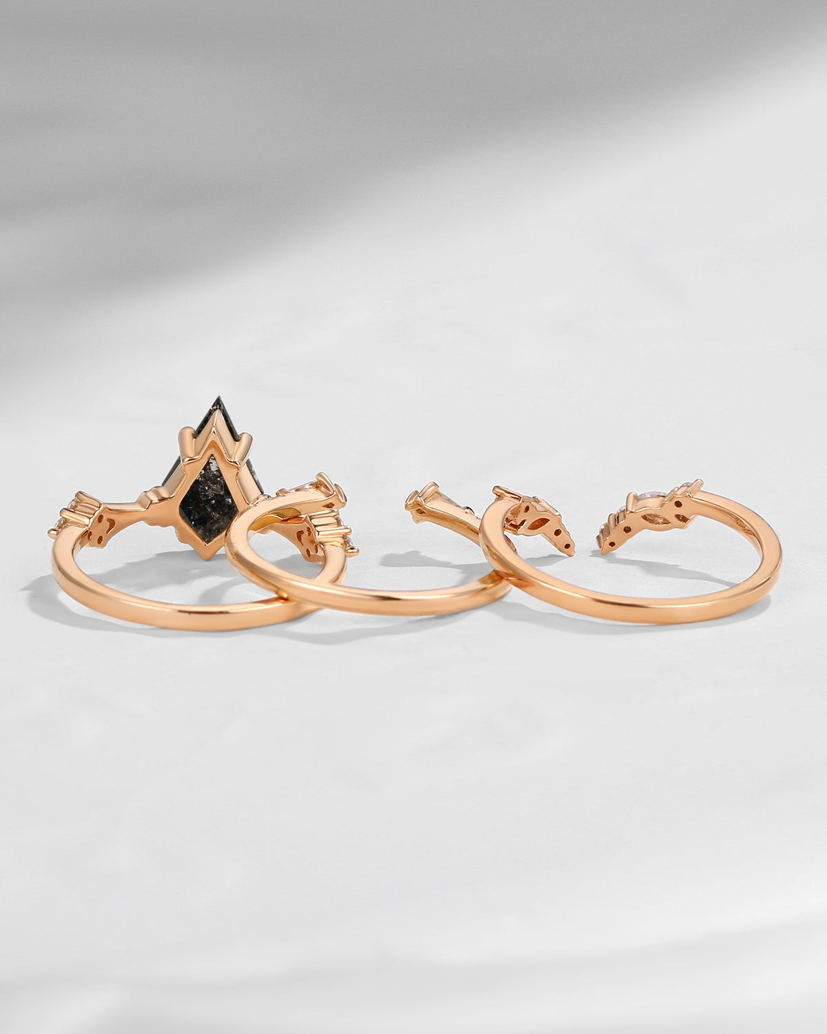 Crescent Moon | Rhombus Cut Lab Alexandrite 'Noir' Engagement Ring Set 3pcs