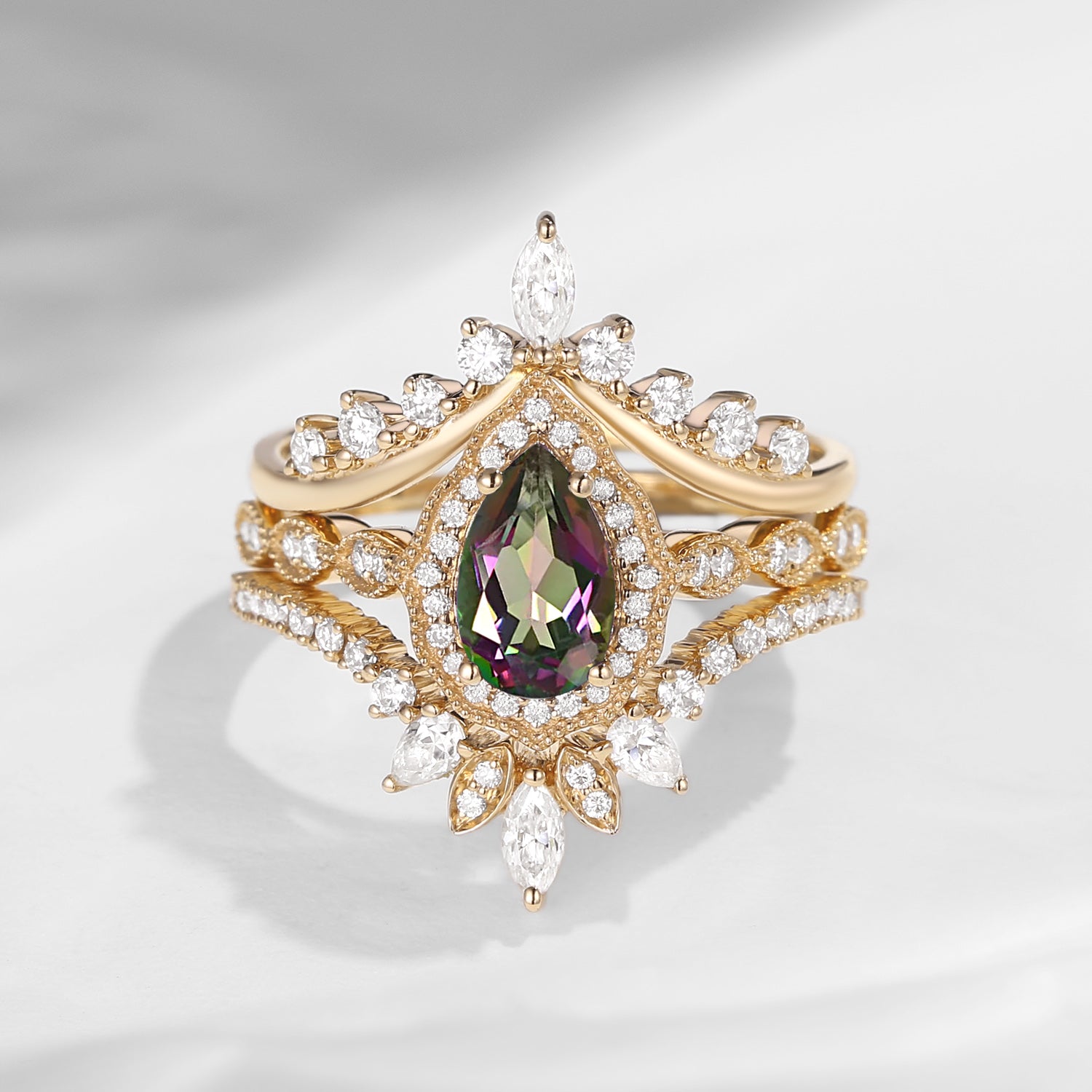Crescent moon | Antique Pear Cut Yellow Moissanite Engagement Ring Set 3pcs