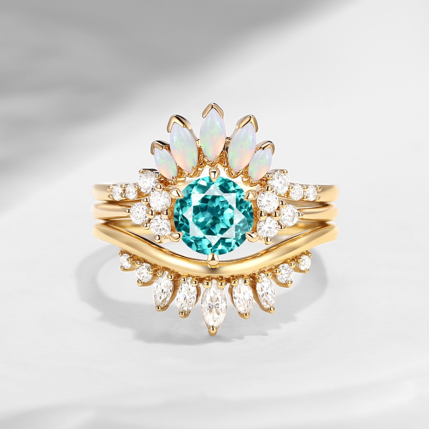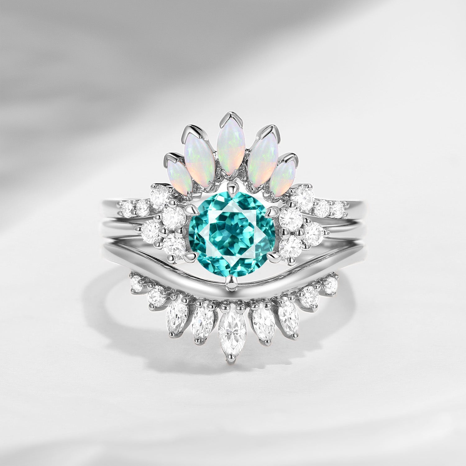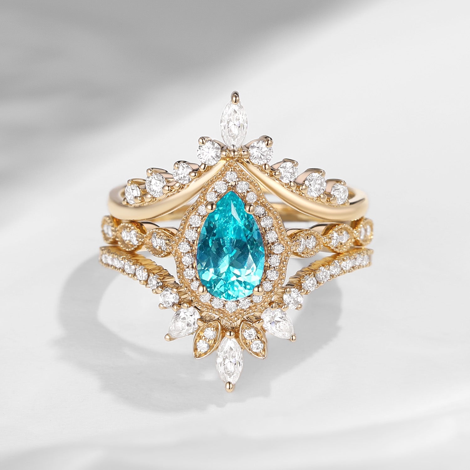 Bette‘s Eyes | Lab Paraiba Engagement Ring Set 3pcs