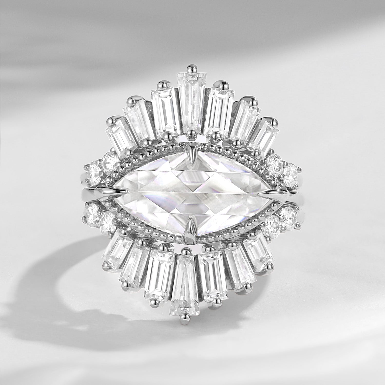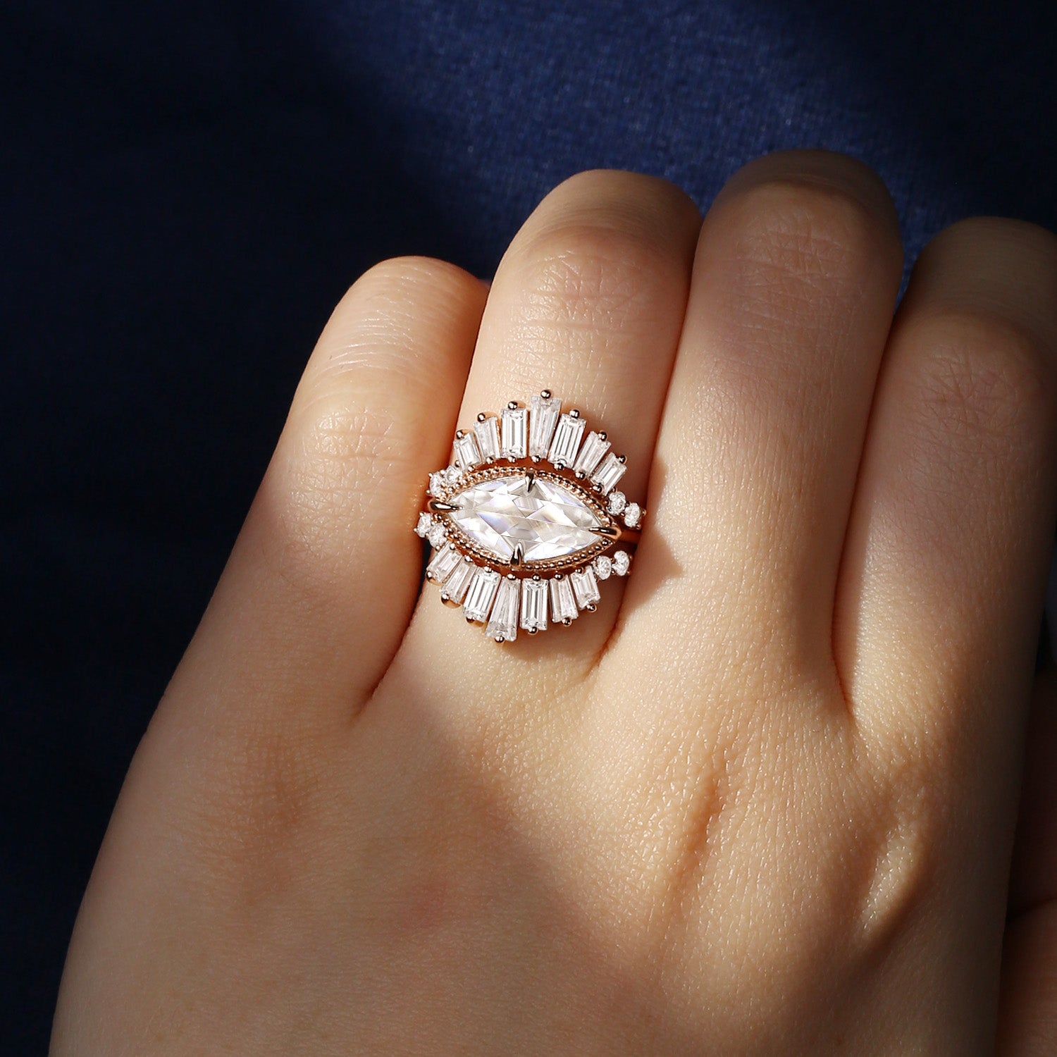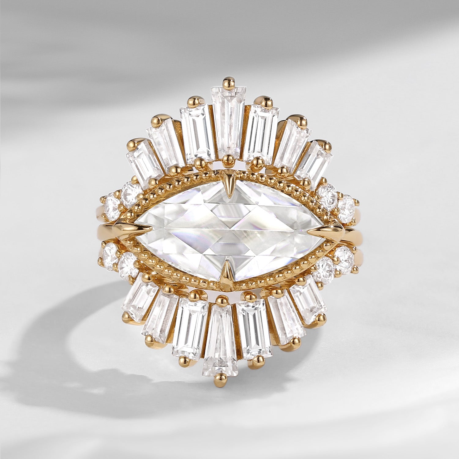 Bette‘s Eyes | Marquise Cut Moissanite Halo Evil Eye Ring 3pcs