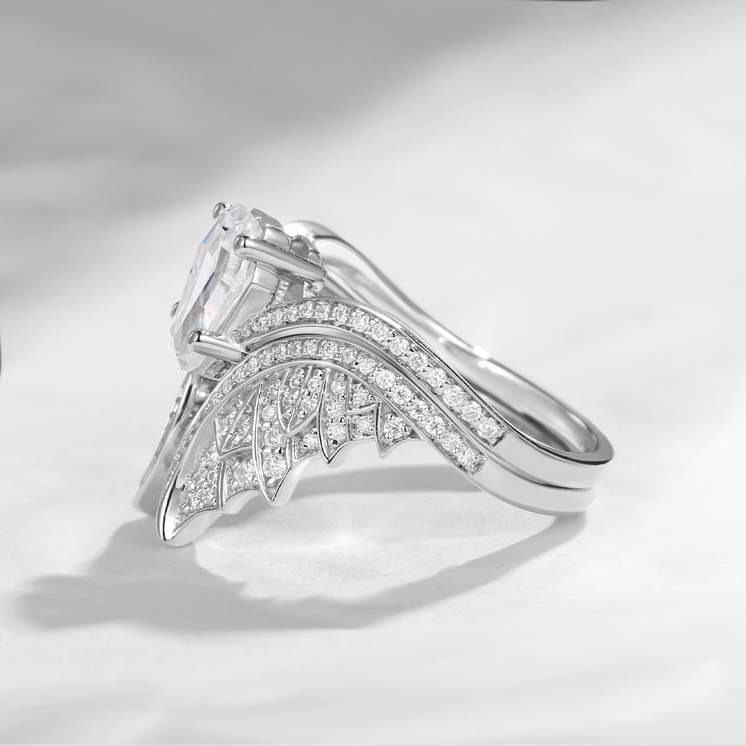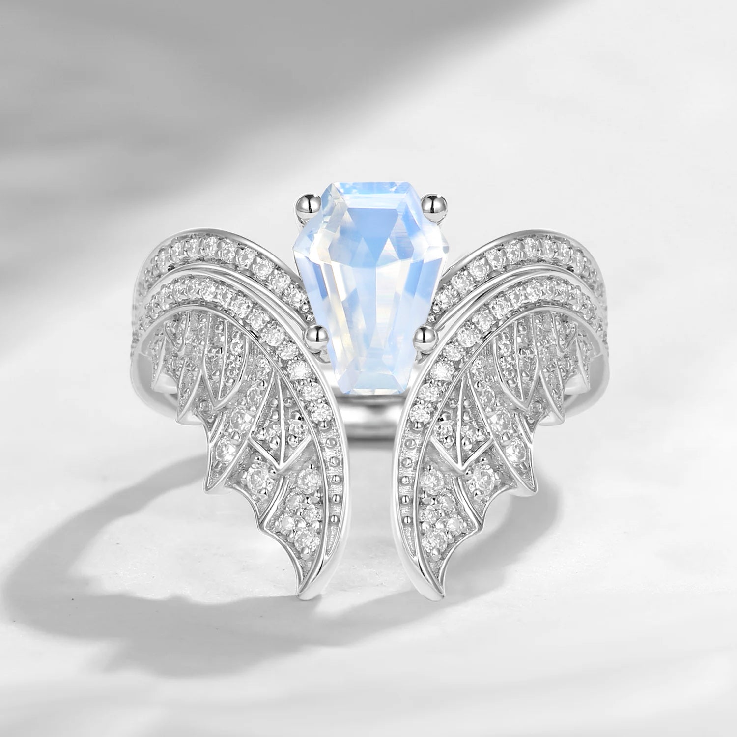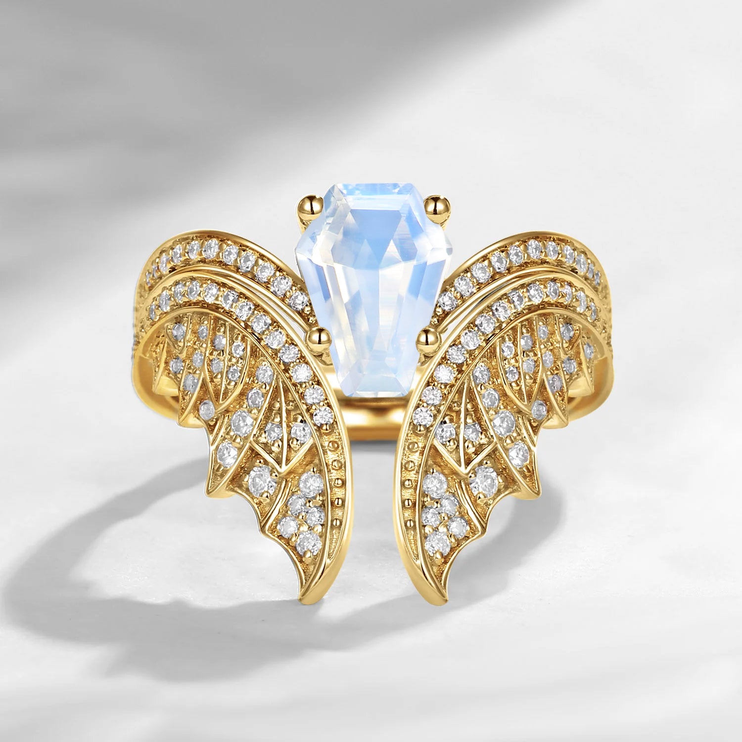 Coffin Cut Moonstone Vintage Bridal Set 2pcs - Bat Ring