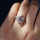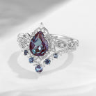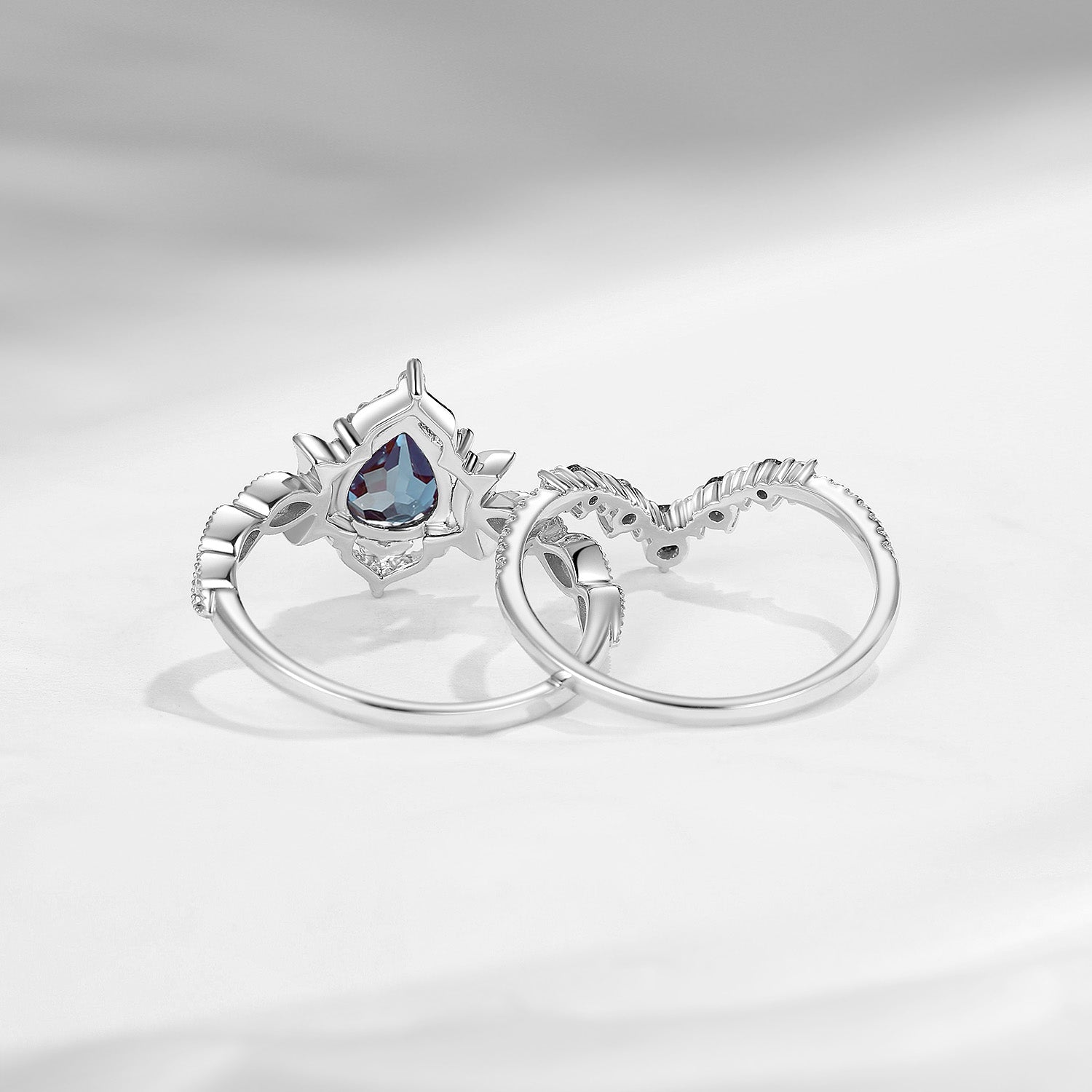 White Gold Lab Alexandrite Ring Set 2pcs Moon Engagement Ring Lab Alexandrite Ring Crystal Engagement Ring Pear Shaped Ring Gift For Her