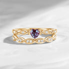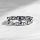 Dainty Heart Shaped Lab Alexandrite Classic Promise Ring Set 2pcs