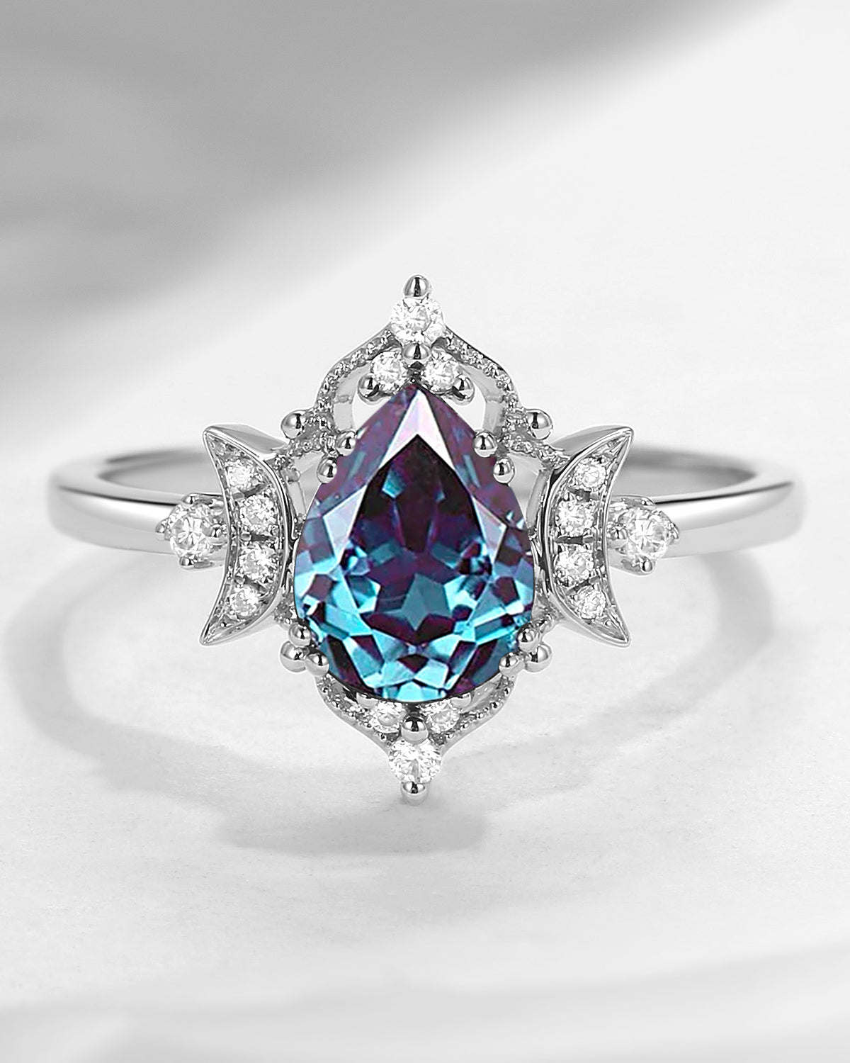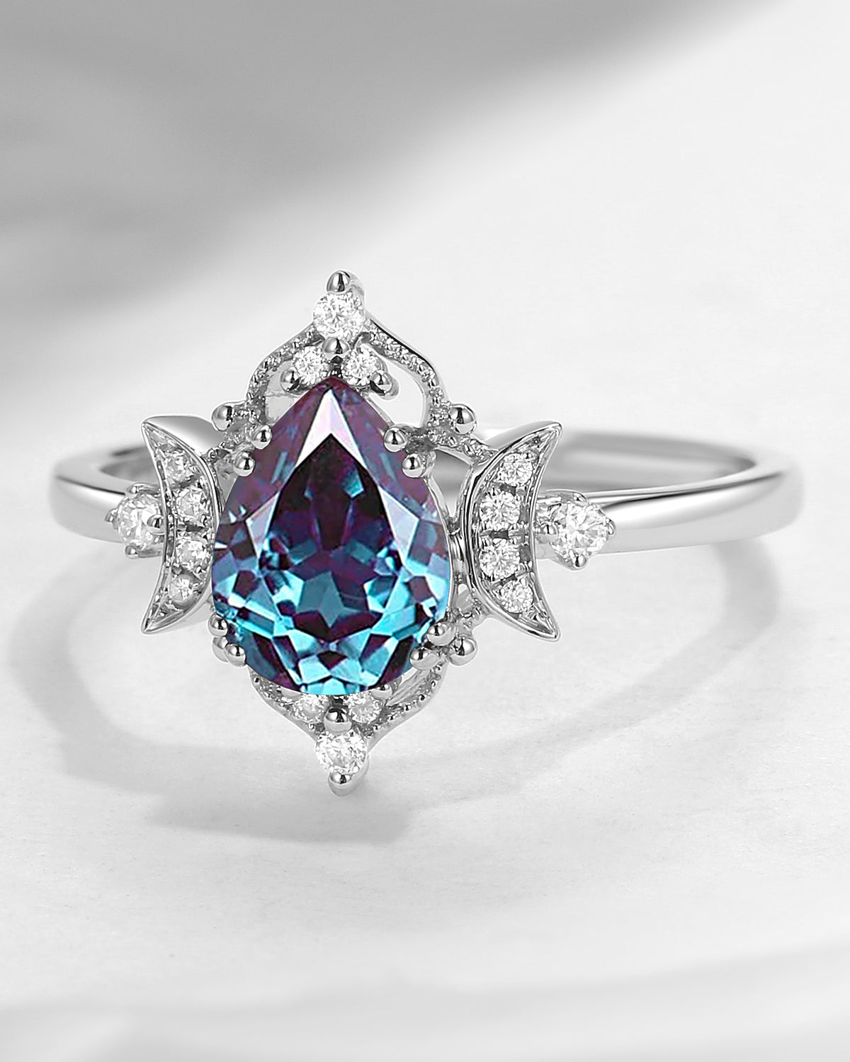 Alexandrite rings, acclaimed as the "color-changing rings" due to its unique color-changing properties. Under the sun, it can appear green or blue, and under the light, it turns red or purple. This magical color change sets alexandrite rings apart from all rings.