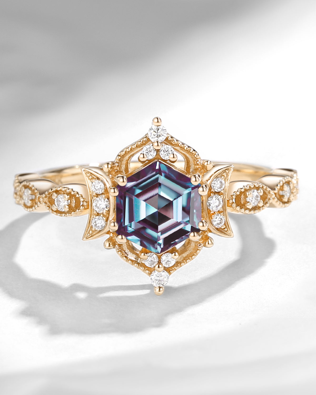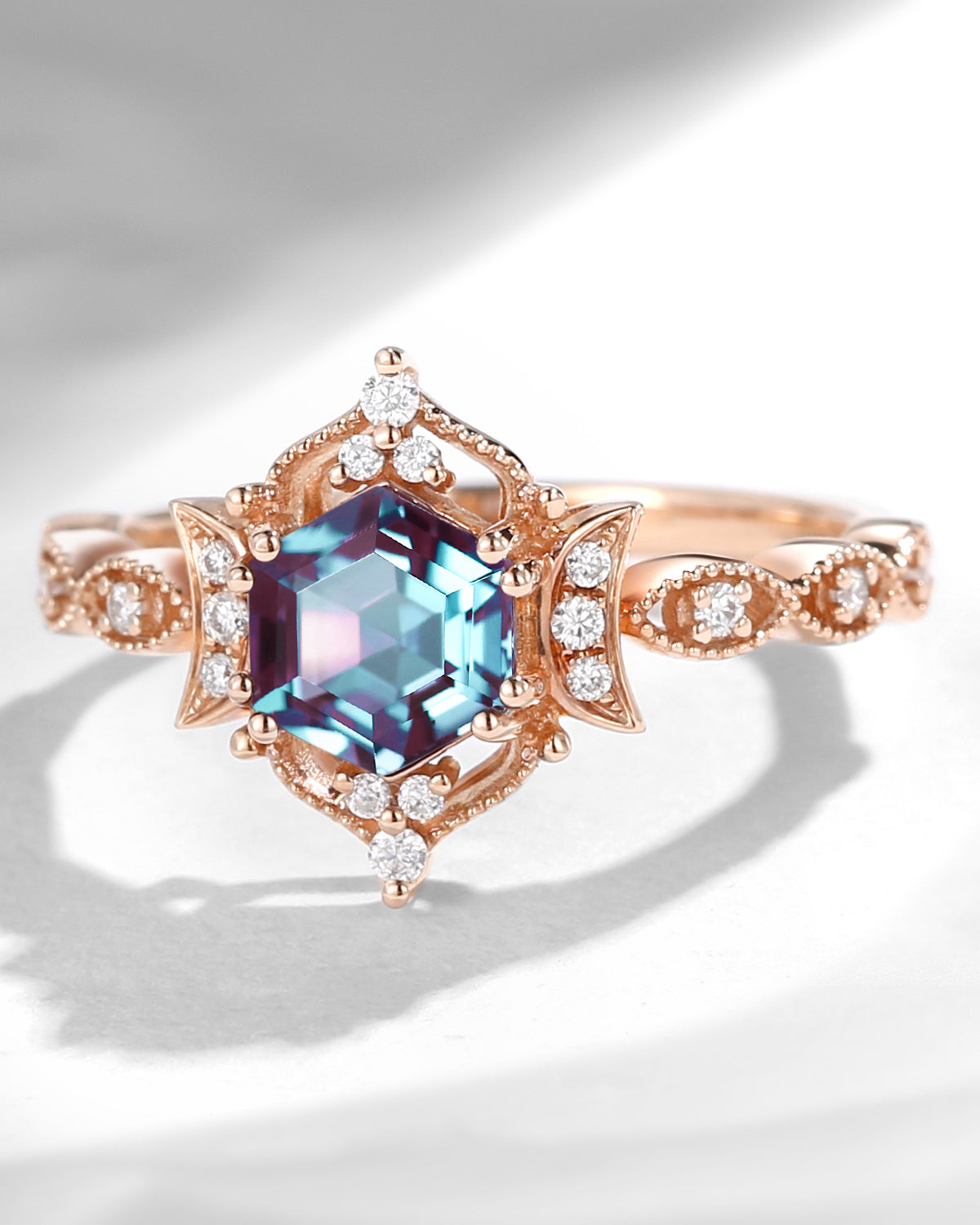 Alexandrite ring has a unique mysterious charm. The distinctive color change symbolizes the variation and endurance of love, representing the depth and intensity of the couple's relationship and their expectations for the future. Alexandrite engagement ring is also symbolized as a sign of luck and success, which also makes this stone widely used in engagement rings. Couples who choose alexandrite engagement rings will be able to share this luck and success, adding endless anticipation and hope for their future life.