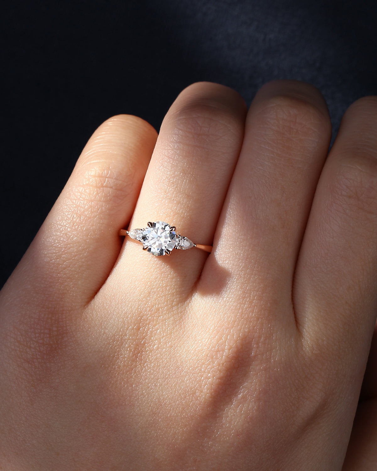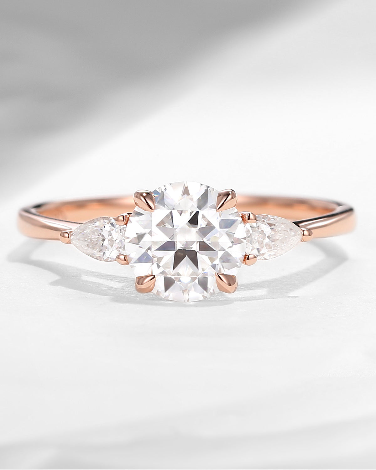 1.0ct Round Cut Moissanite Three Stone Engagement Ring