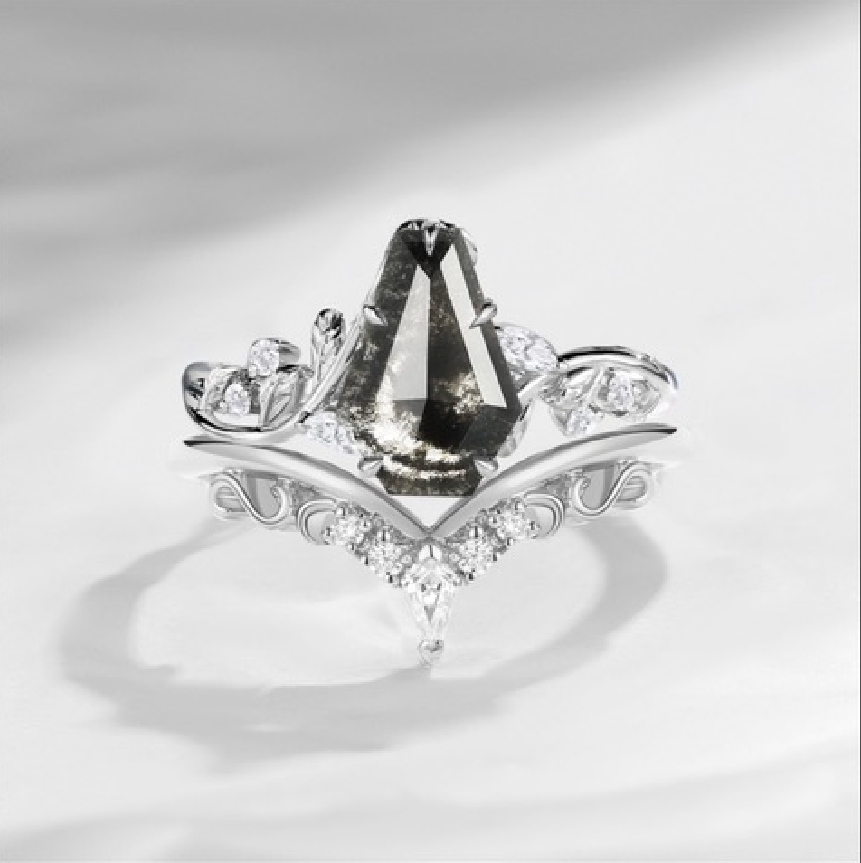 Center Stone: 8*12mm Coffin Salt And Pepper Diamond
