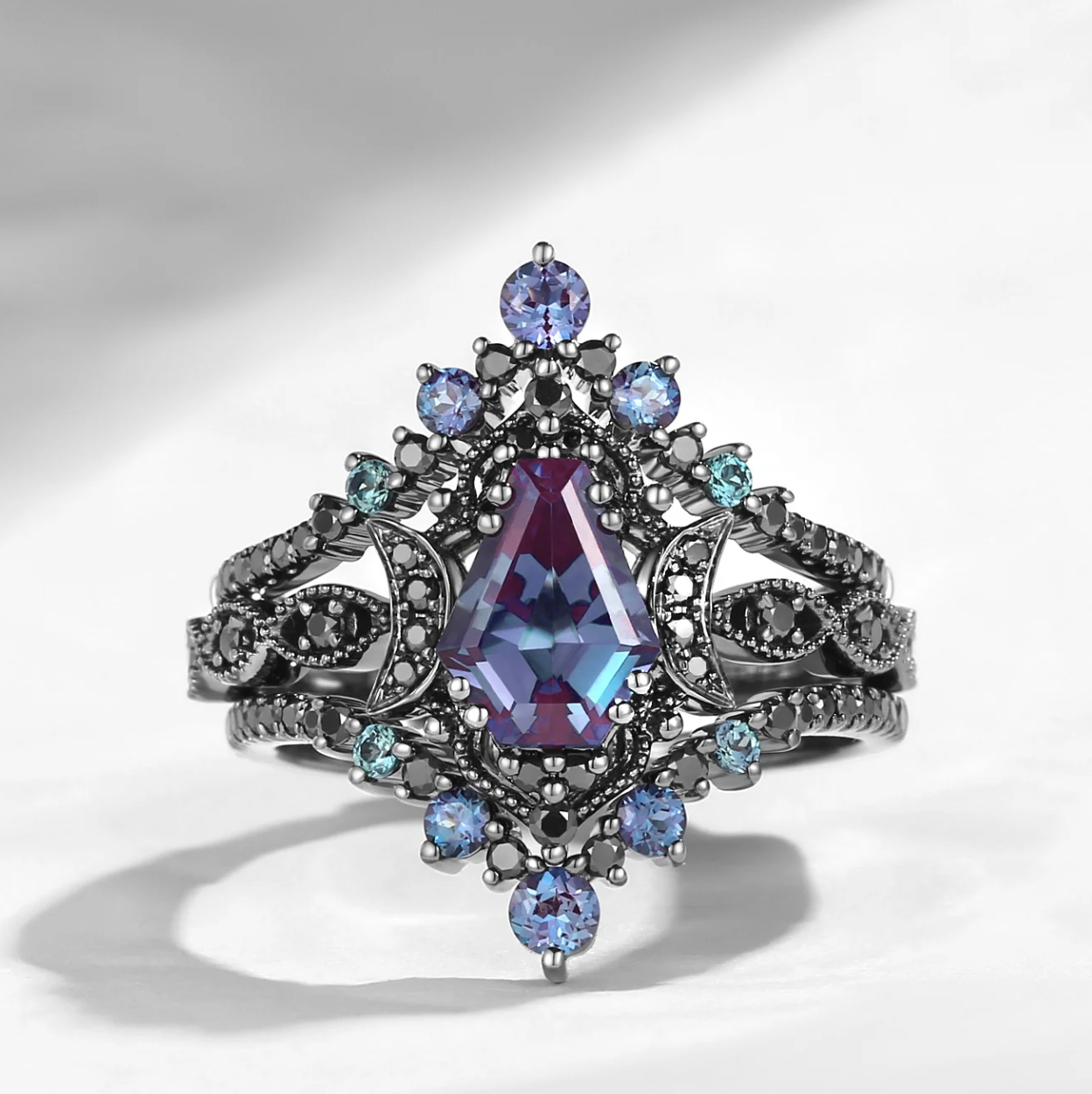 Rings for her: 18K Black Gold, 6*8mm Coffin Lab Alexandrite, Black Moissanite & Lab Alexandrite, 8US