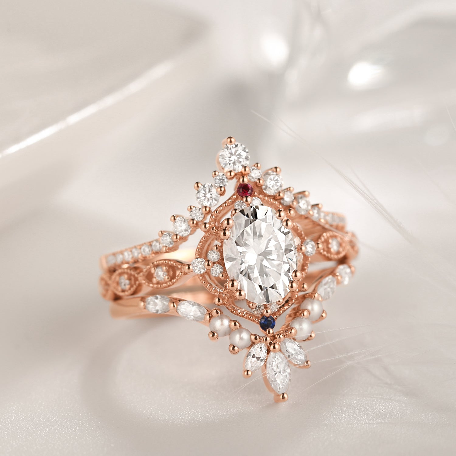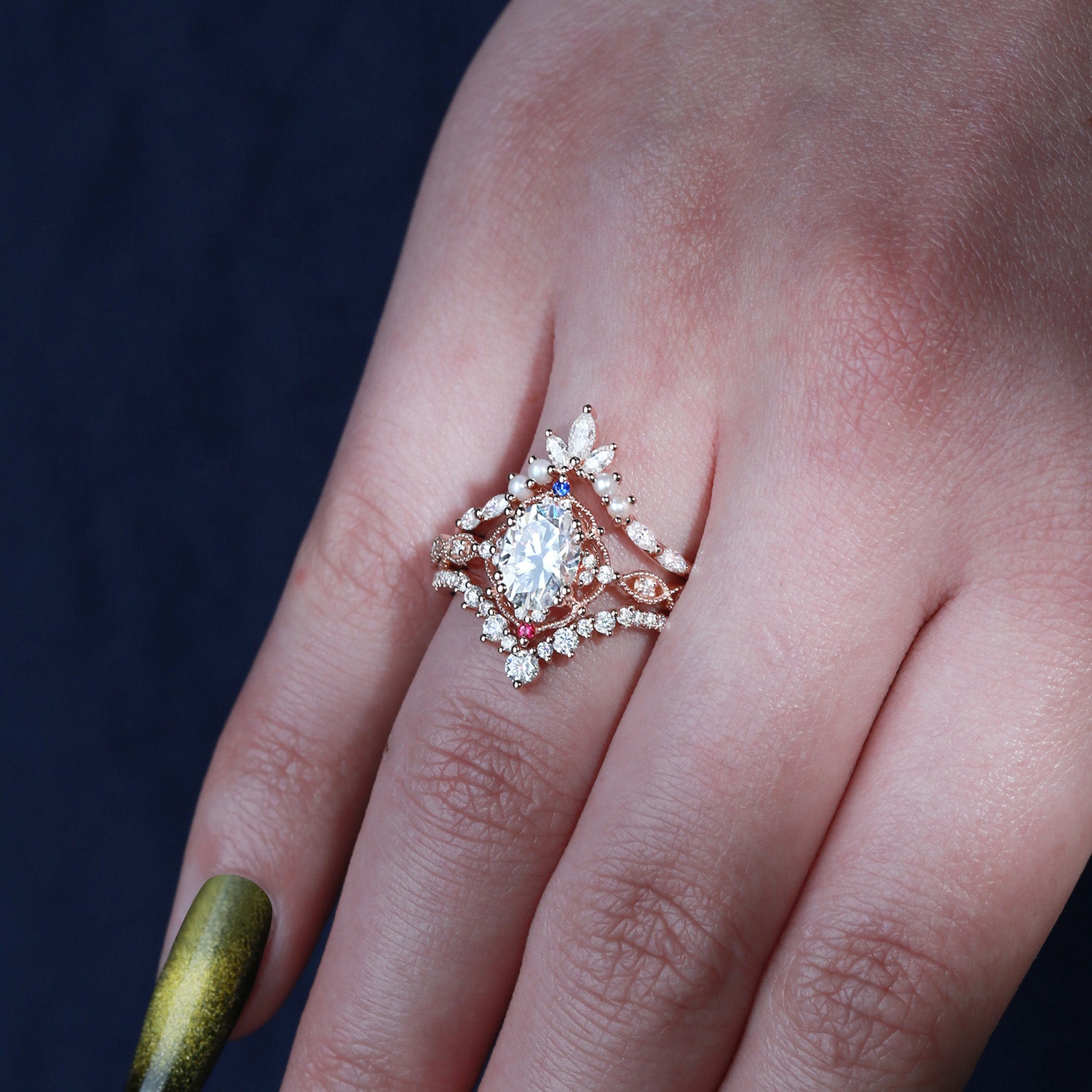 1.5ct Oval Cut Vintage Inspired Moissanite ‘Each Other' Set 3pcs