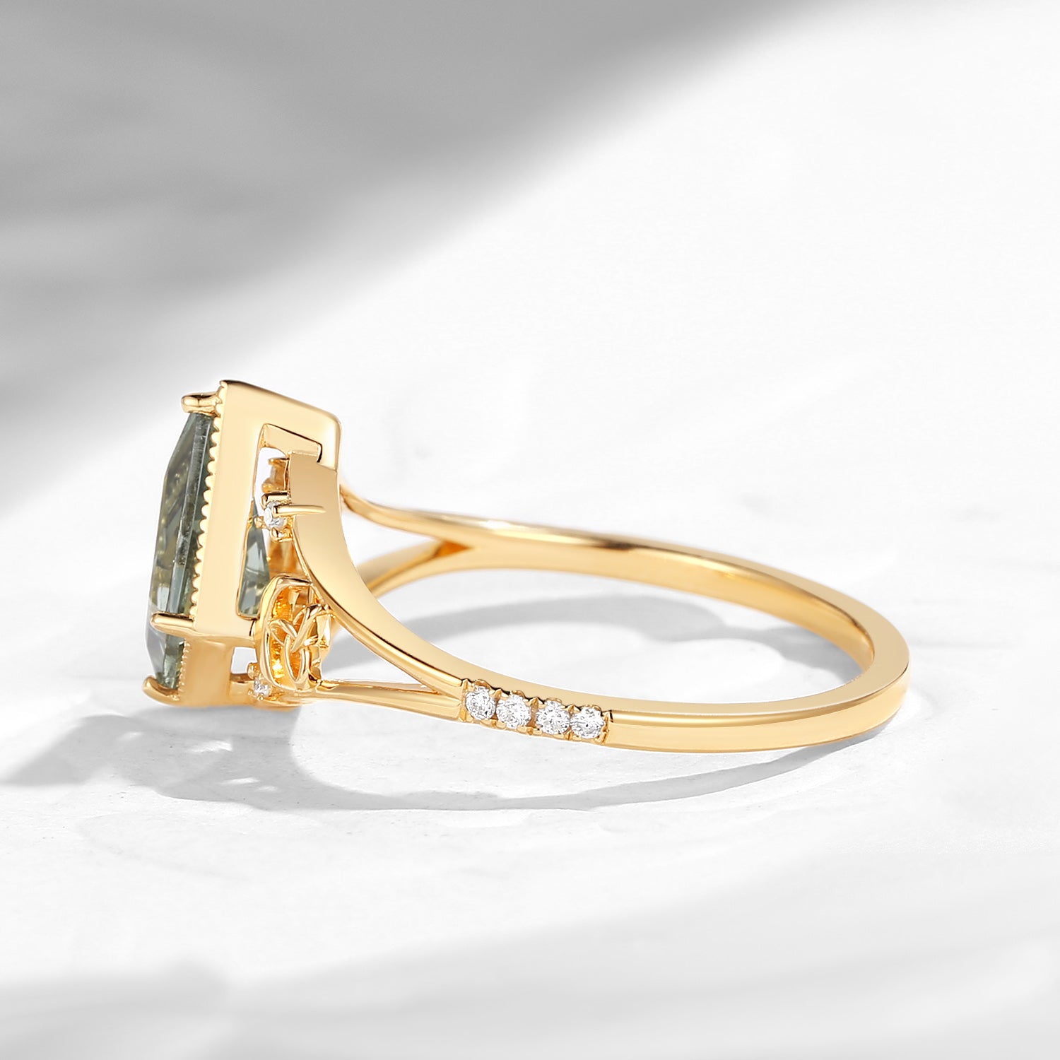 Celtic Moon | Kite Cut Lab Teal Sapphire 'Celestial Moon' Split Band Engagement Ring