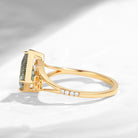 Select moreCeltic Moon | Kite Cut Lab Teal Sapphire 'Celestial Moon' Split Band Engagement Ring