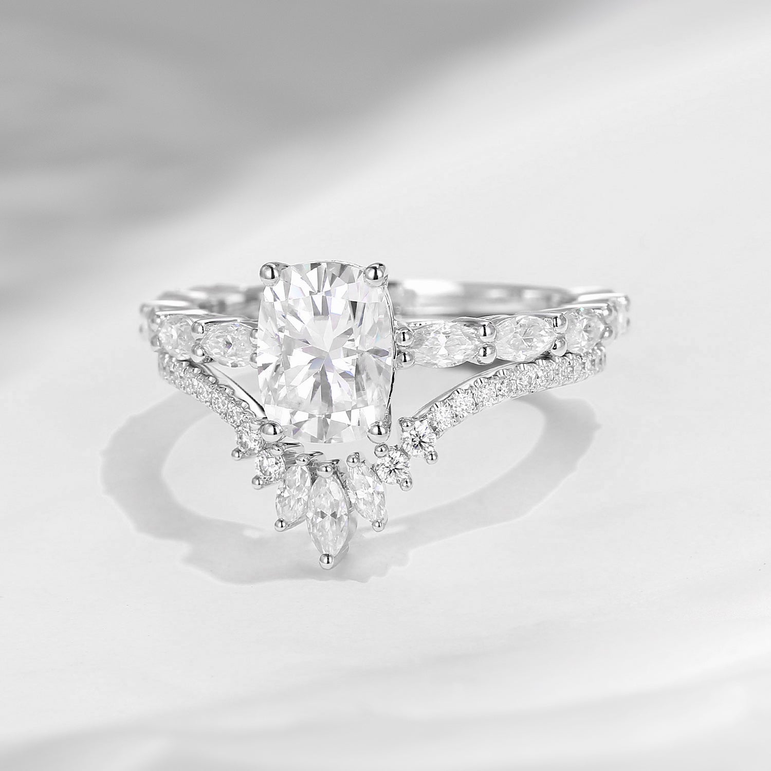 Cushion Cut Moissanite Classic Ring Set 2PCS