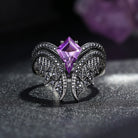 Kite Cut Natural Amethyst Vintage Black Gold Bridal Set 2pcs - Bat Ring