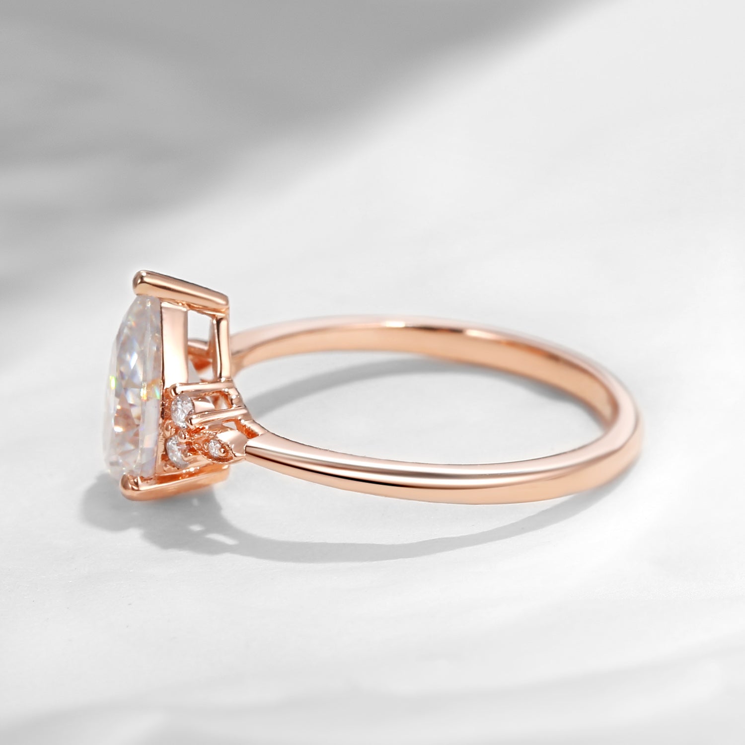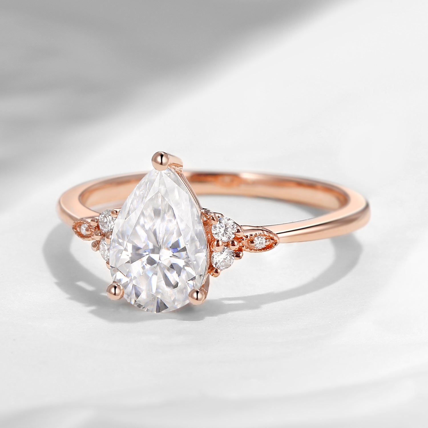 1.5ct Pear Cut Vintage Cluster Moissanite Engagement Ring