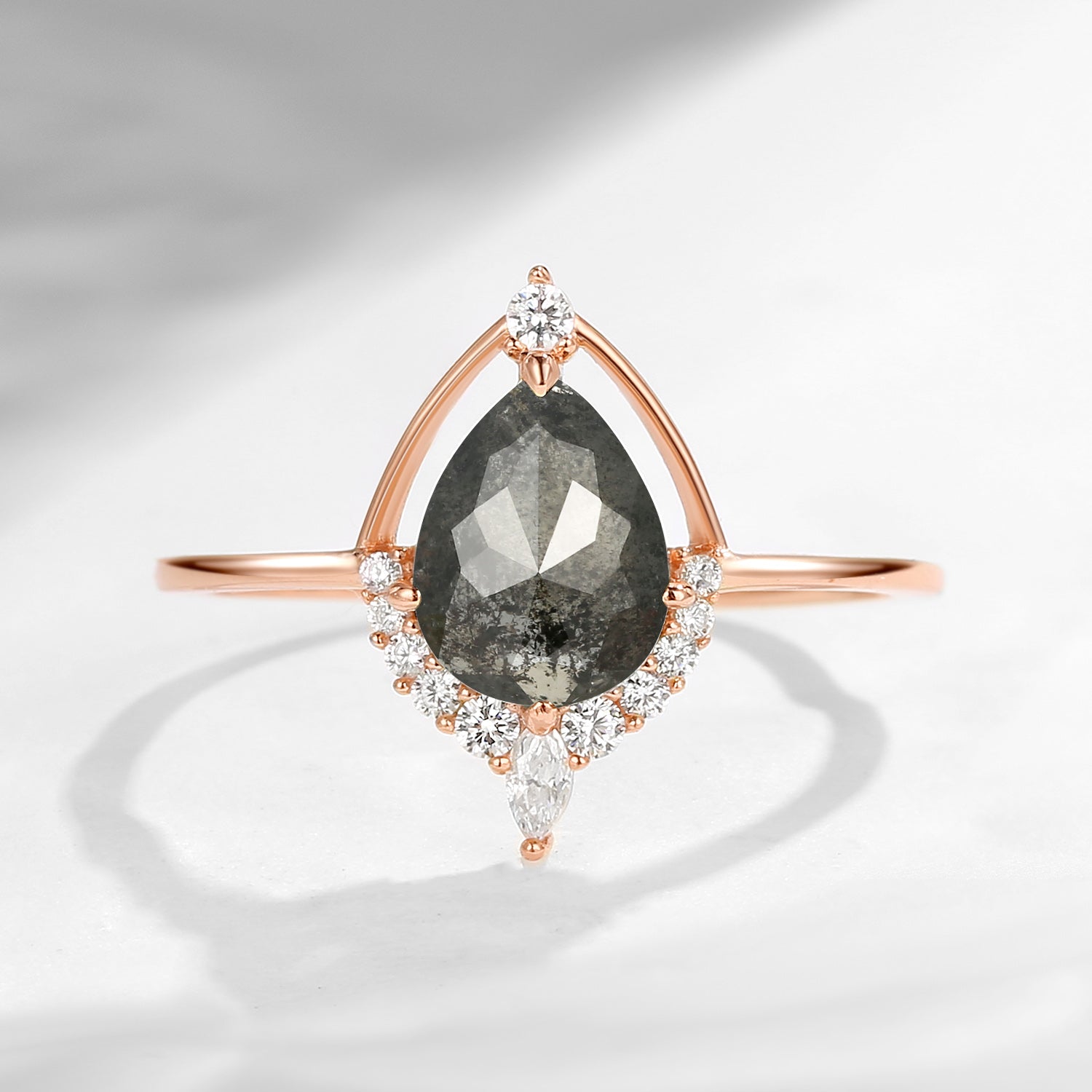 ⟢ Center Stone: Pear Cut Natural Salt And Pepper Diamond, 6*8mm