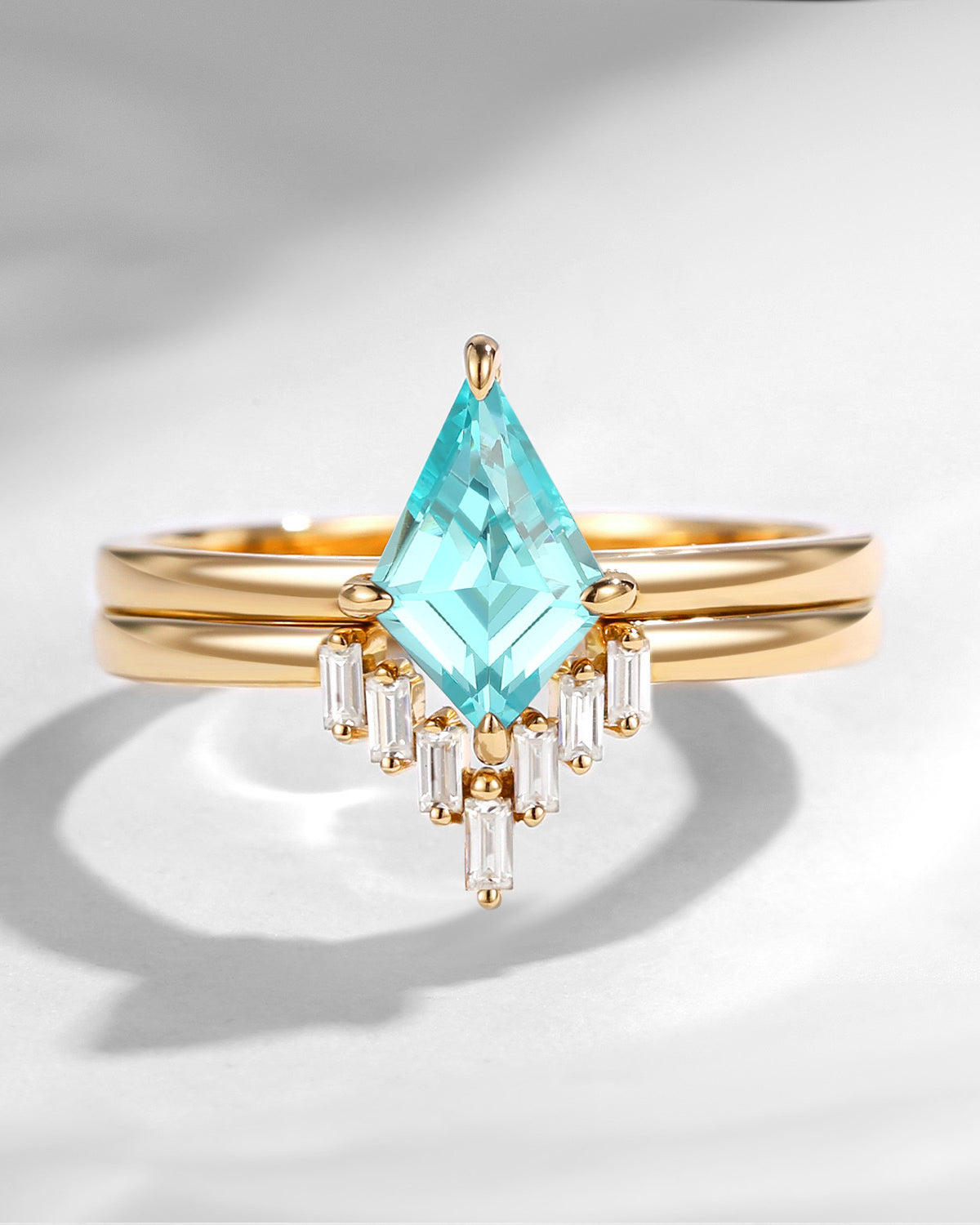 Classic Kite Cut Lab Paraiba Engagement Ring 2pcs