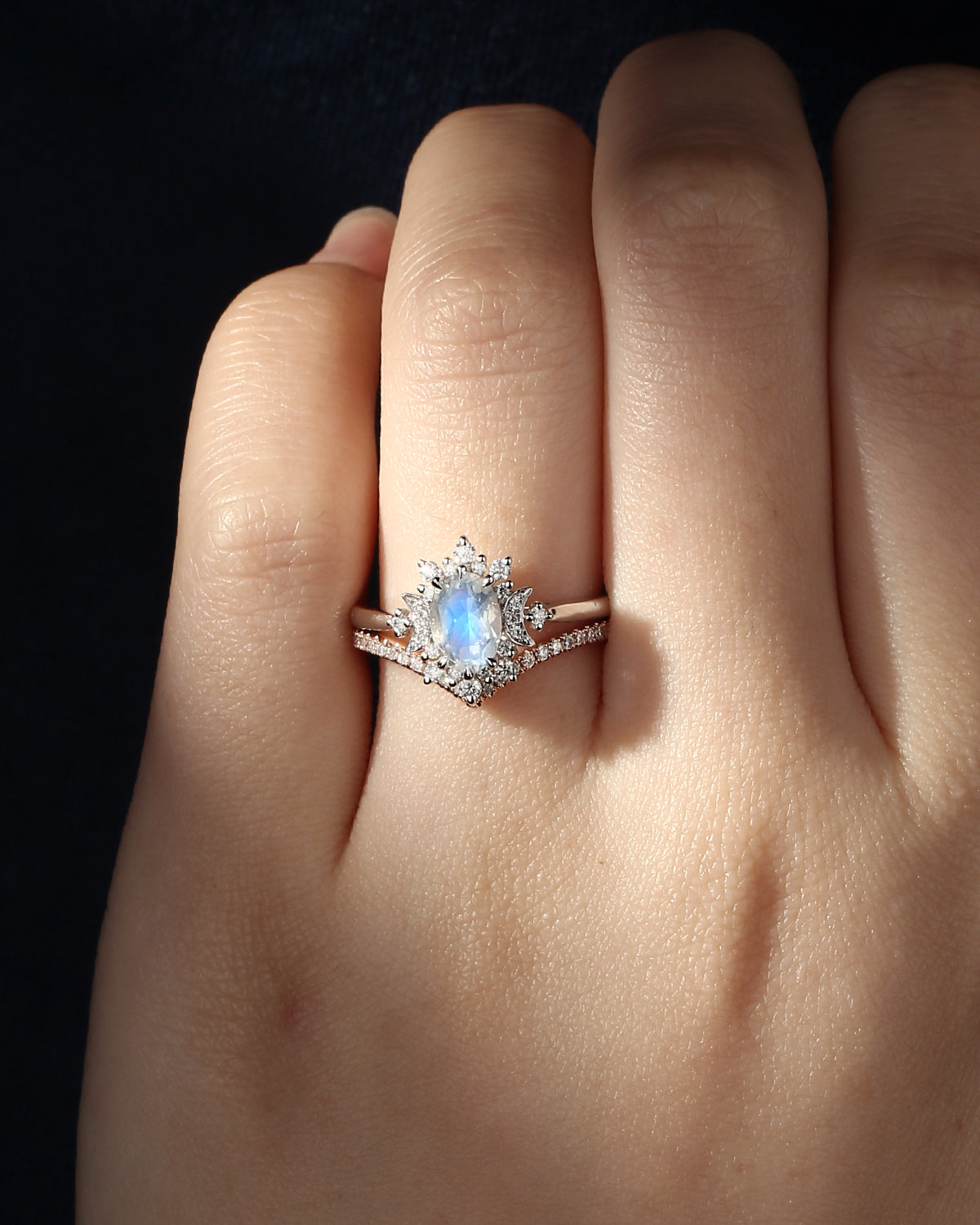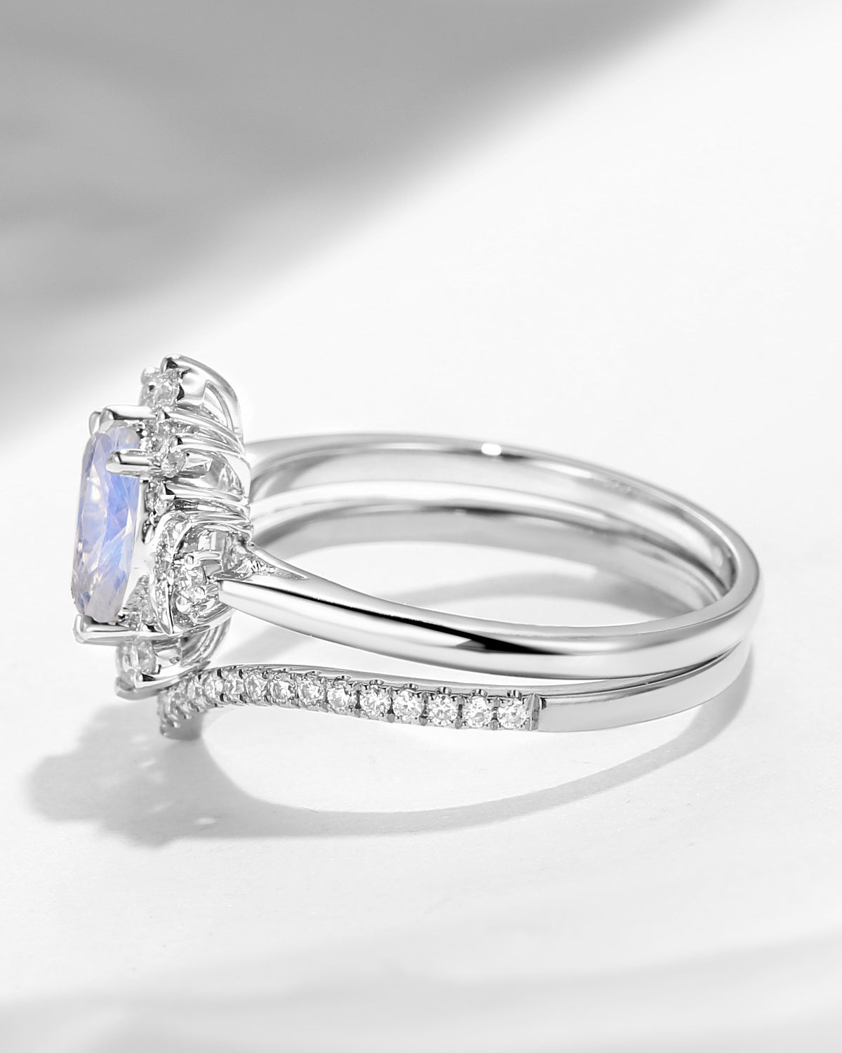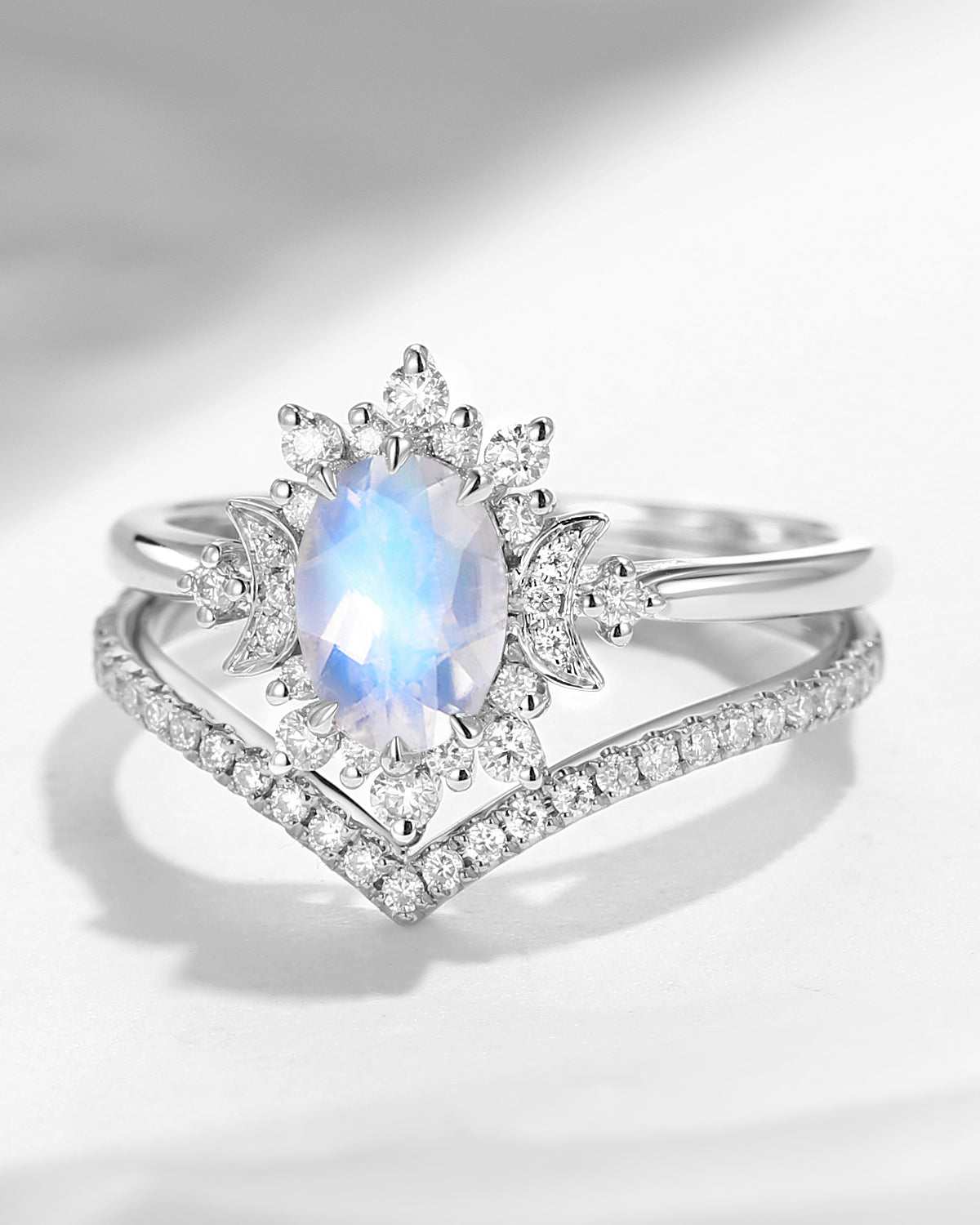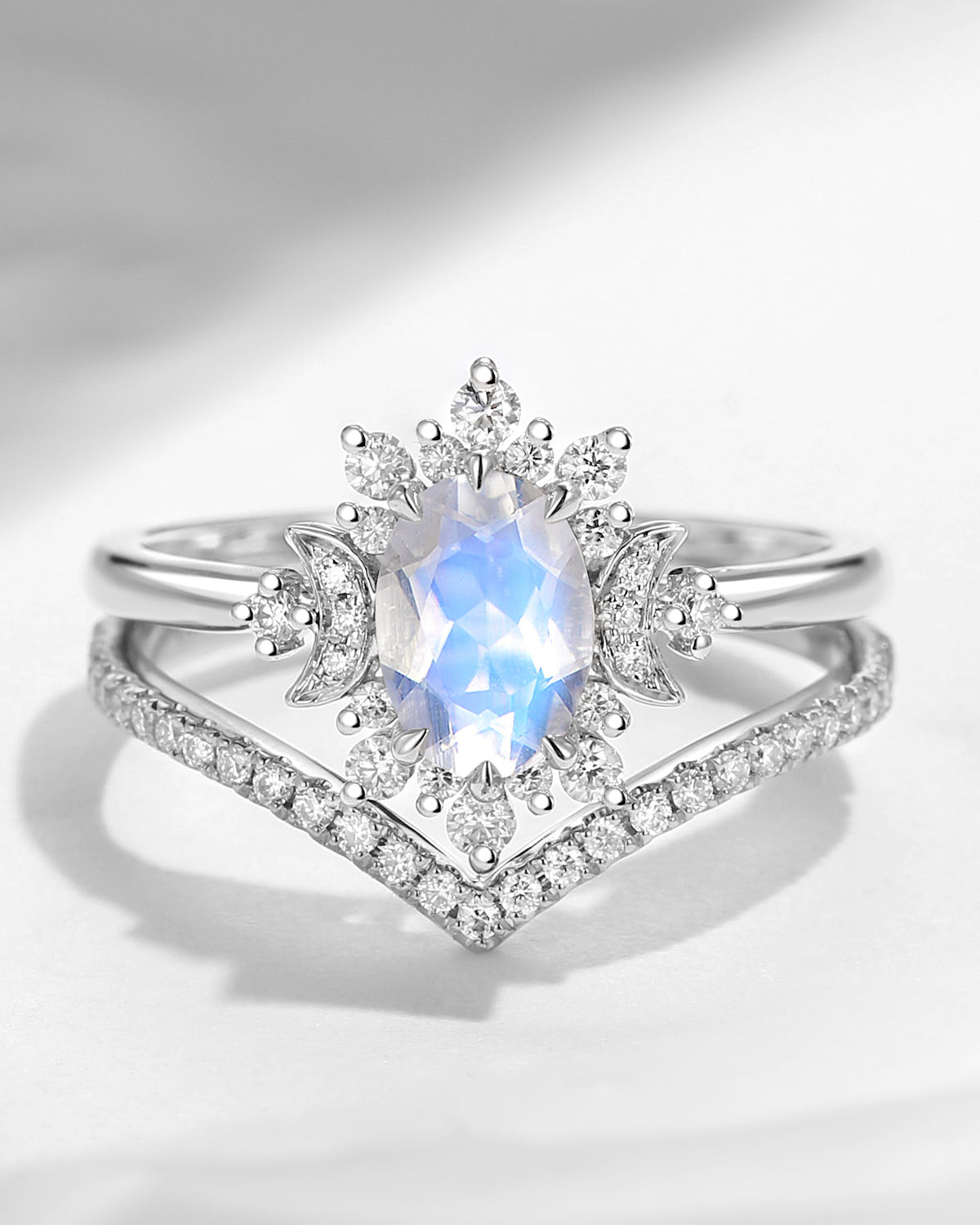 Crescent Moon | Vintage Pear Cut Moonstone Engagement Ring 2pcs - Luna