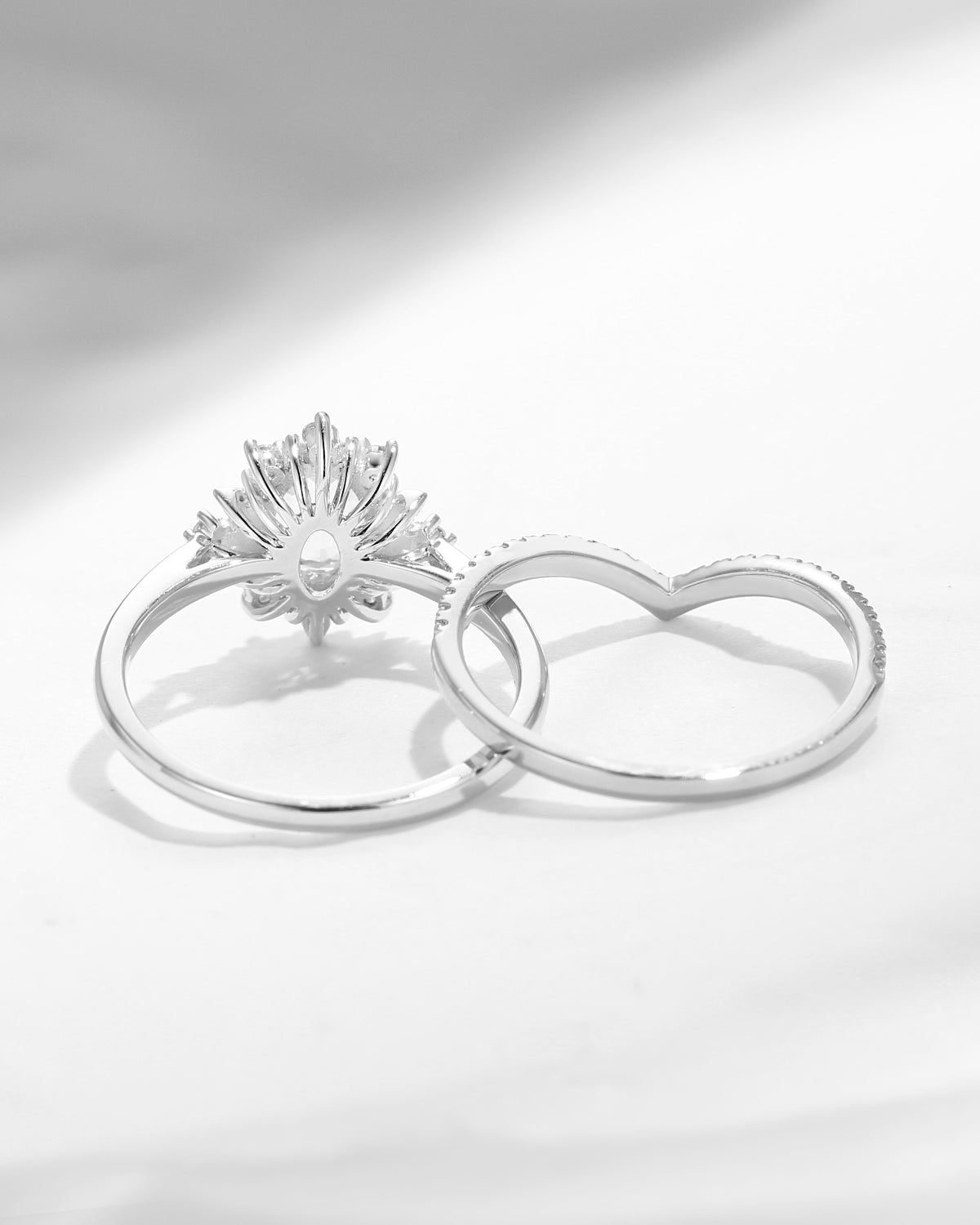 Crescent Moon | Pear Shaped Infinity Halo Ring Set 2PCS