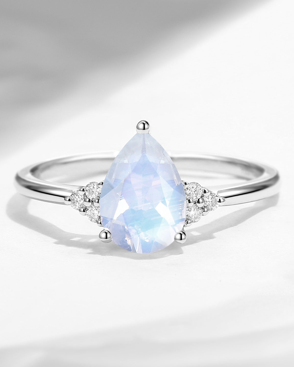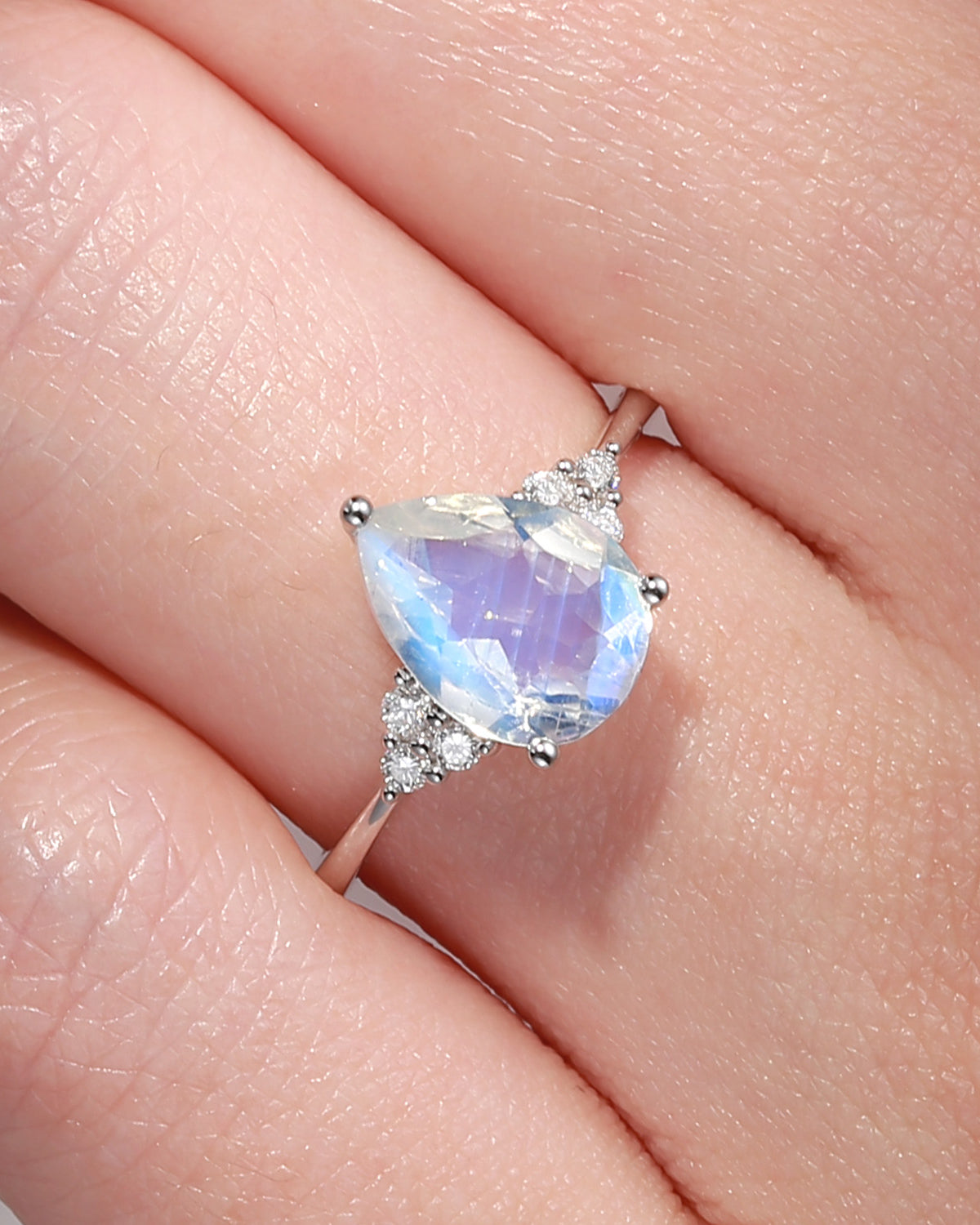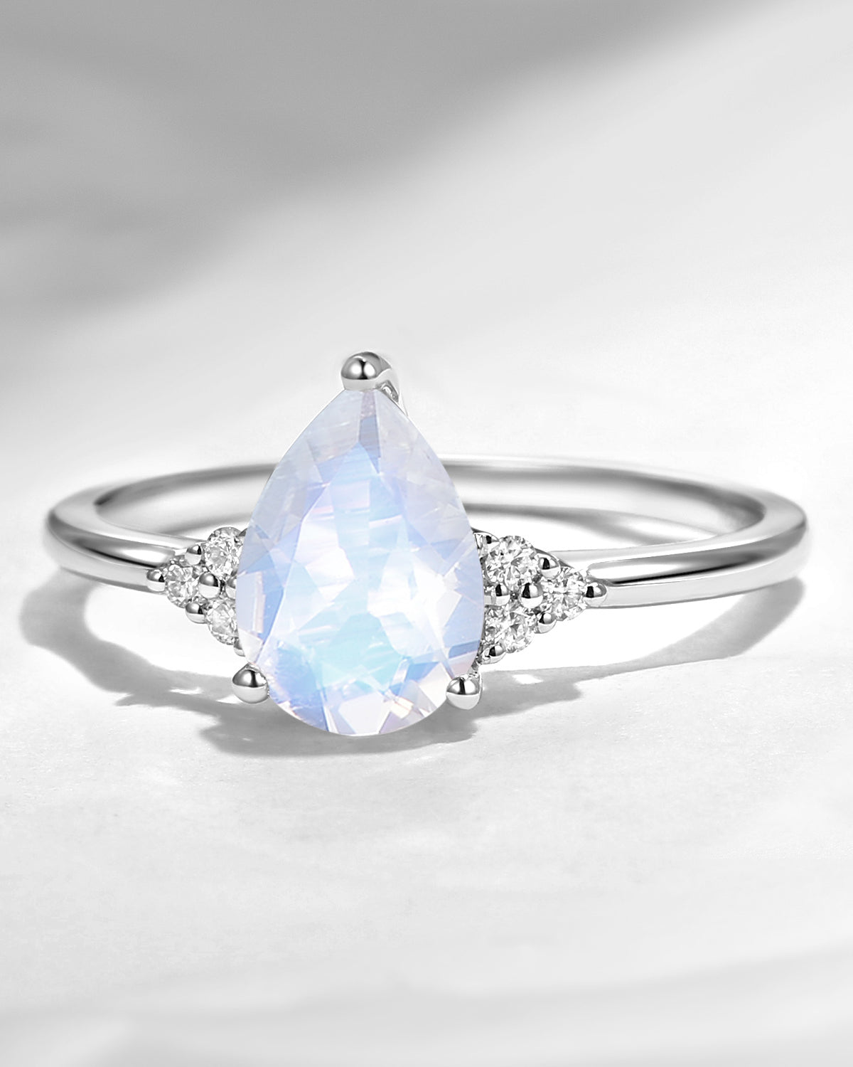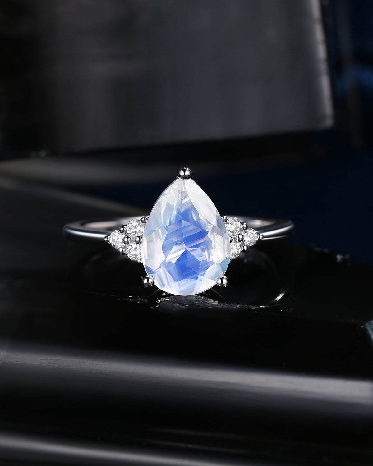 Pear Shaped Moonstone Engagement Ring Cluster Ring