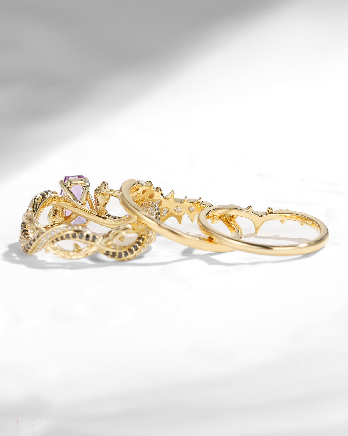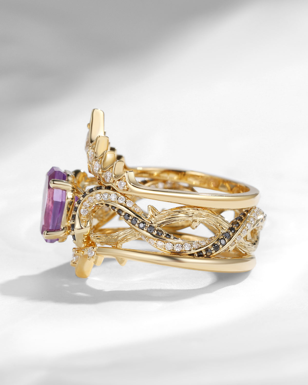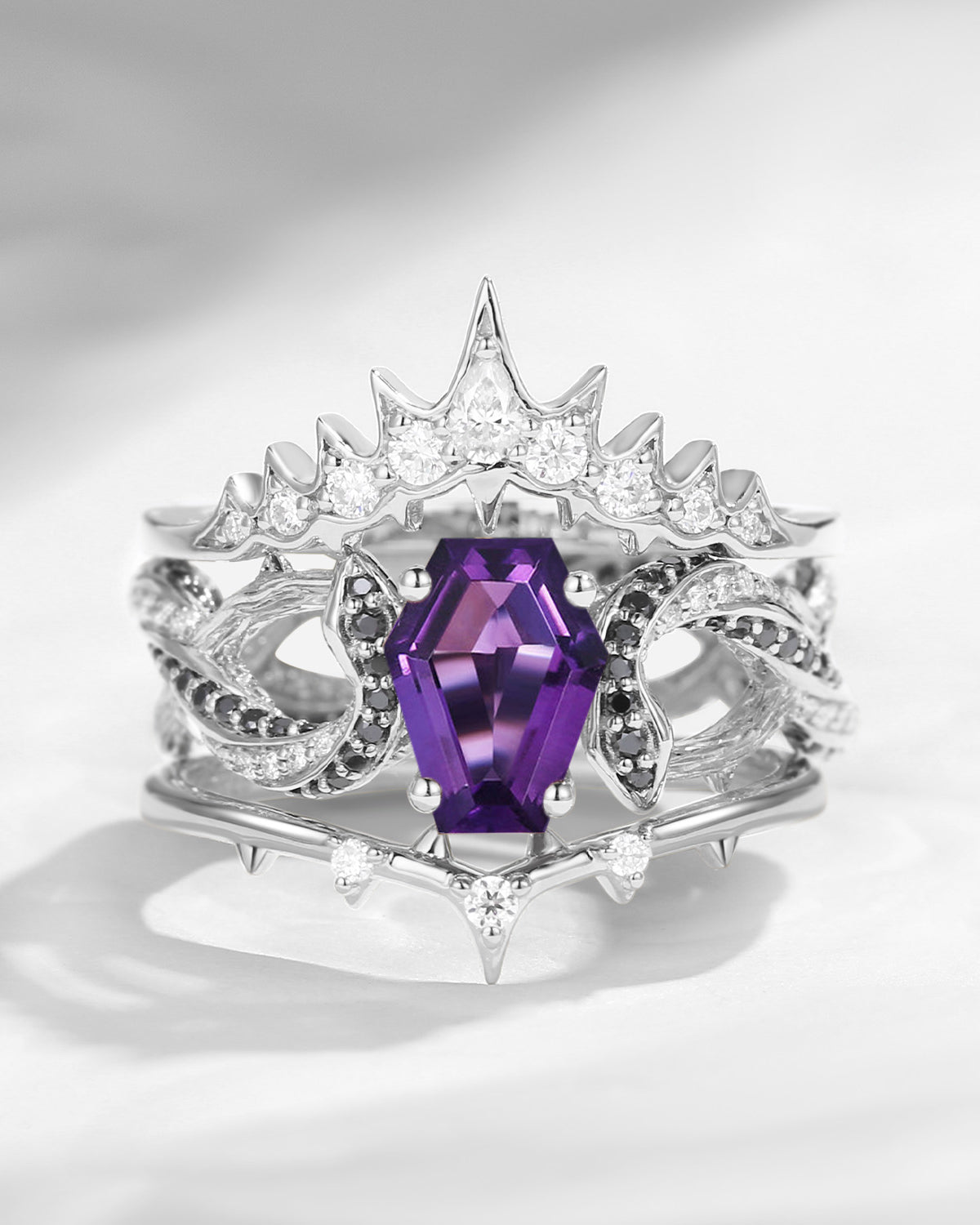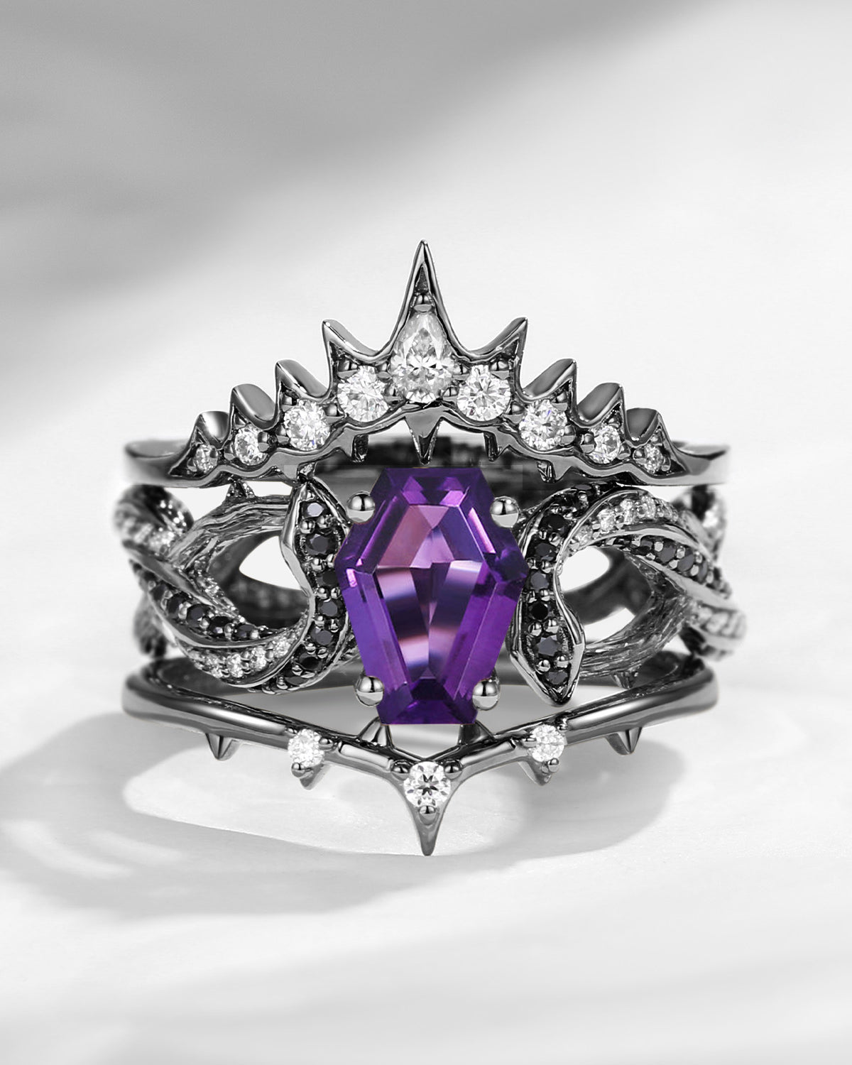 Crescent Moon | Heart Cut Lab Alexandrite 'Black Statement' Ring Set 2pcs