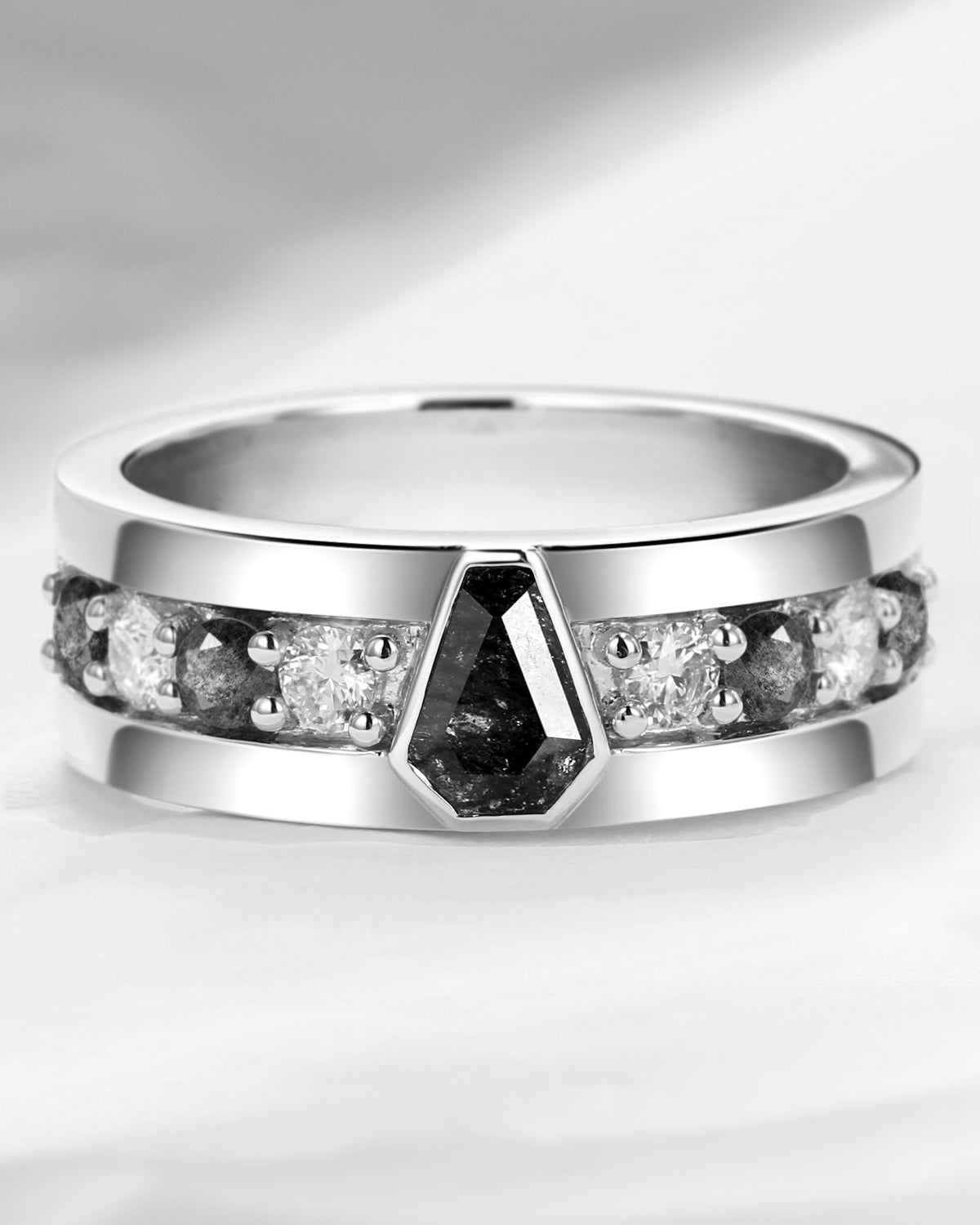 Unique Coffin Cut Herkimer Diamond Wedding Band - King's Scepter