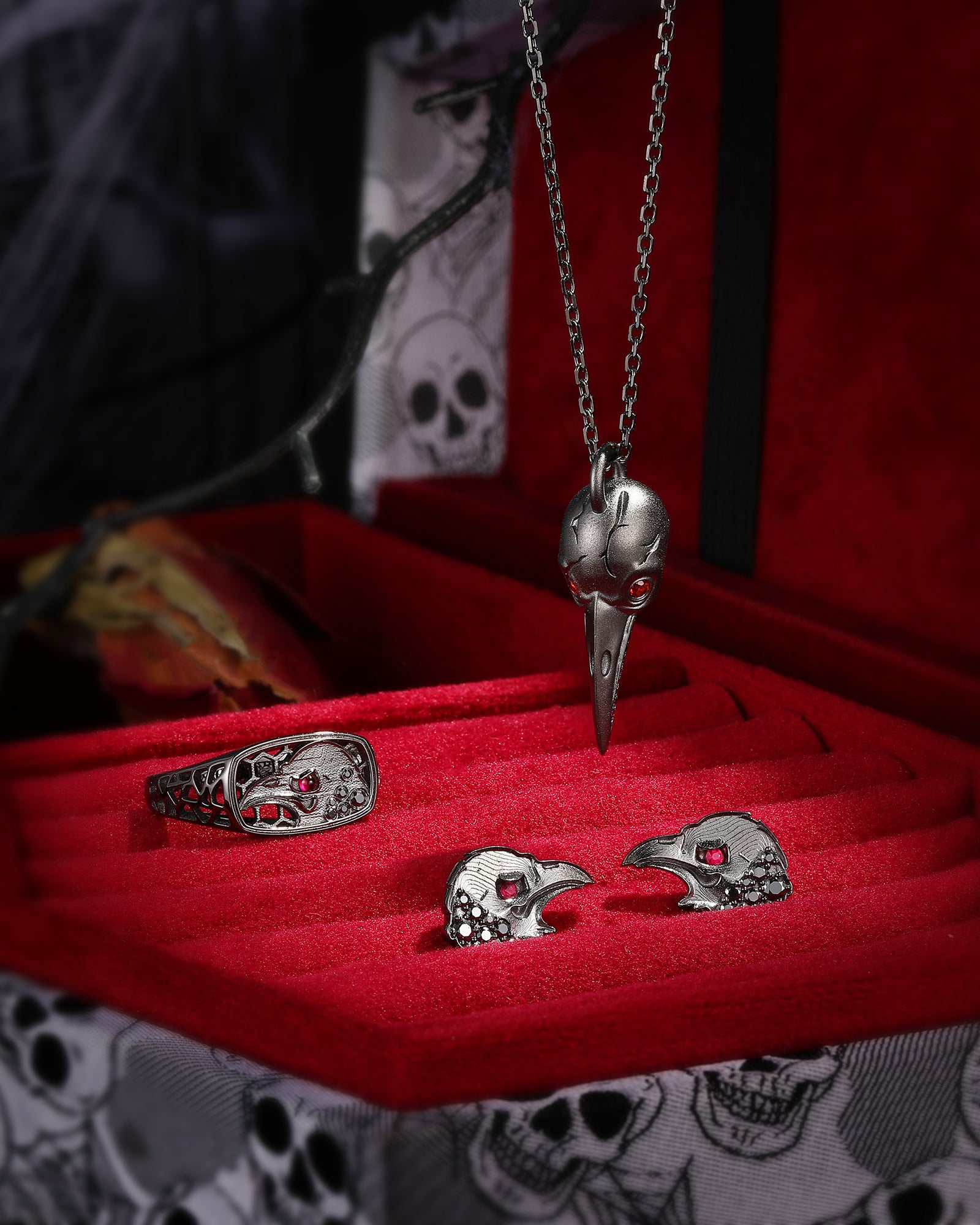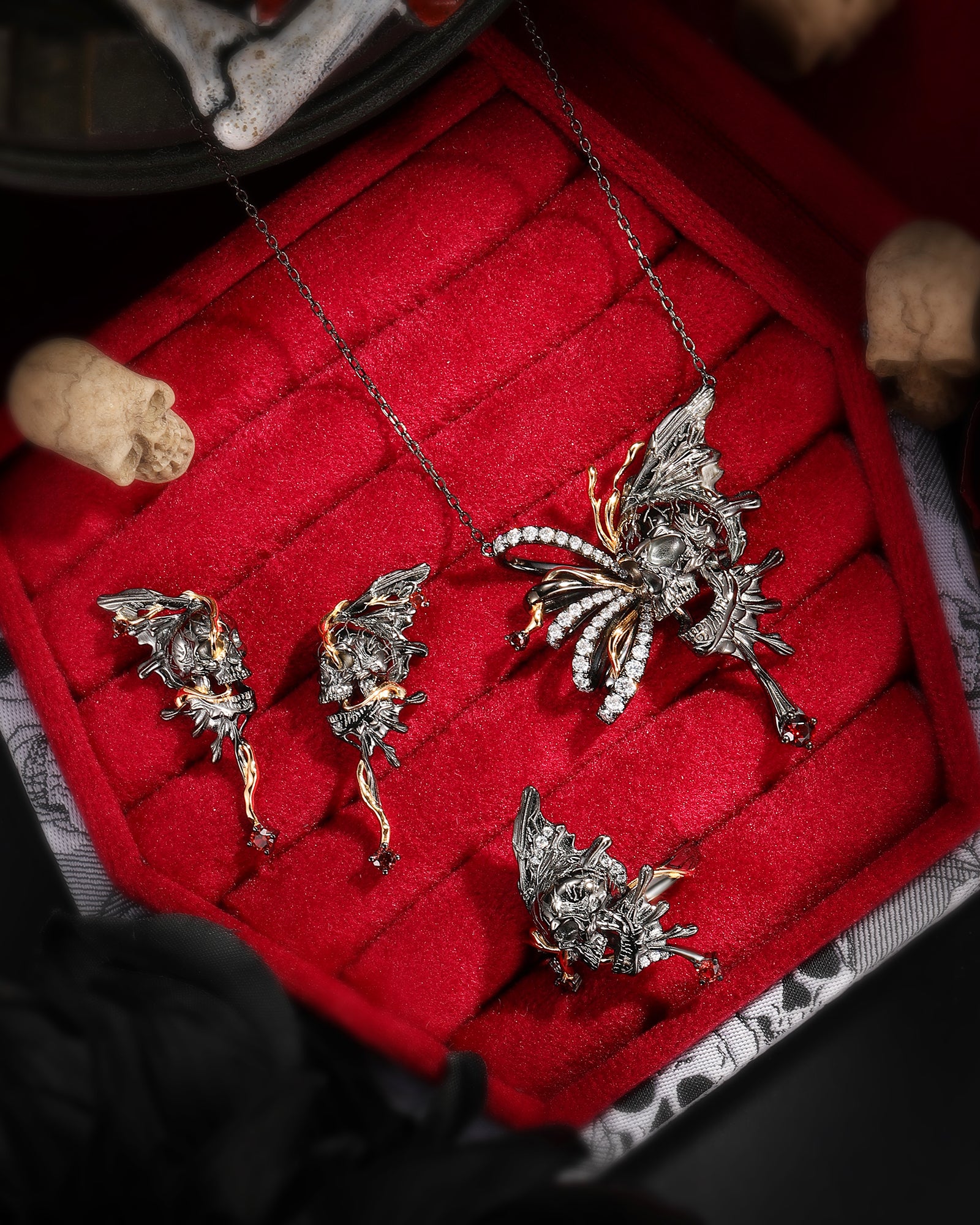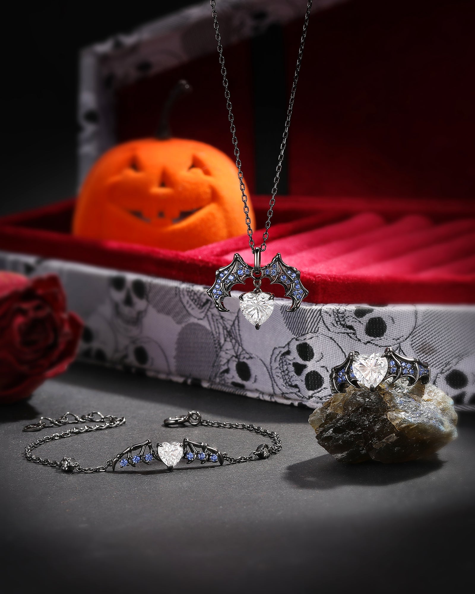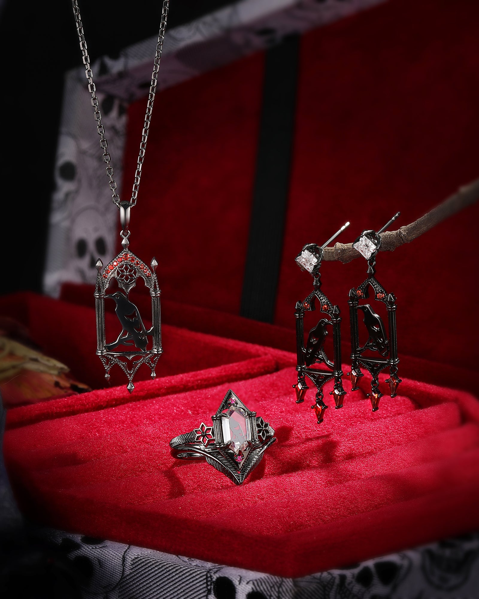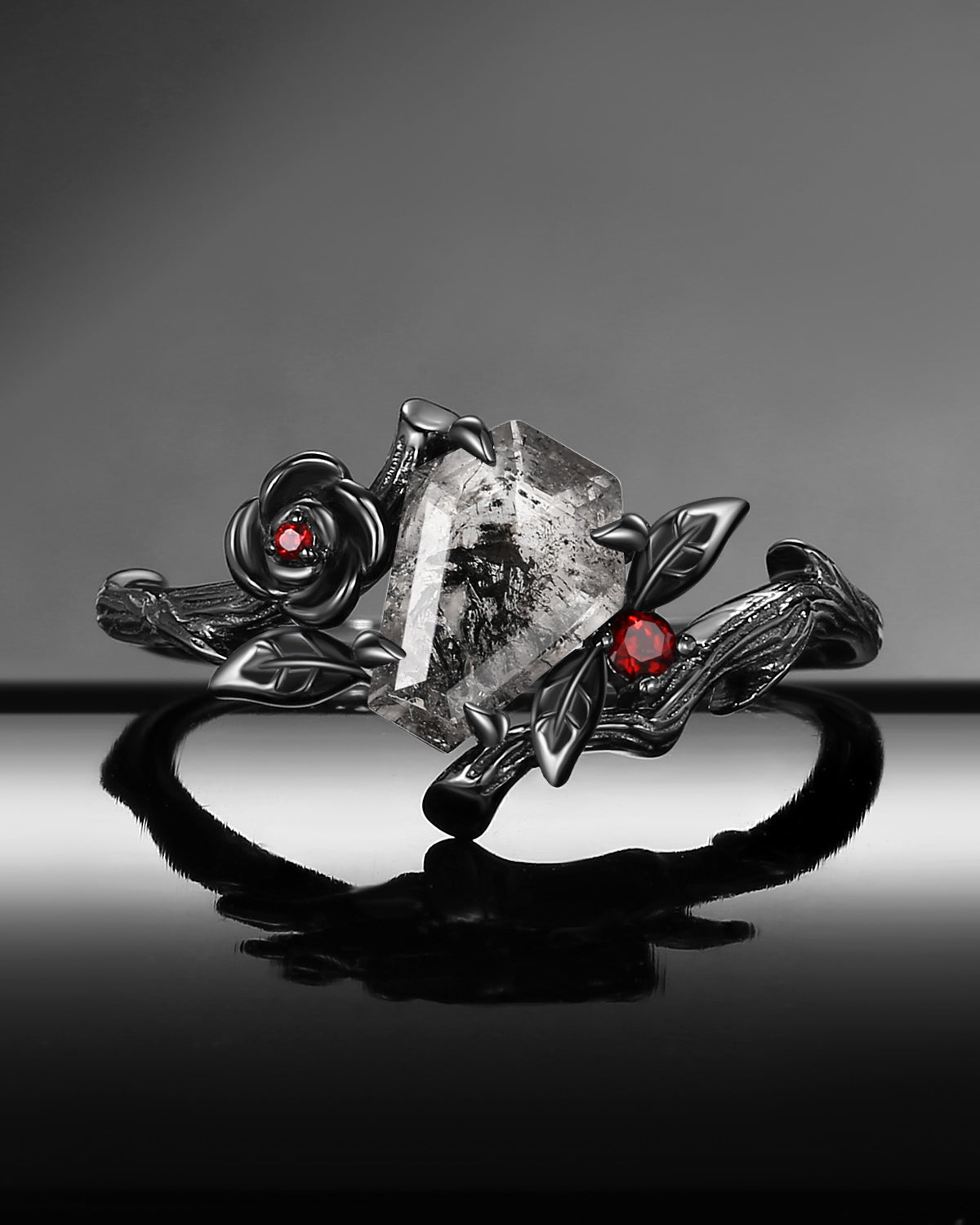 Unique Coffin Cut Herkimer Diamond Bat Wing Inspired Engagement Ring Set 2pcs