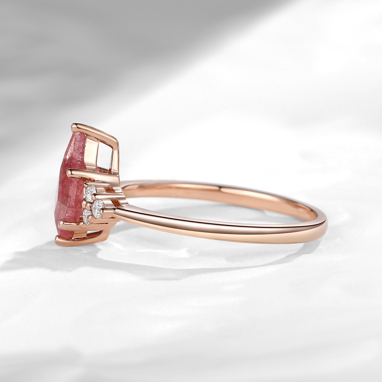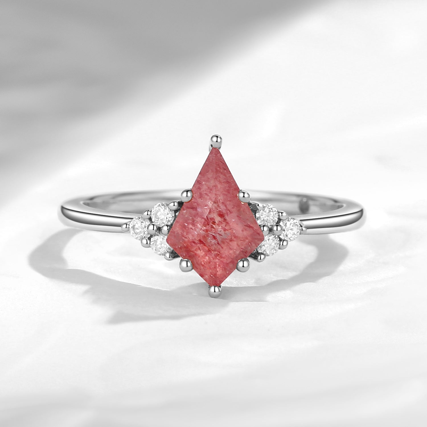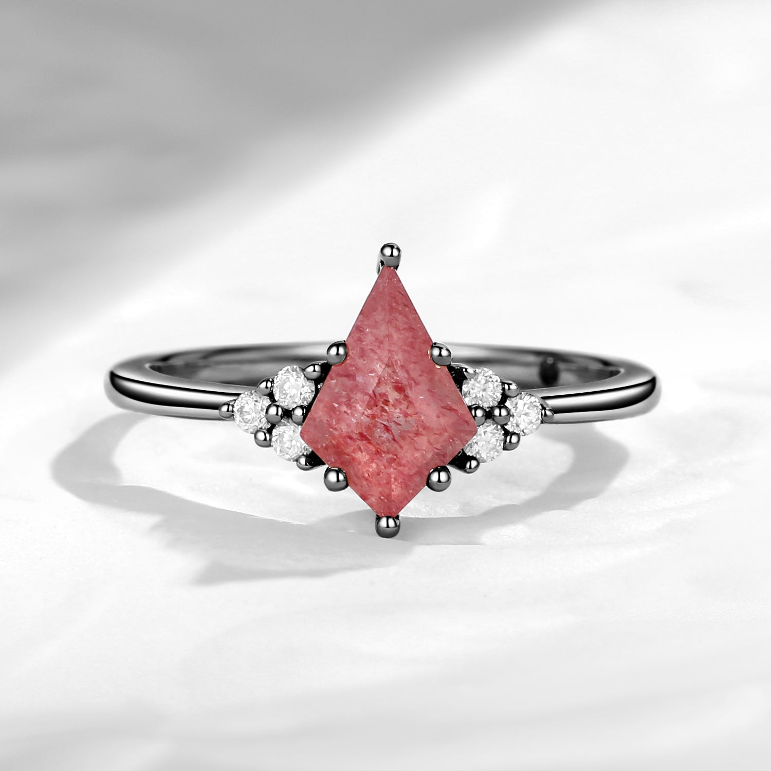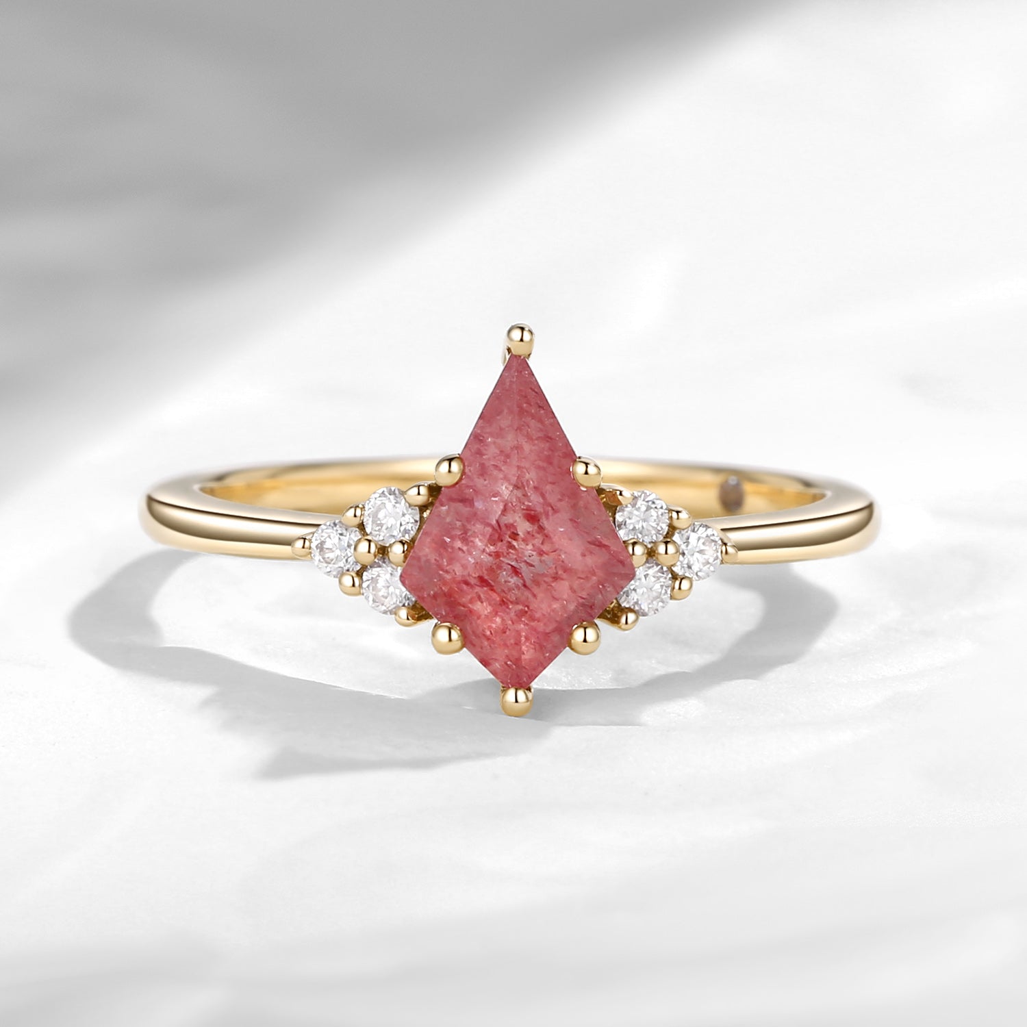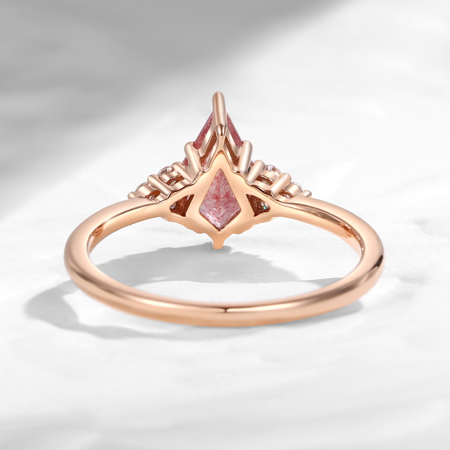 Art Deco Kite Cut Strawberry Rose Quartz Engagement Ring