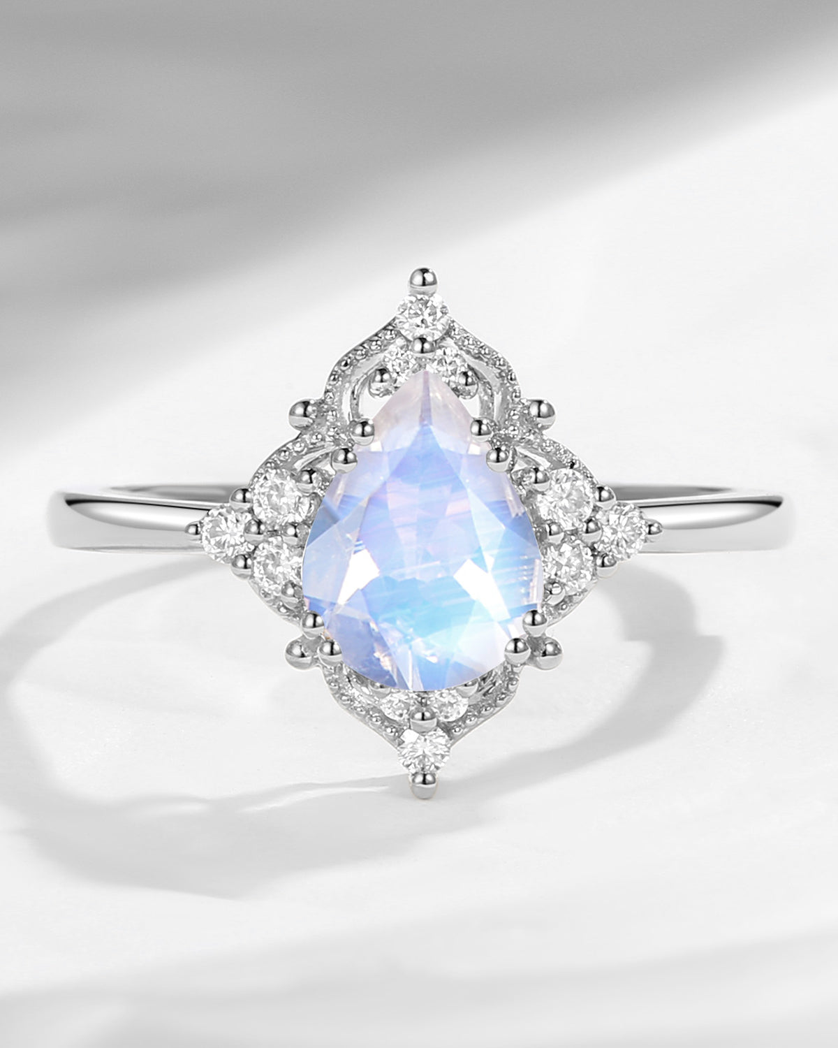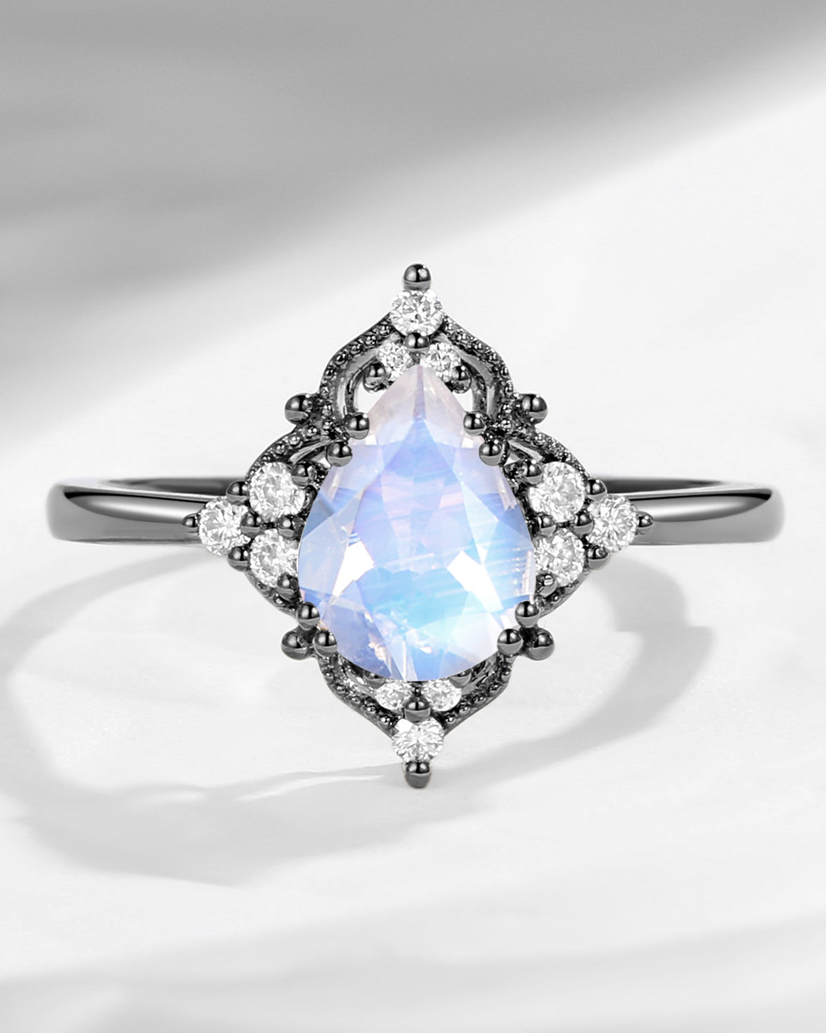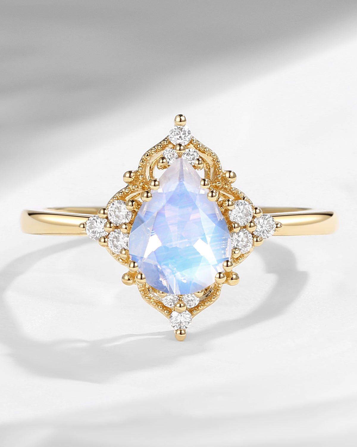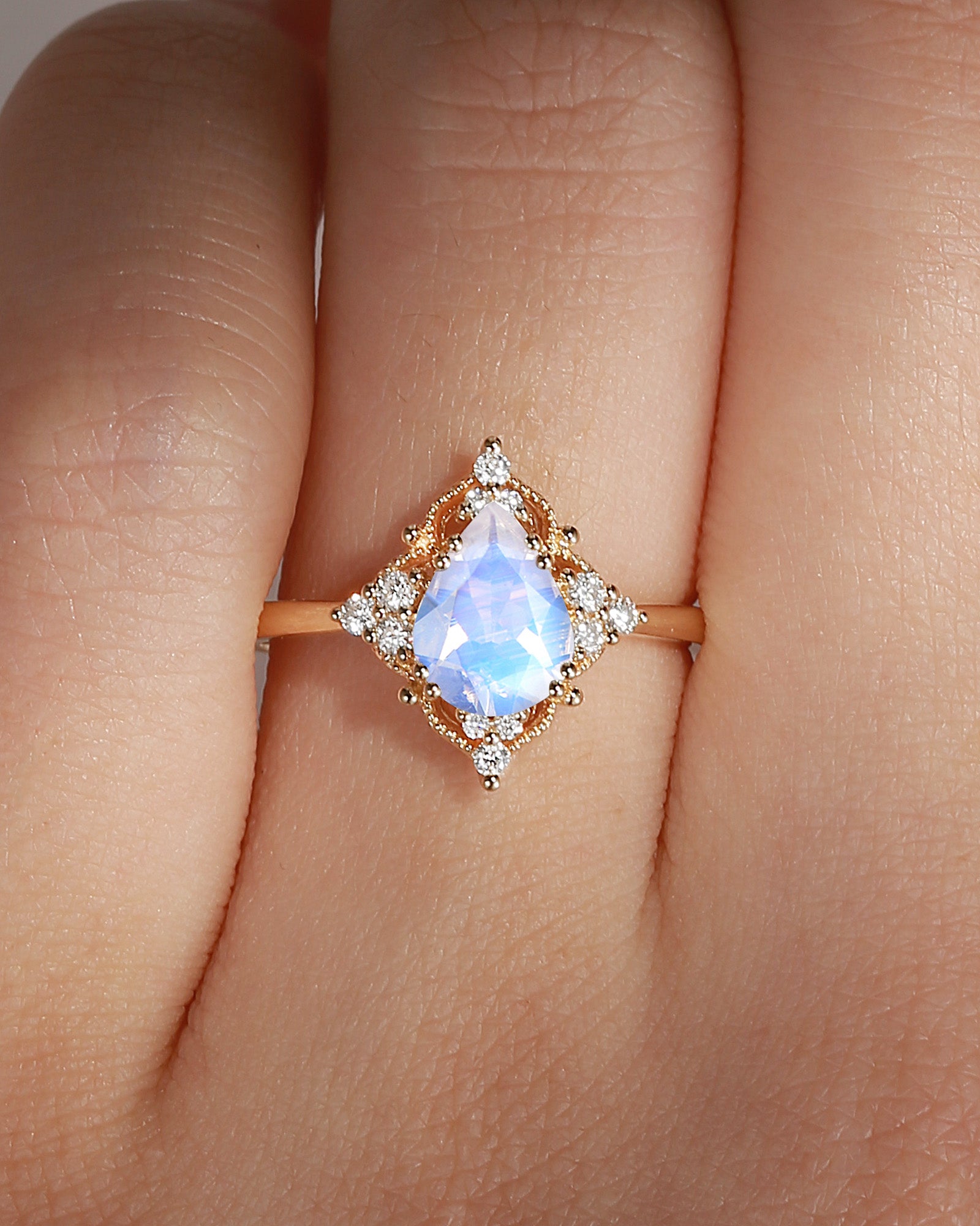 Vintage Inspired Pear Shaped Moonstone Engagement Ring