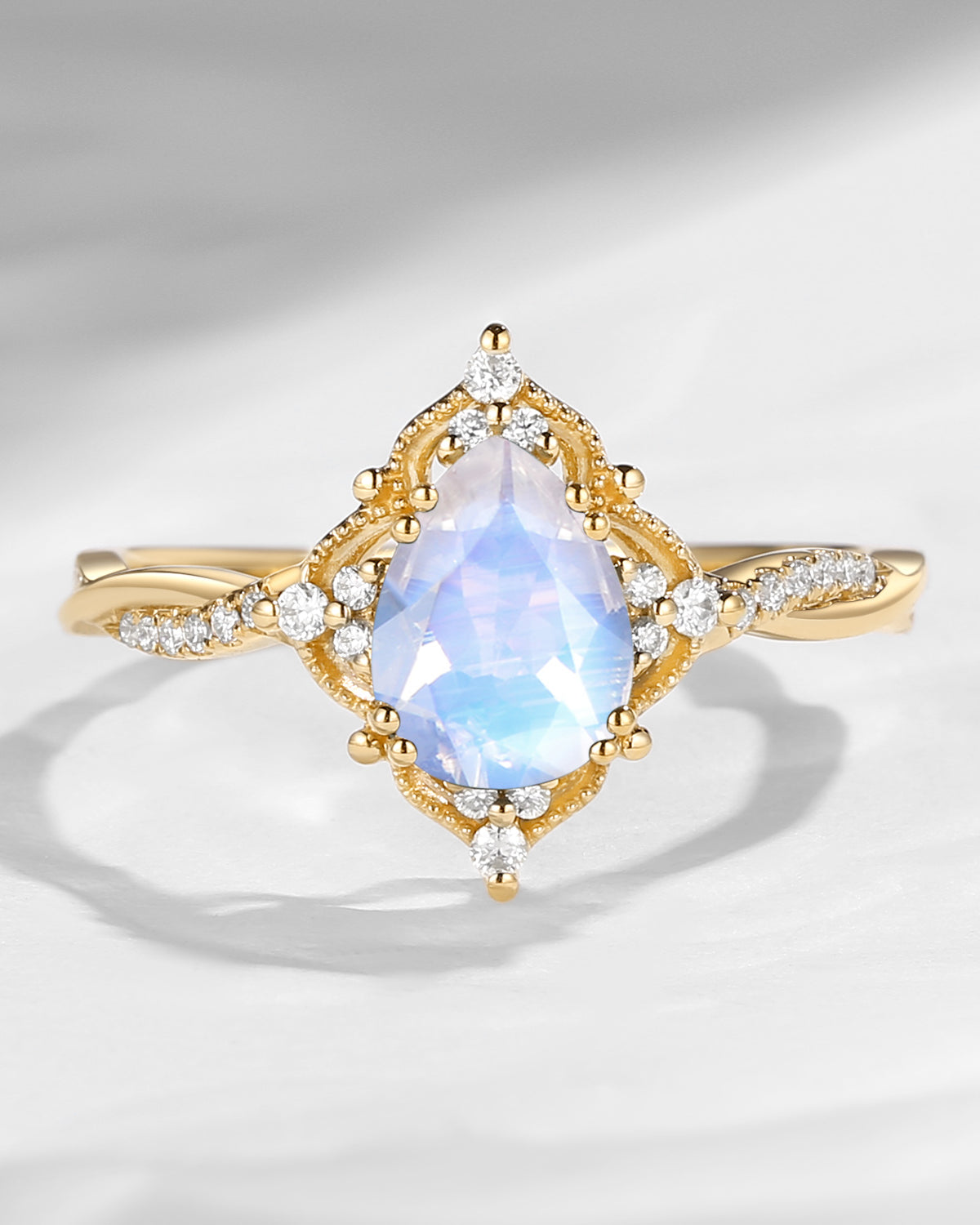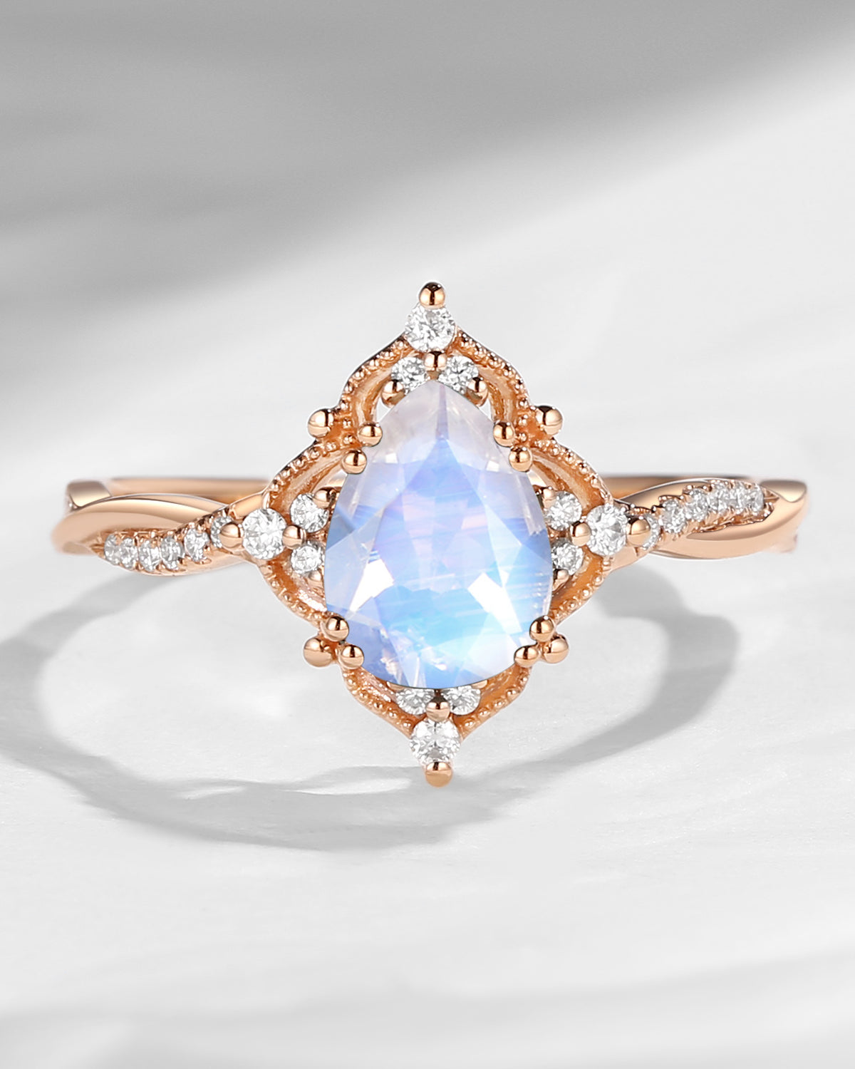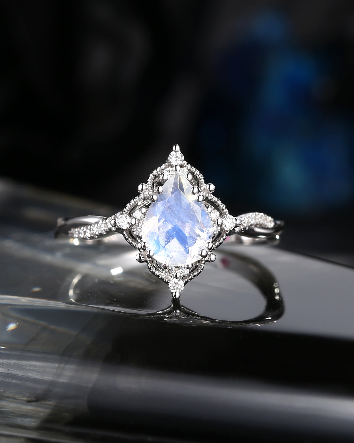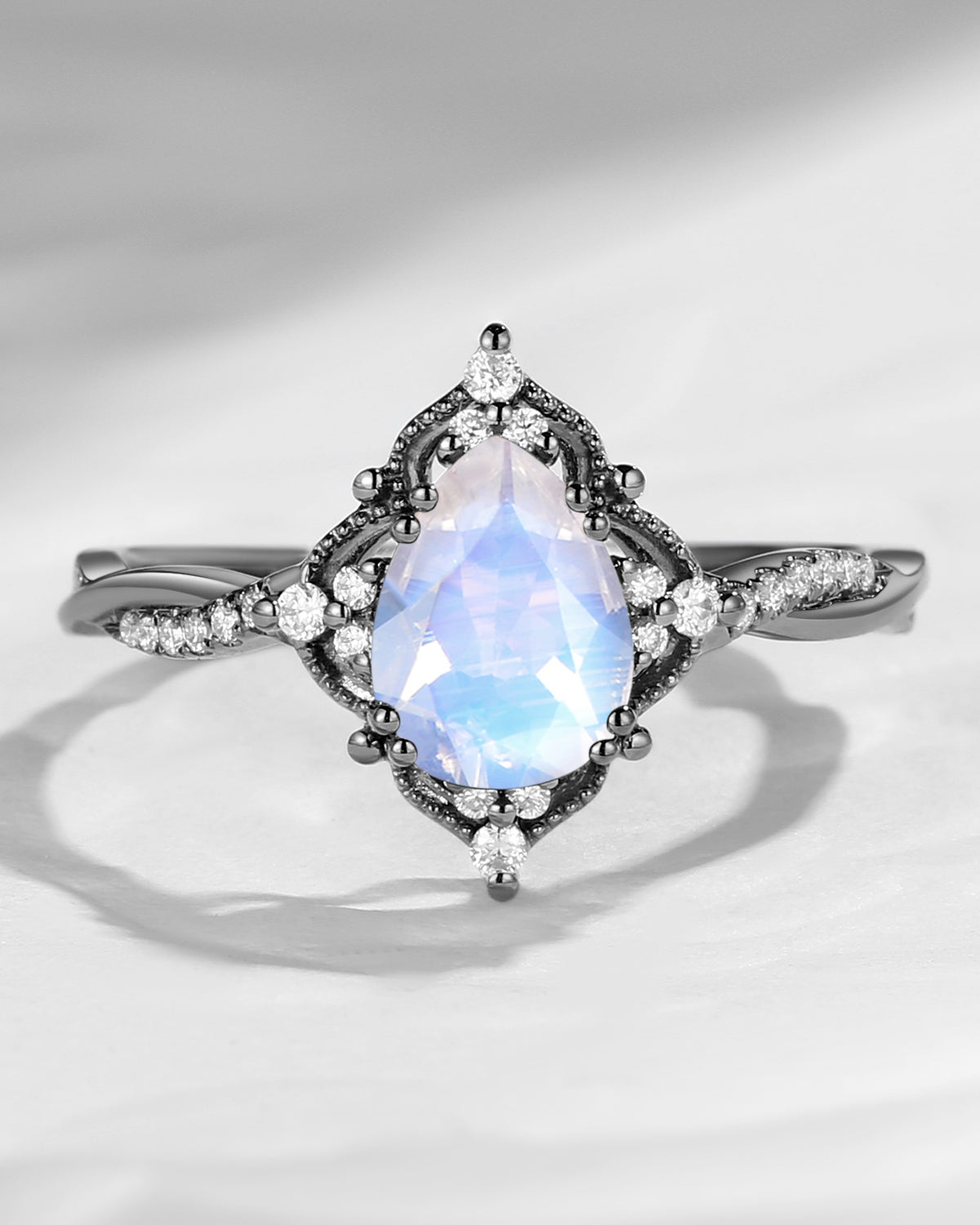 Vintage Style Marquise Moonstone Cage Ring Bridal Set 2pcs