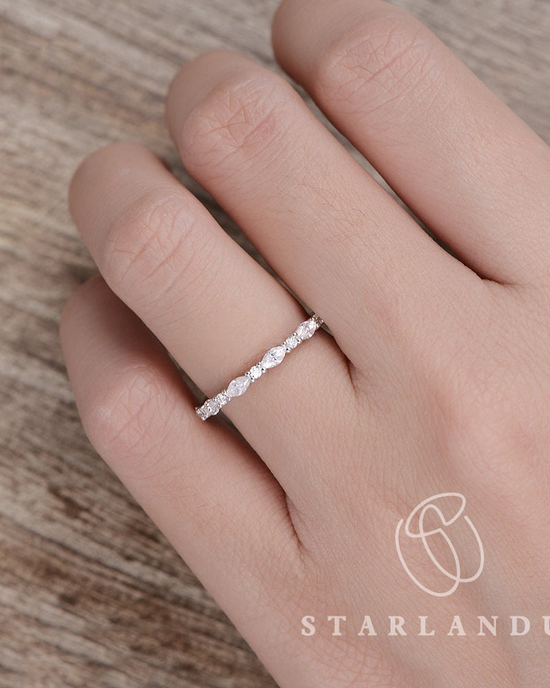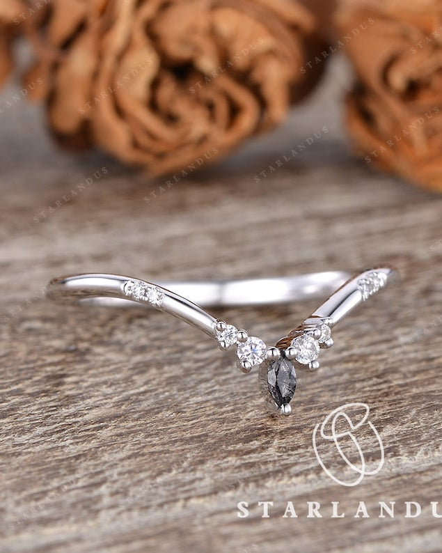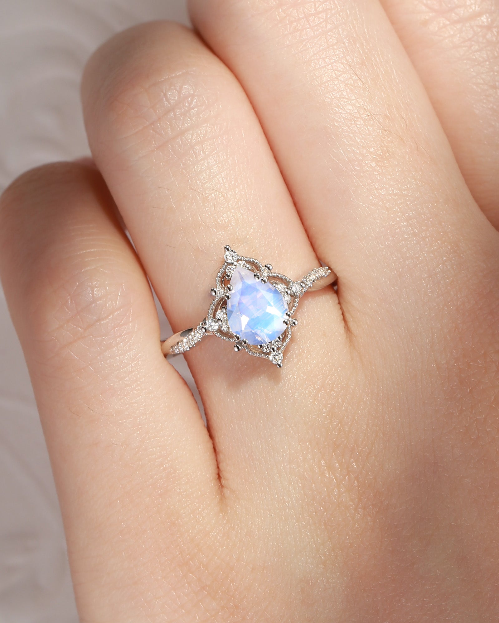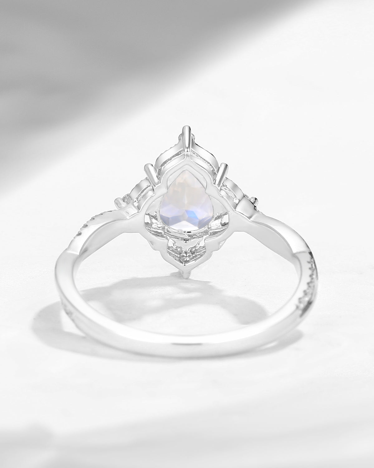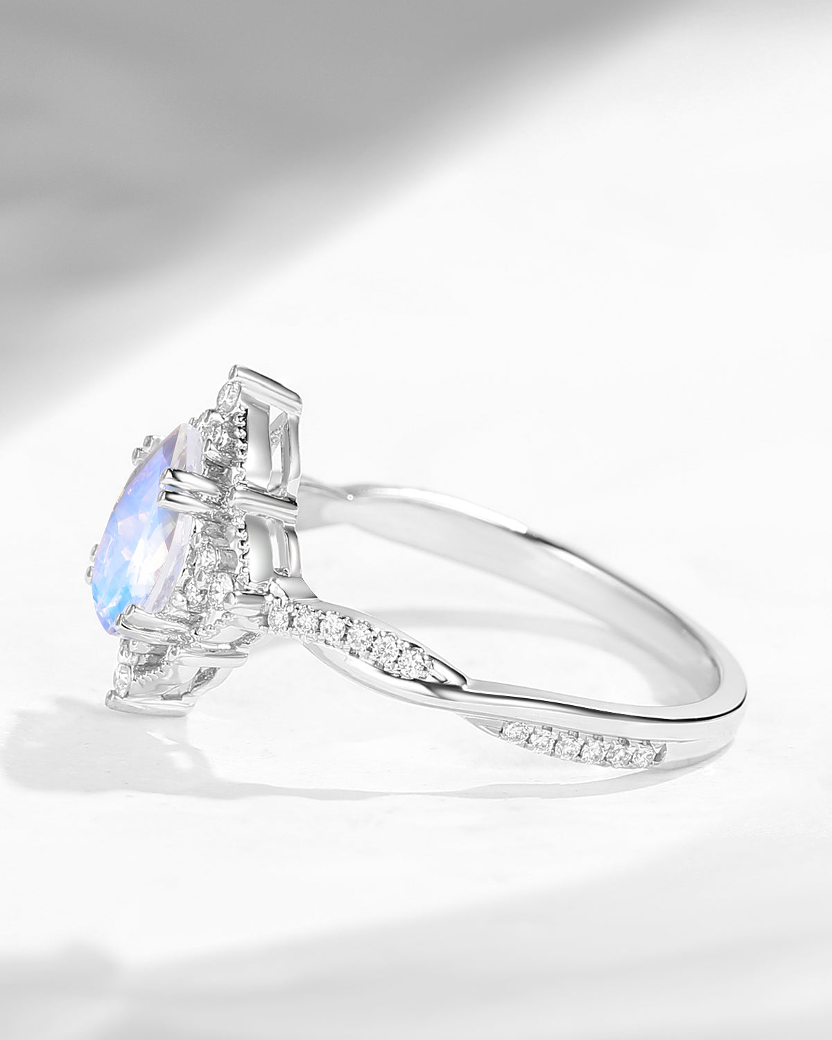 Vintage Style Marquise Moonstone Cage Ring Bridal Set 2pcs