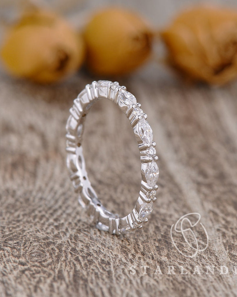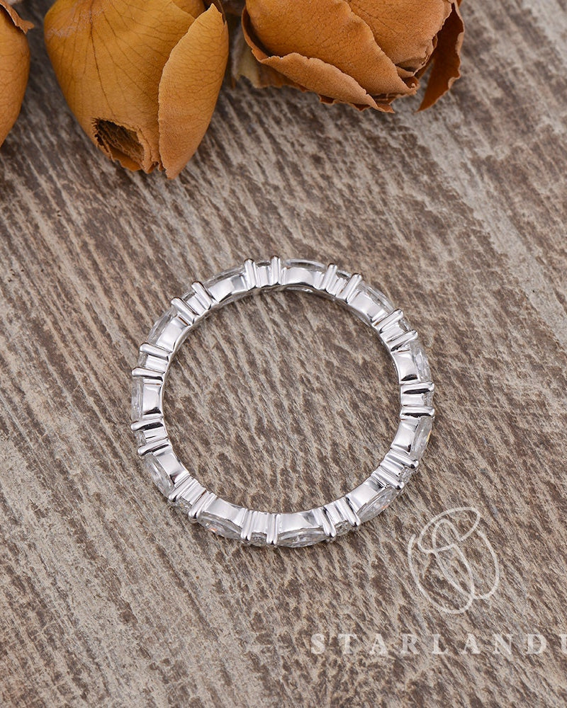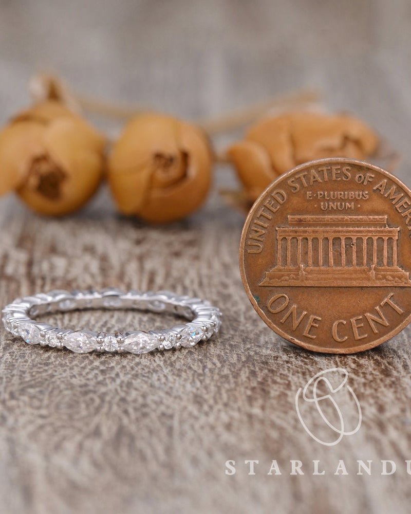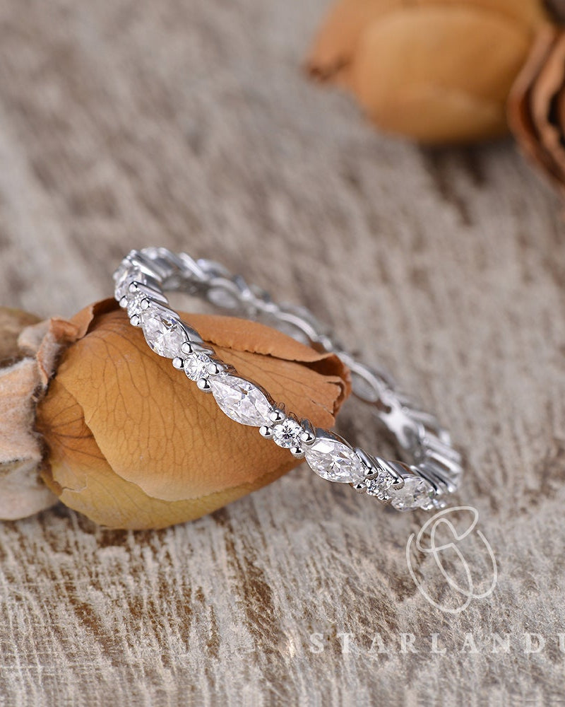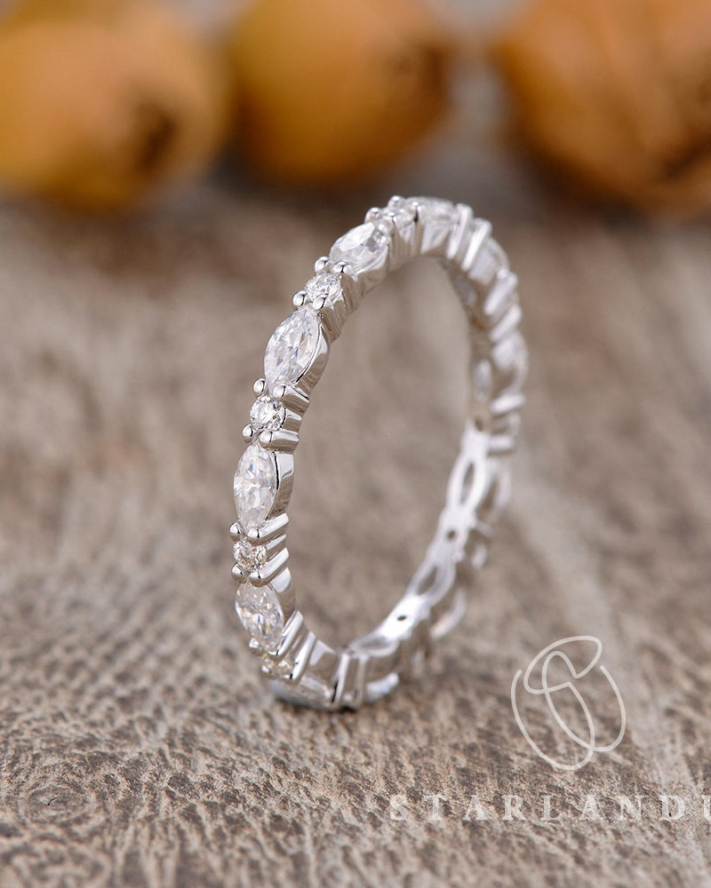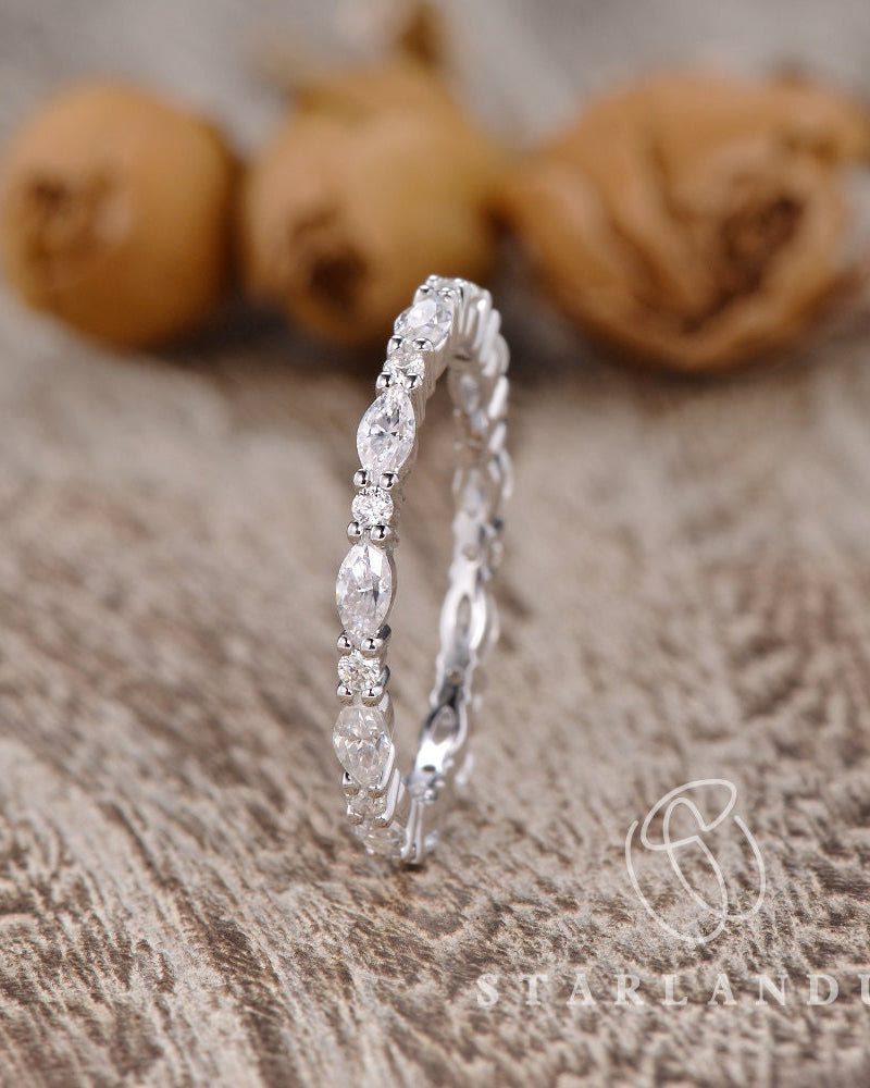Vintage Style Marquise Moonstone Cage Ring Bridal Set 2pcs
