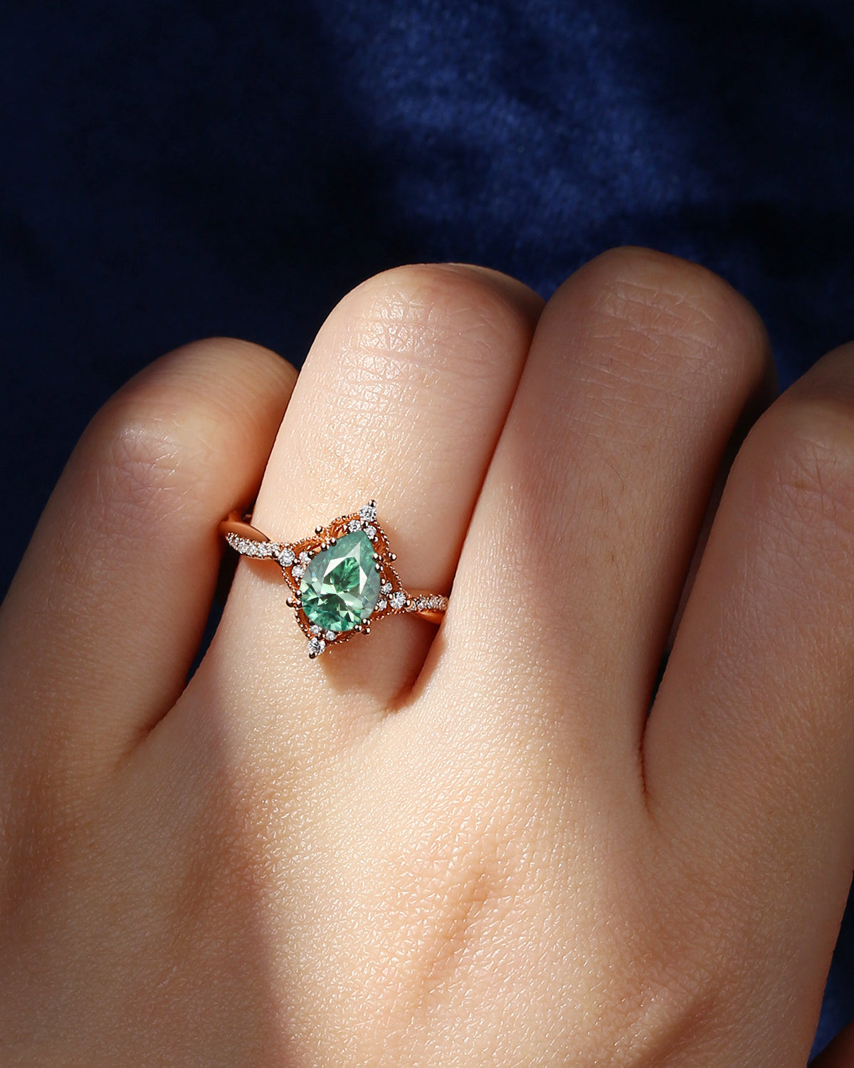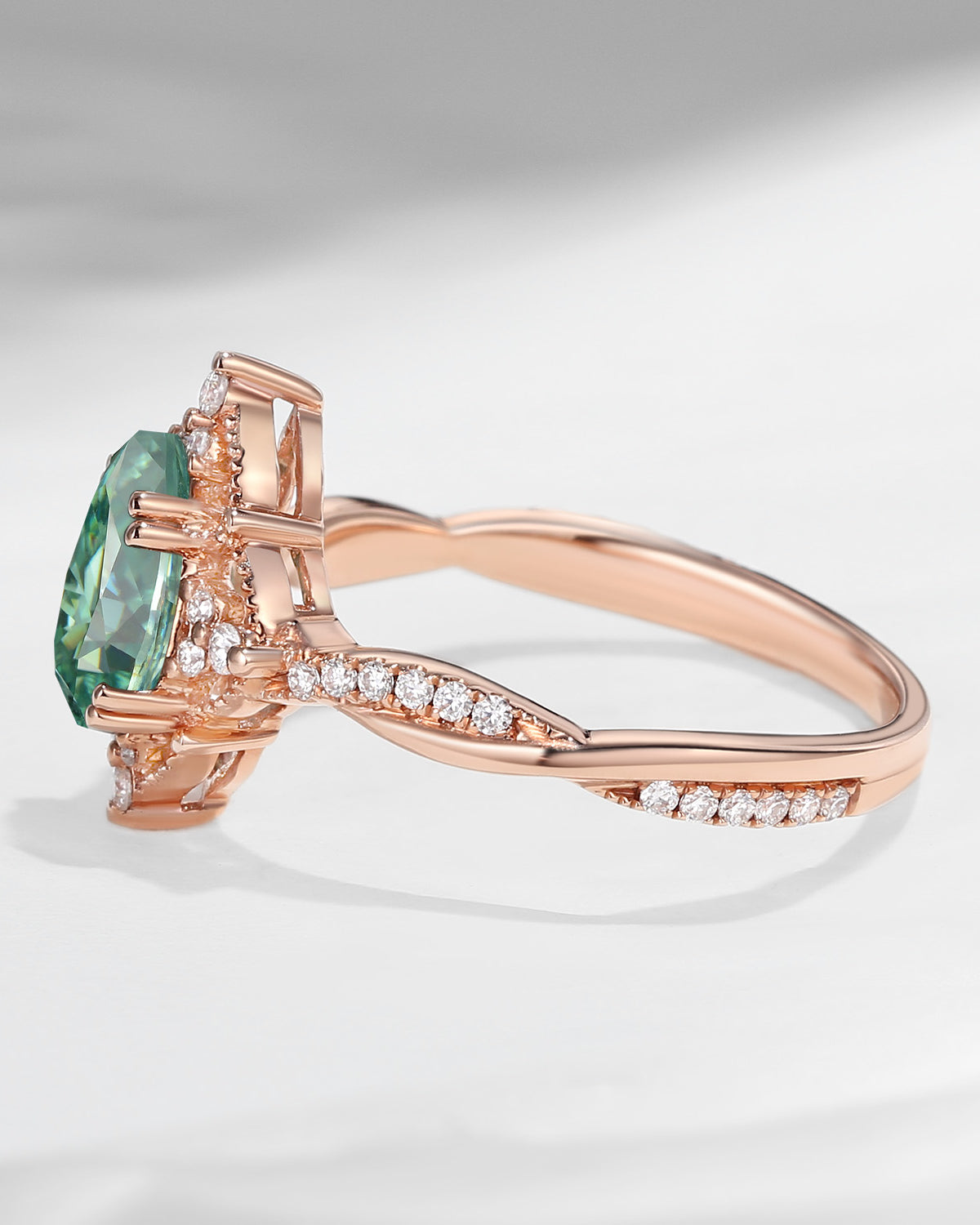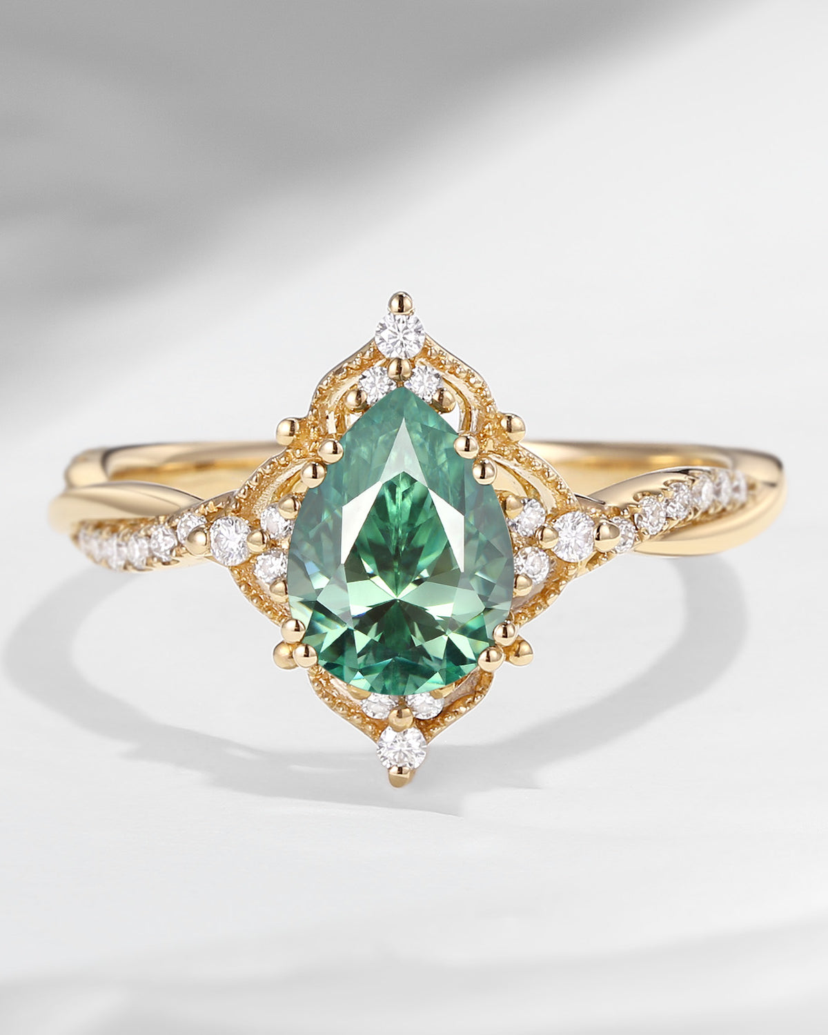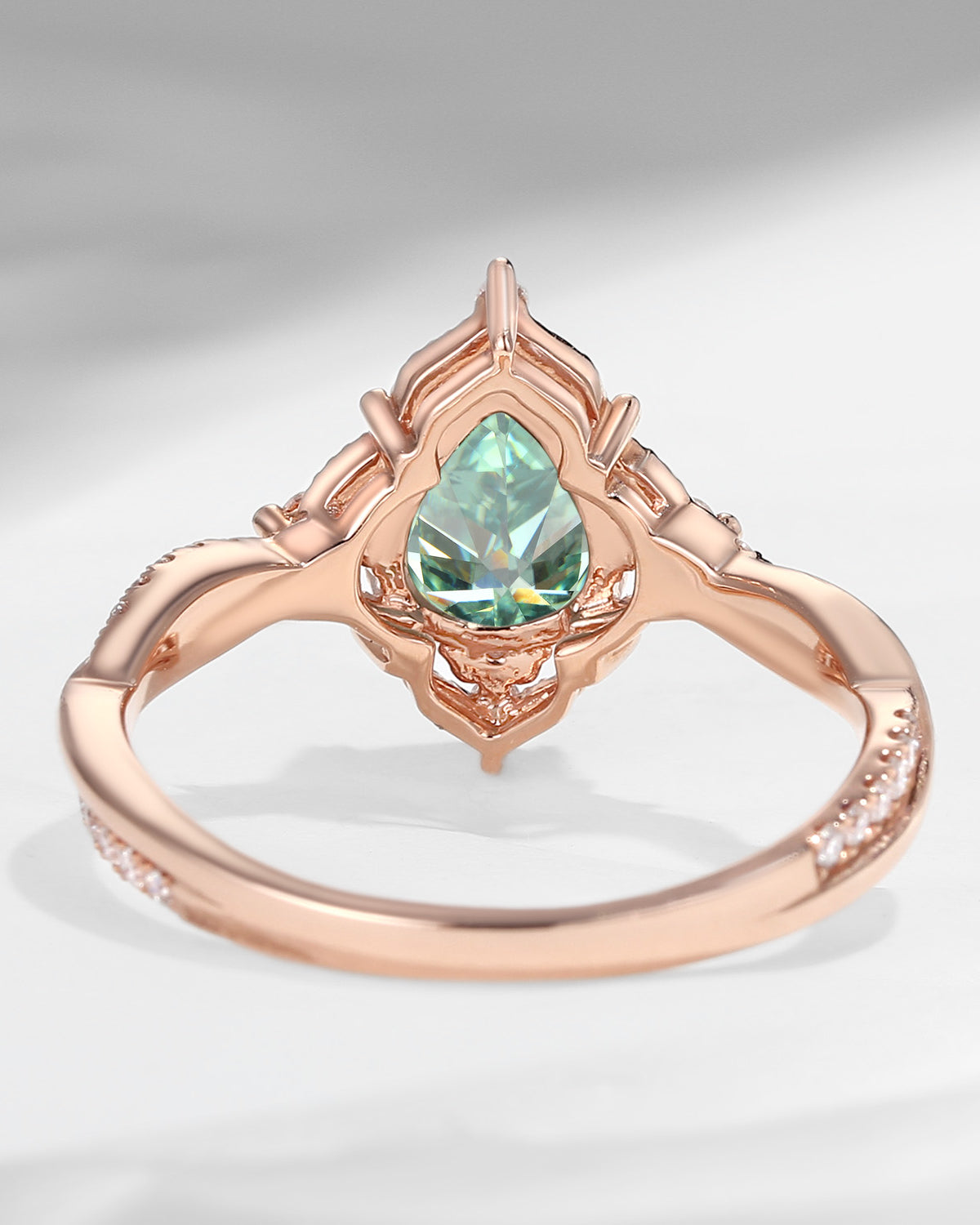 Vintage Style Pear Shaped Green Lab Diamond Infinity Engagement Ring