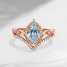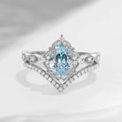 Pear Shaped Natural Aquamarine Engagement Ring Set 2pcs - Evelyn