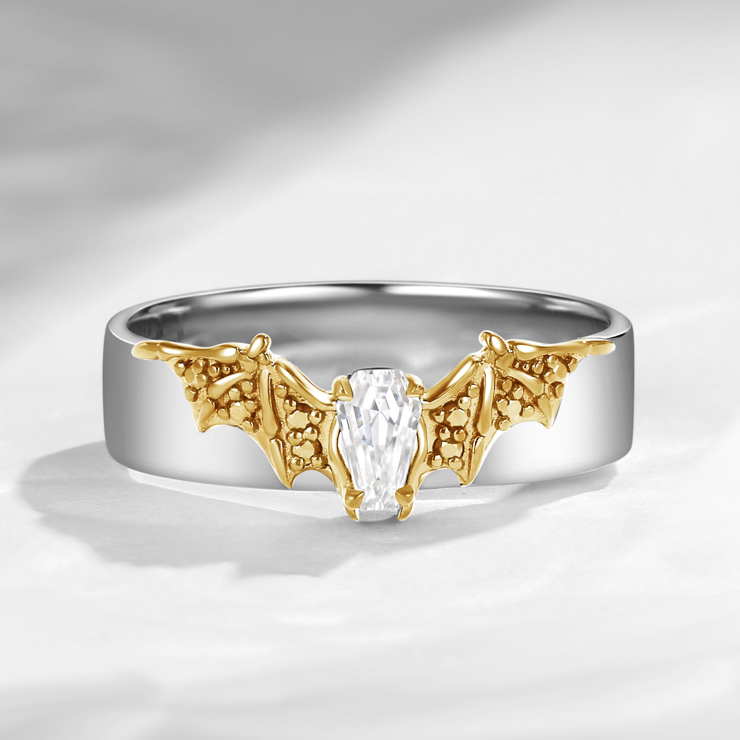Coffin Cut Moissanite Mixed Metal Bat Inspired Wedding Band For Men