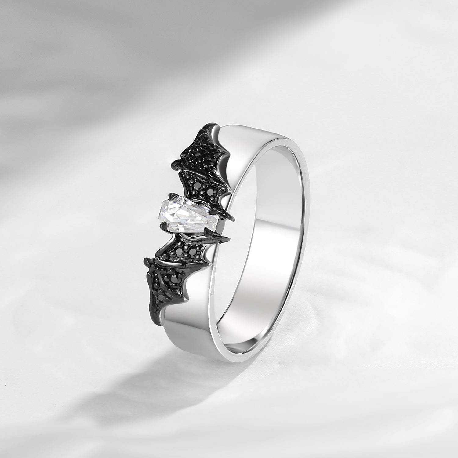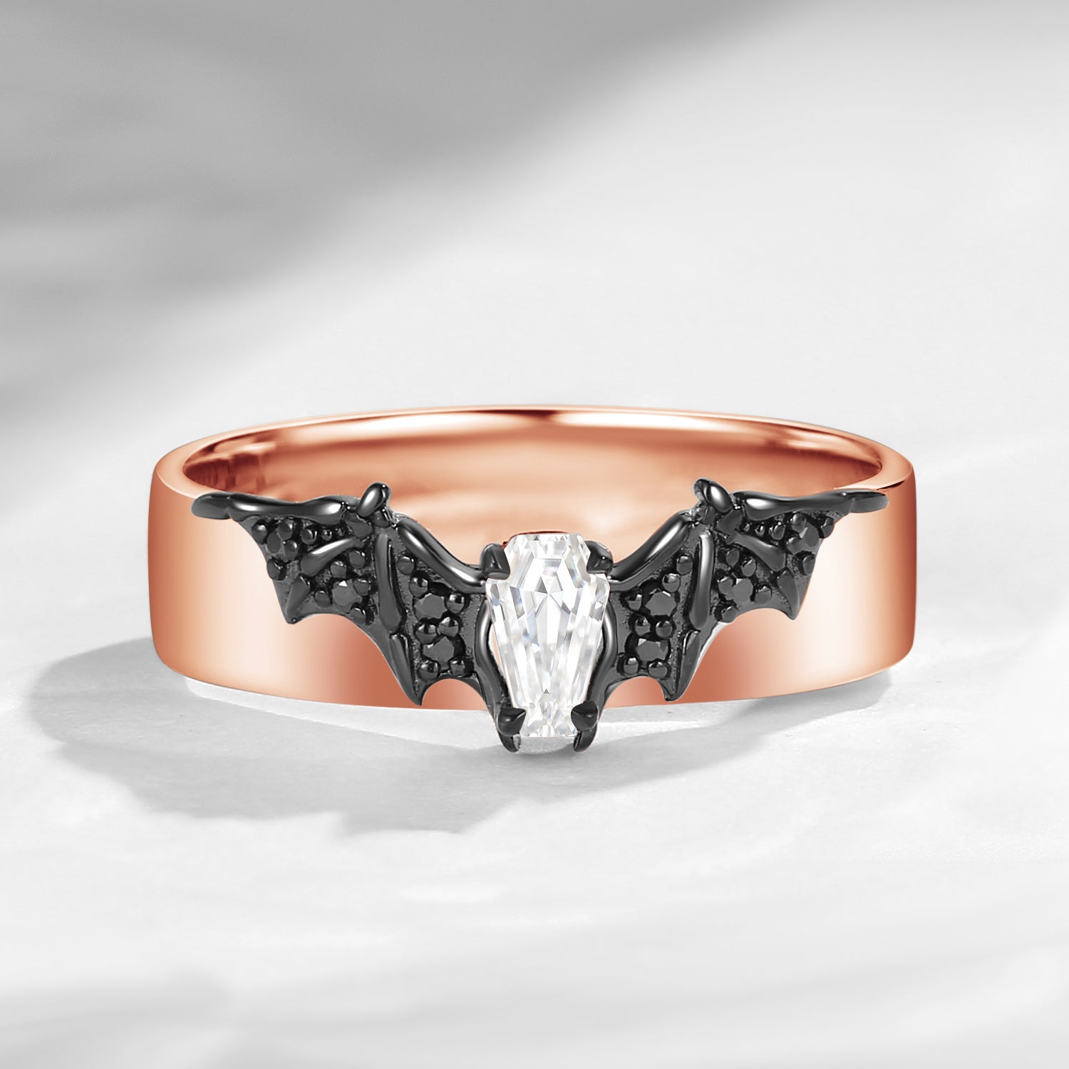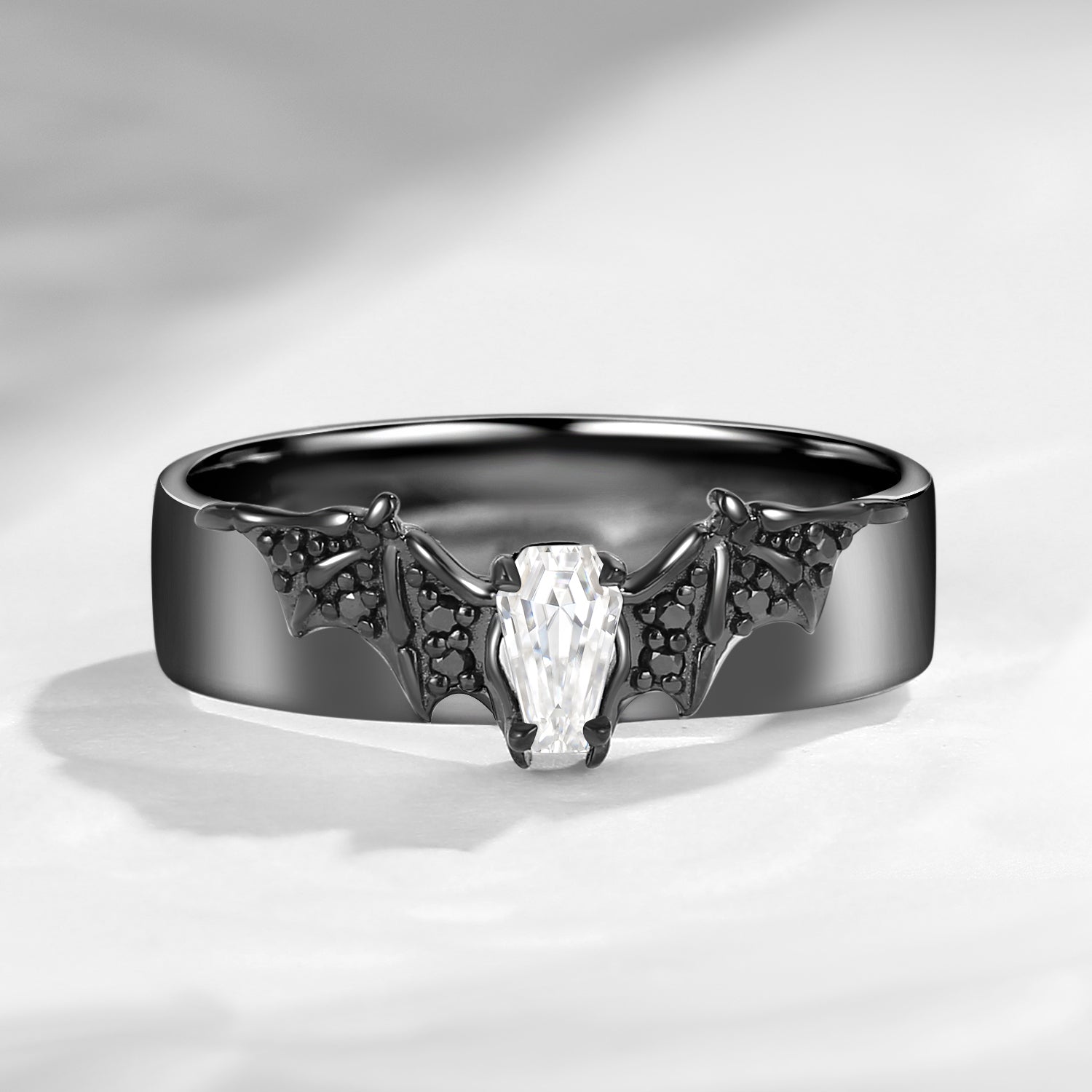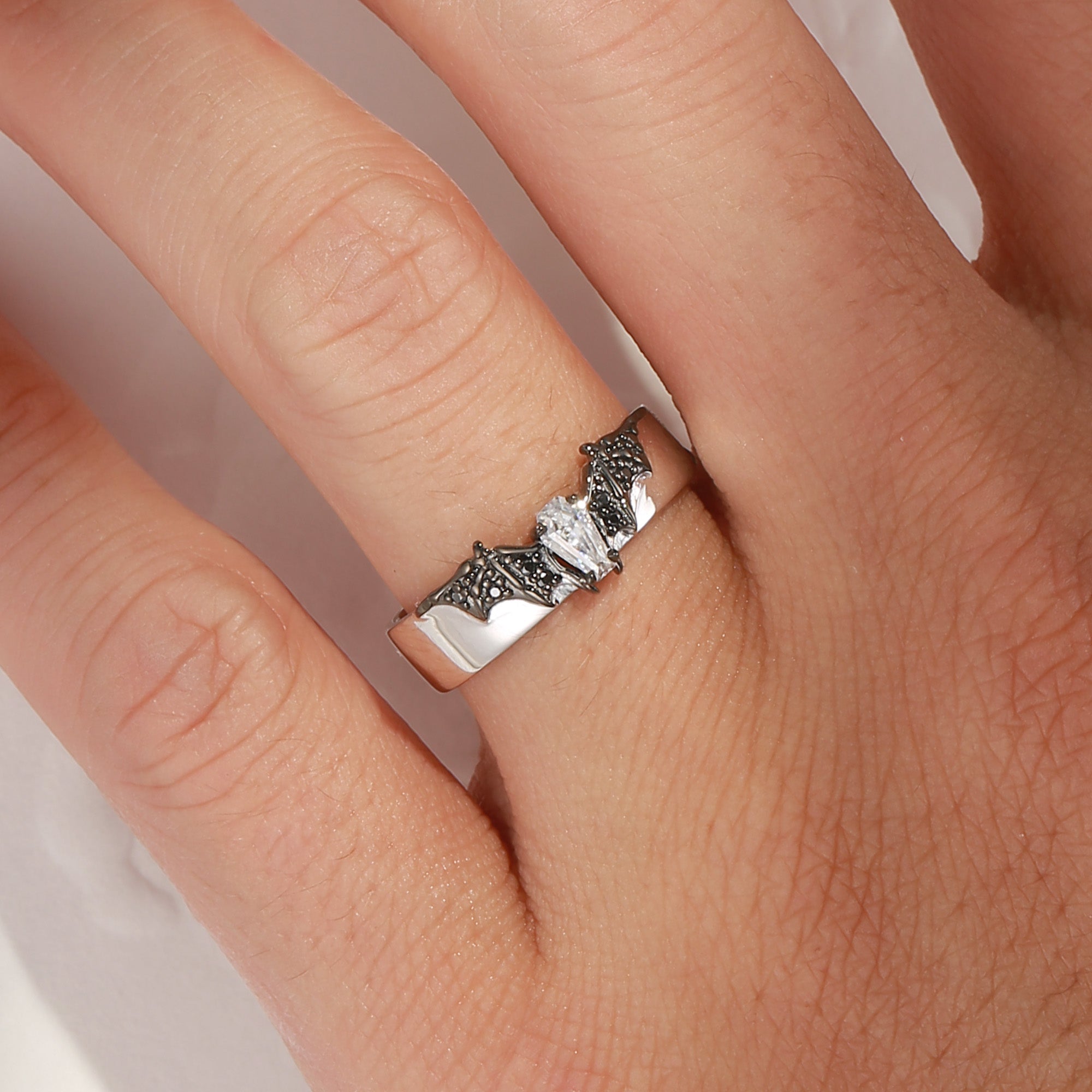 • Design - We creatively combine bat elements with a coffin-shaped central stone, crafting an aura of mystery and allure. The coffin ring and that spooky bat band stack well with/without each other, will totally step up your daily jewelry game. • It Says - Bats**t crazy in love with you.