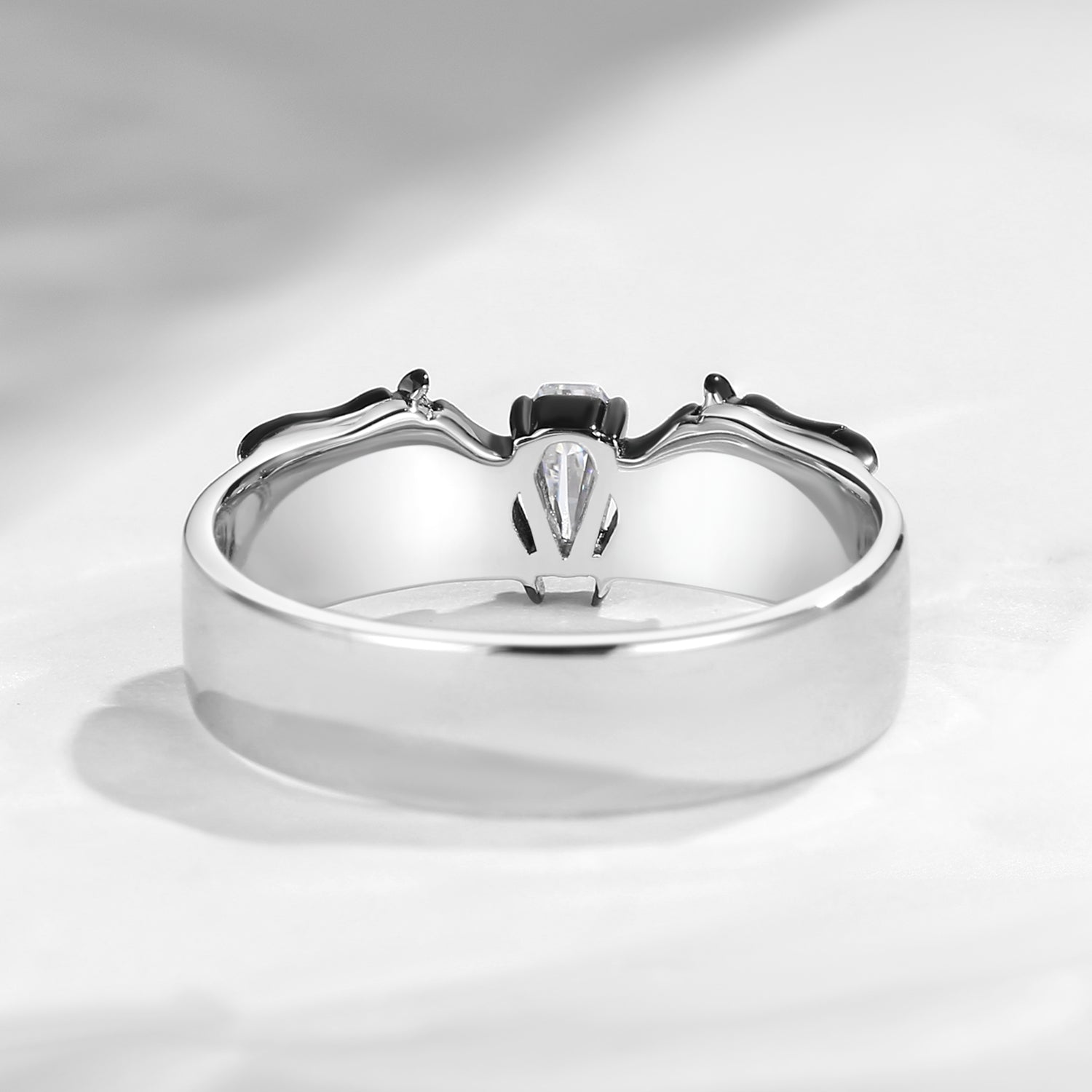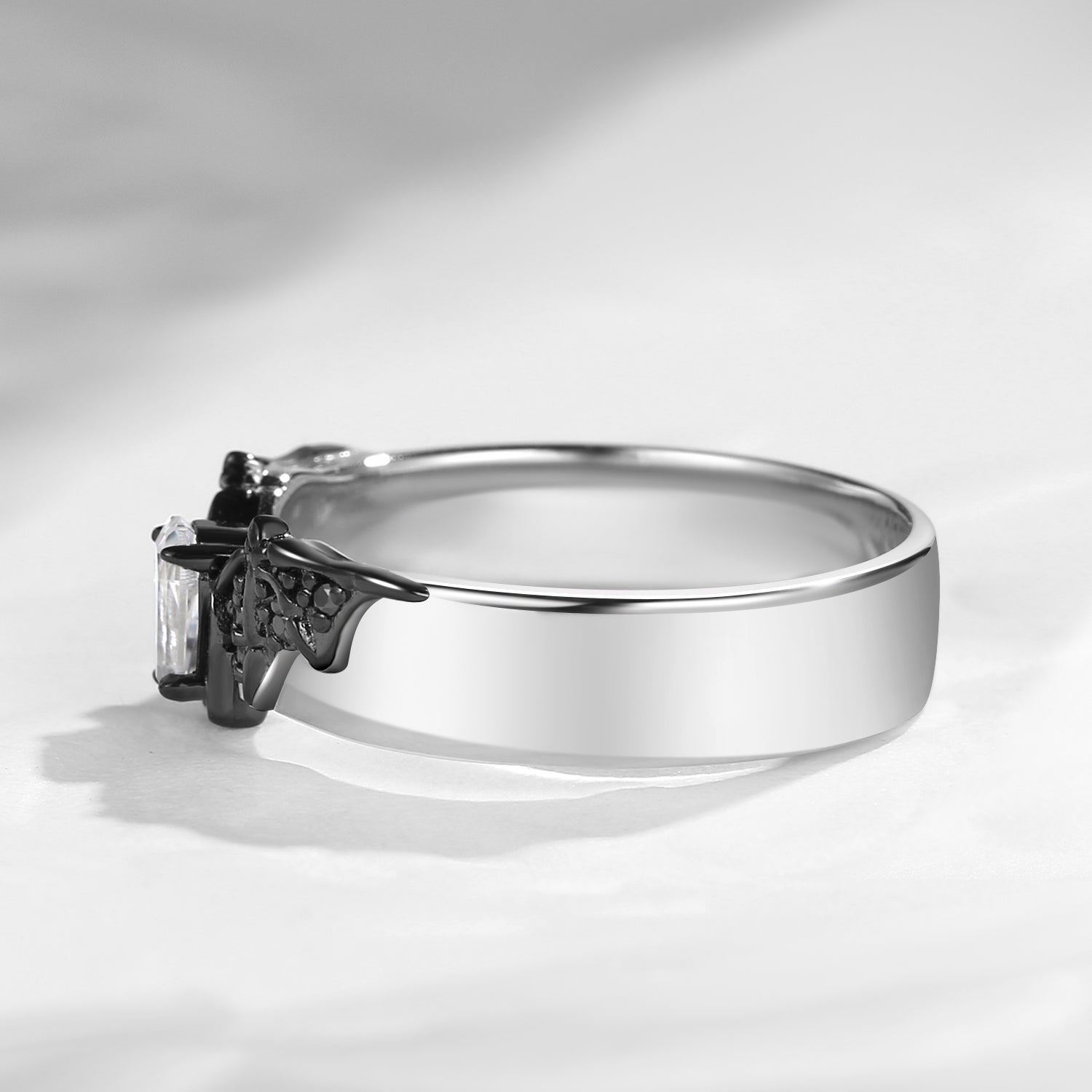 Black Moissanite Kite Cut Unique Engagement Ring - Bat Ring