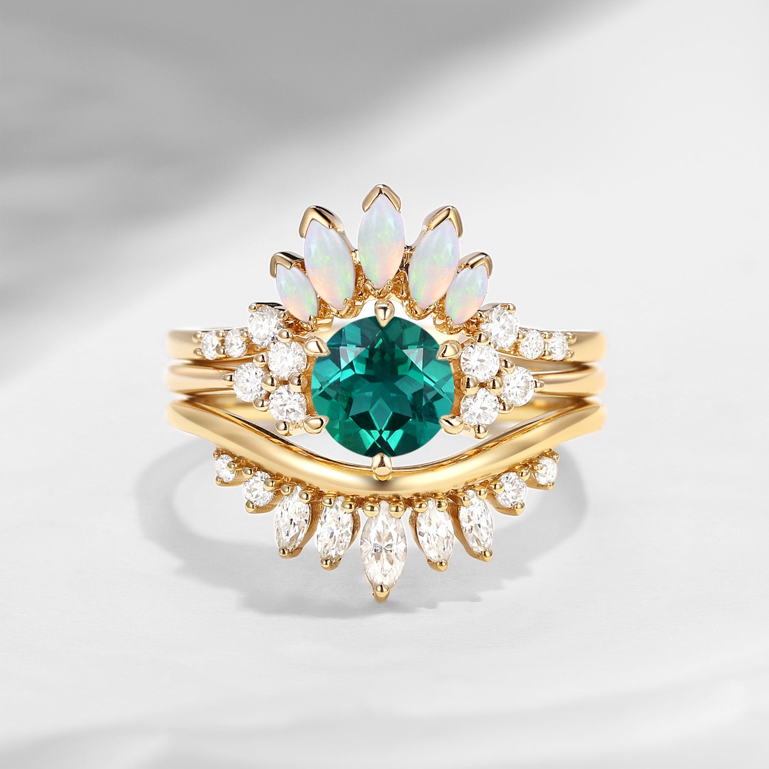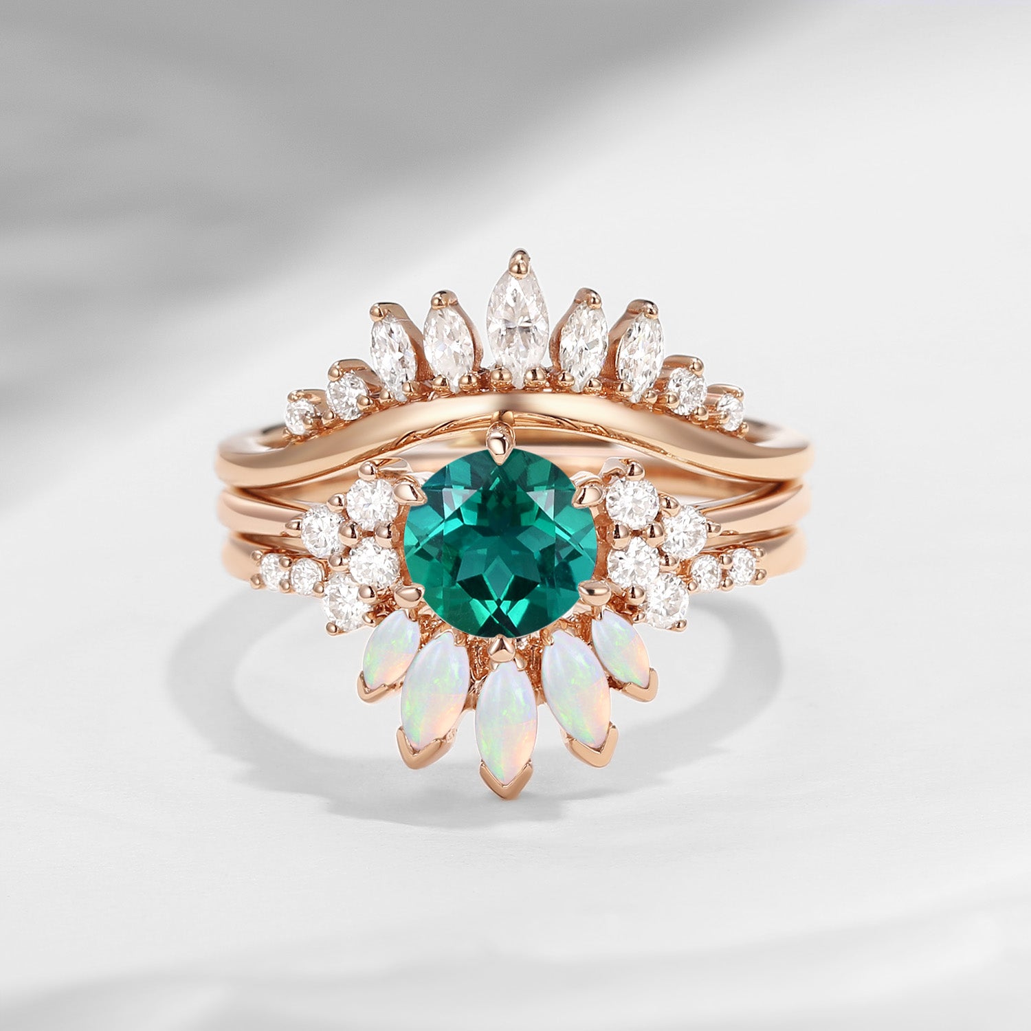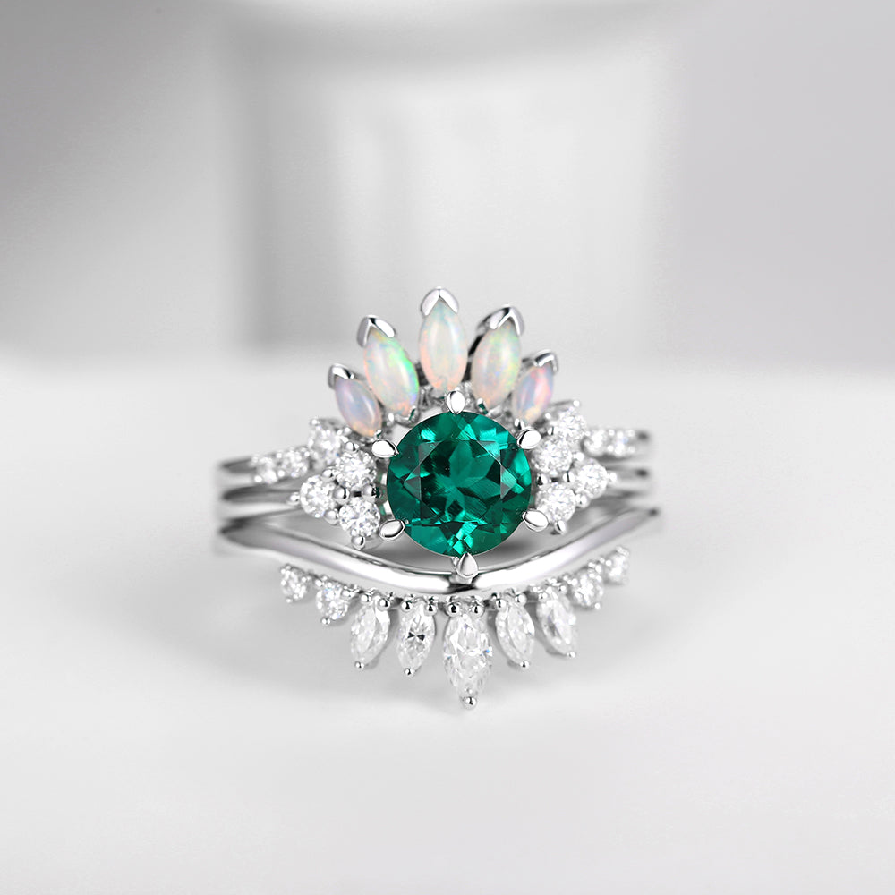Lab Emerald Engagement Ring Set 3pcs Stacking Rose Gold Bridal Set Marquise Opal Cluster Engagement Ring Wedding Band Marquise Moissanite