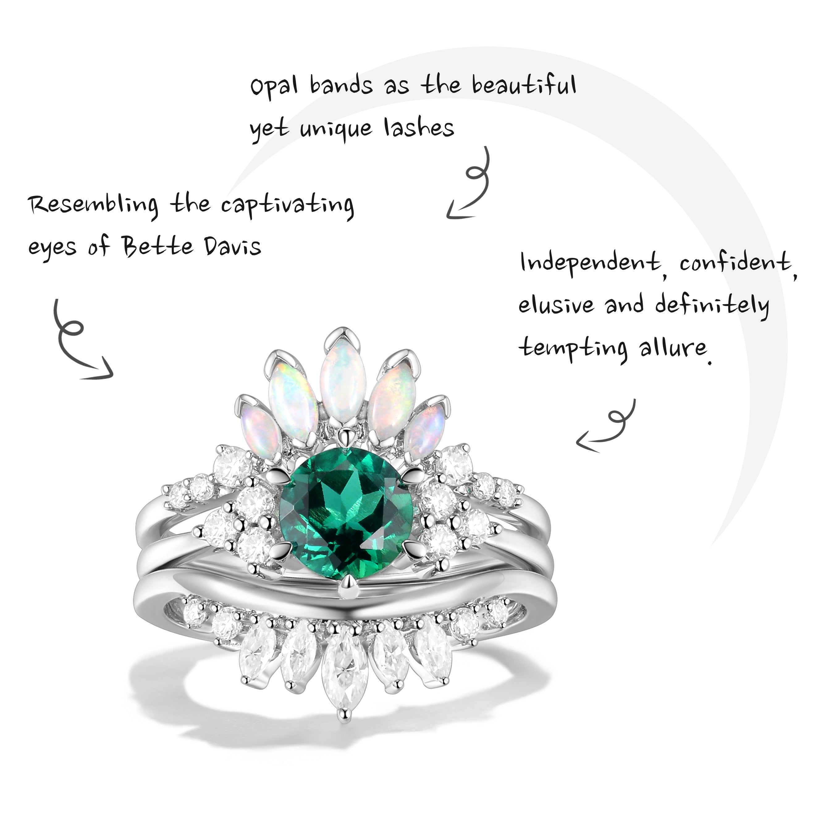 Bette‘s Eyes | Lab Emerald Engagement Ring Set 3pcs