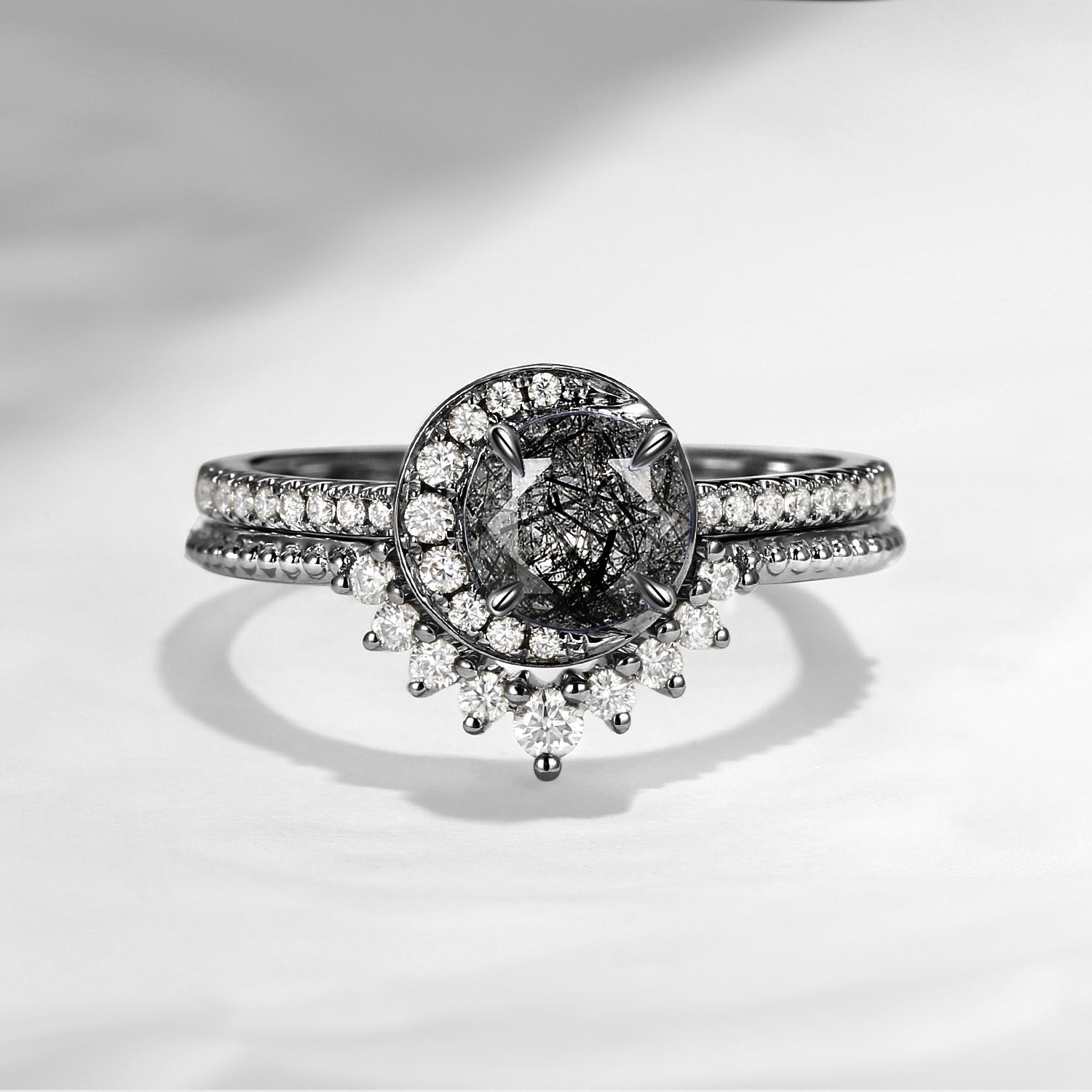 Crescent Moon | Vintage Coffin Black Rutilated Quartz Engagement Ring Jacket 2pcs - Guardian Angel