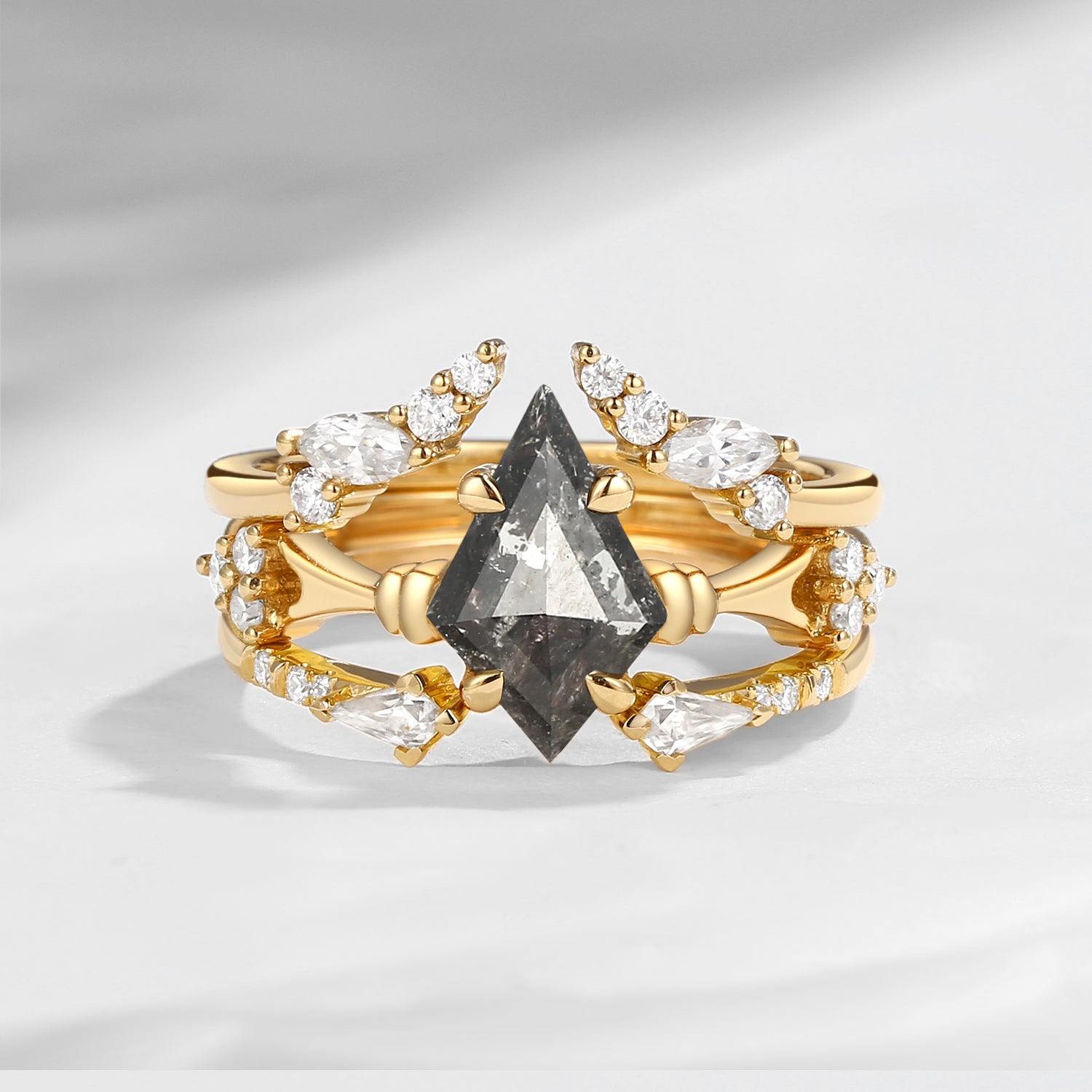 Crescent Moon | Kite Cut Salt and Pepper Diamond 'Noir' Engagement Ring Set 3pcs