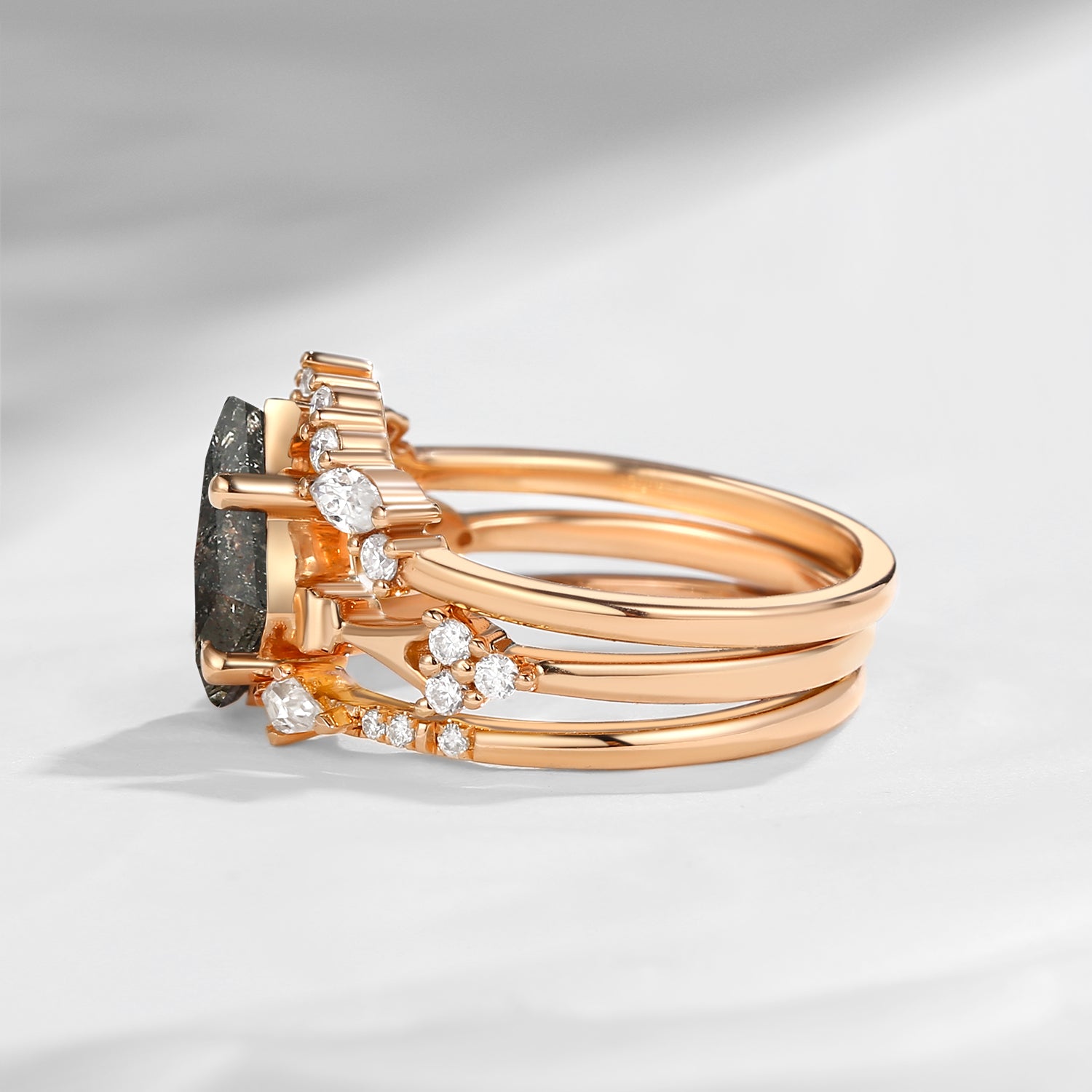 Crescent Moon | Pear Shaped Salt and Pepper Diamond Engagement Ring Set 2pcs - Luna