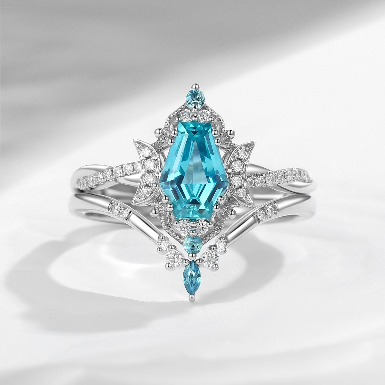 • Design - 'Alexandria‘ features a distinctive coffin-shaped Black Rutilated Quartz in the iconic Crescent Moon Setting. The band is designed with an infinity twist, all these elements to symbolize the end of the past and the beginning of a new life, aligning perfectly with the commitment of engagement.