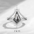 Kite Natural Salt and Pepper Diamond Engagement Ring White Gold Engagement Ring Dainty Wedding Ring Set Bridal Set Women