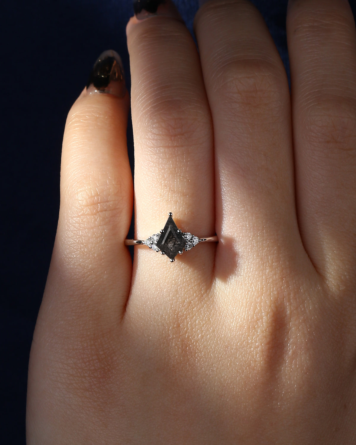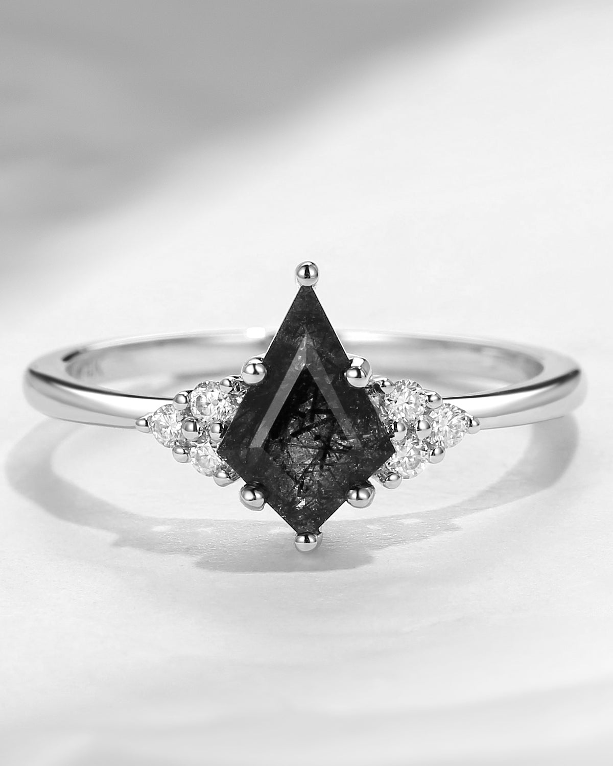 Art Deco Kite Cut Black Rutilated Quartz Engagement Ring