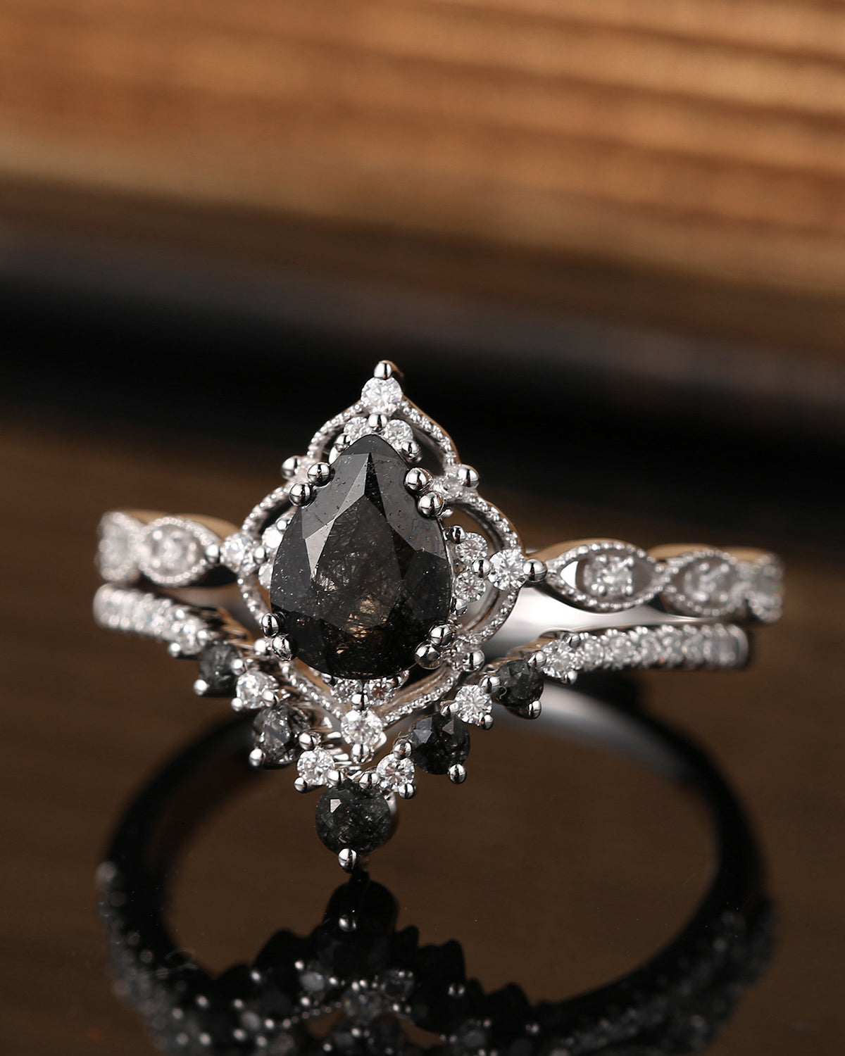 Bette‘s Eyes | Salt And Pepper Diamonds Engagement Ring Set 3pcs
