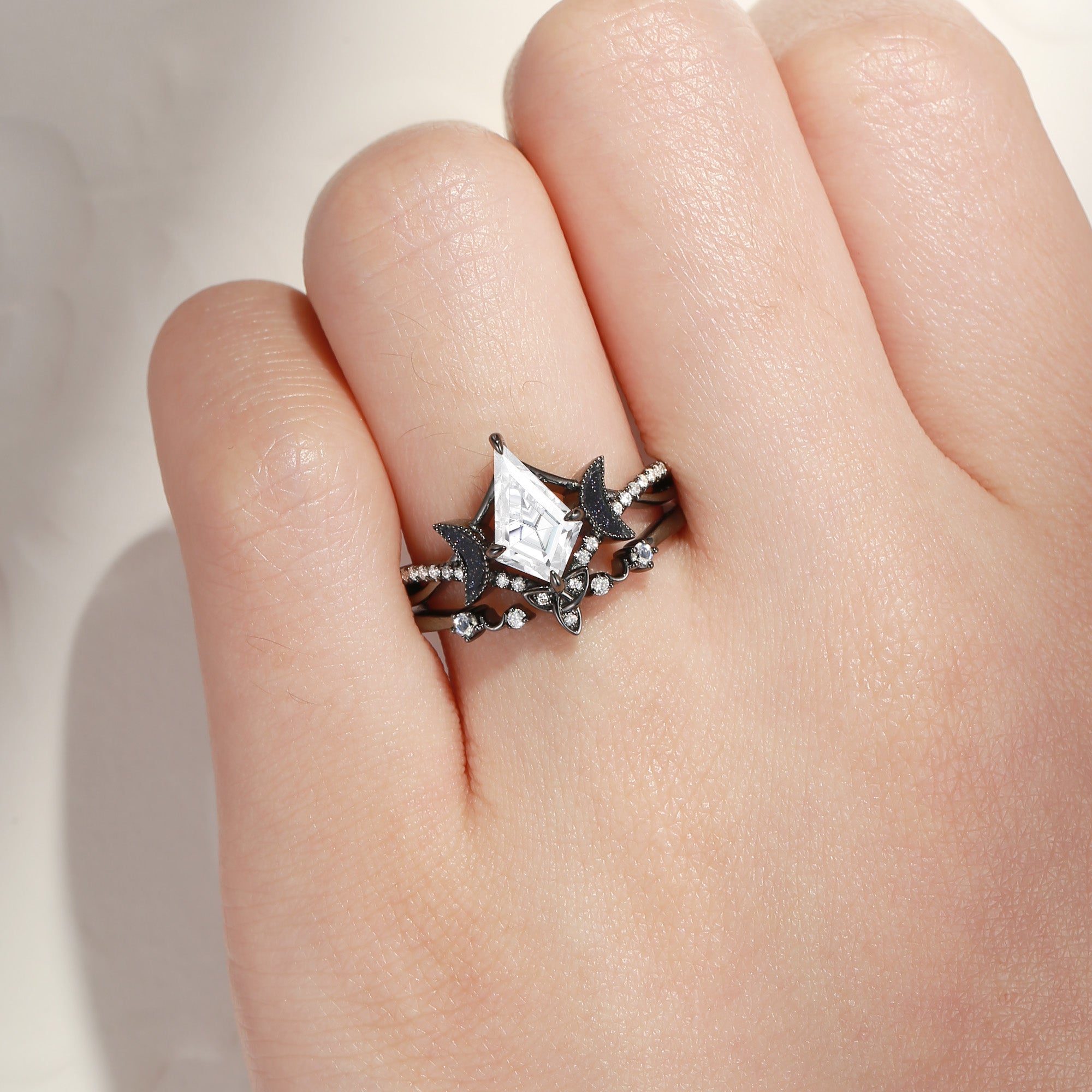 Celtic Moon | Kite Shaped Art Deco Moissanite Bridal Set 2pcs