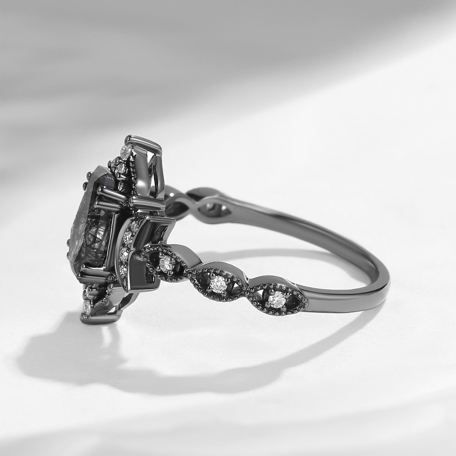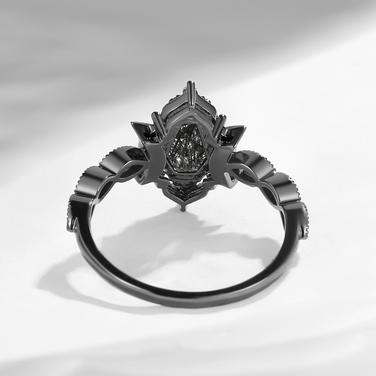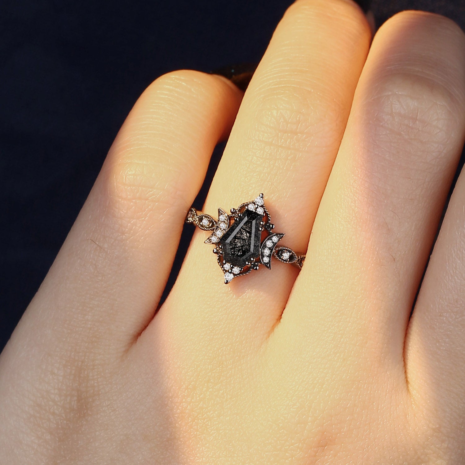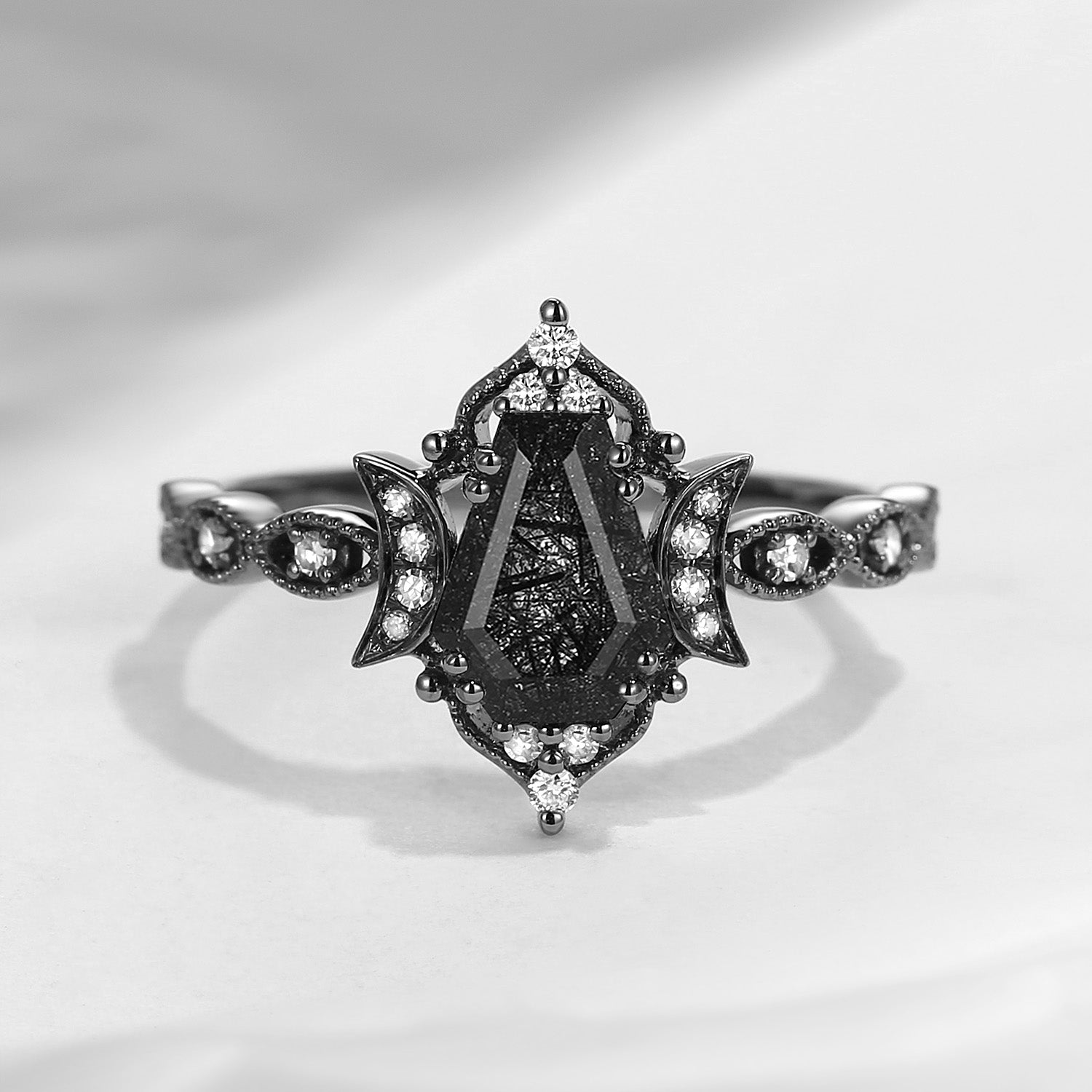 Crescent Moon | Coffin Cut Black Rutilated Quartz 'Black Statement' Ring