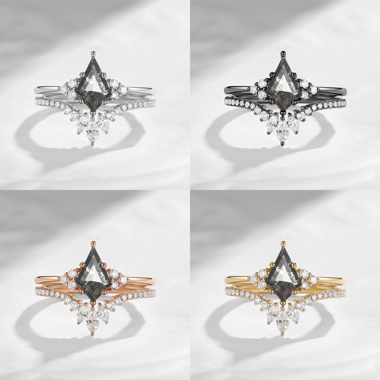 Kite Cut Natural Salt and Pepper Diamond Black Gold Engagement Ring - Electra