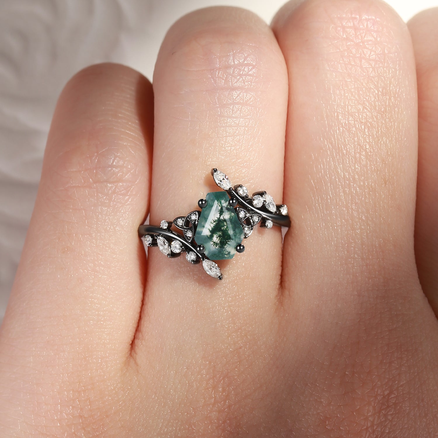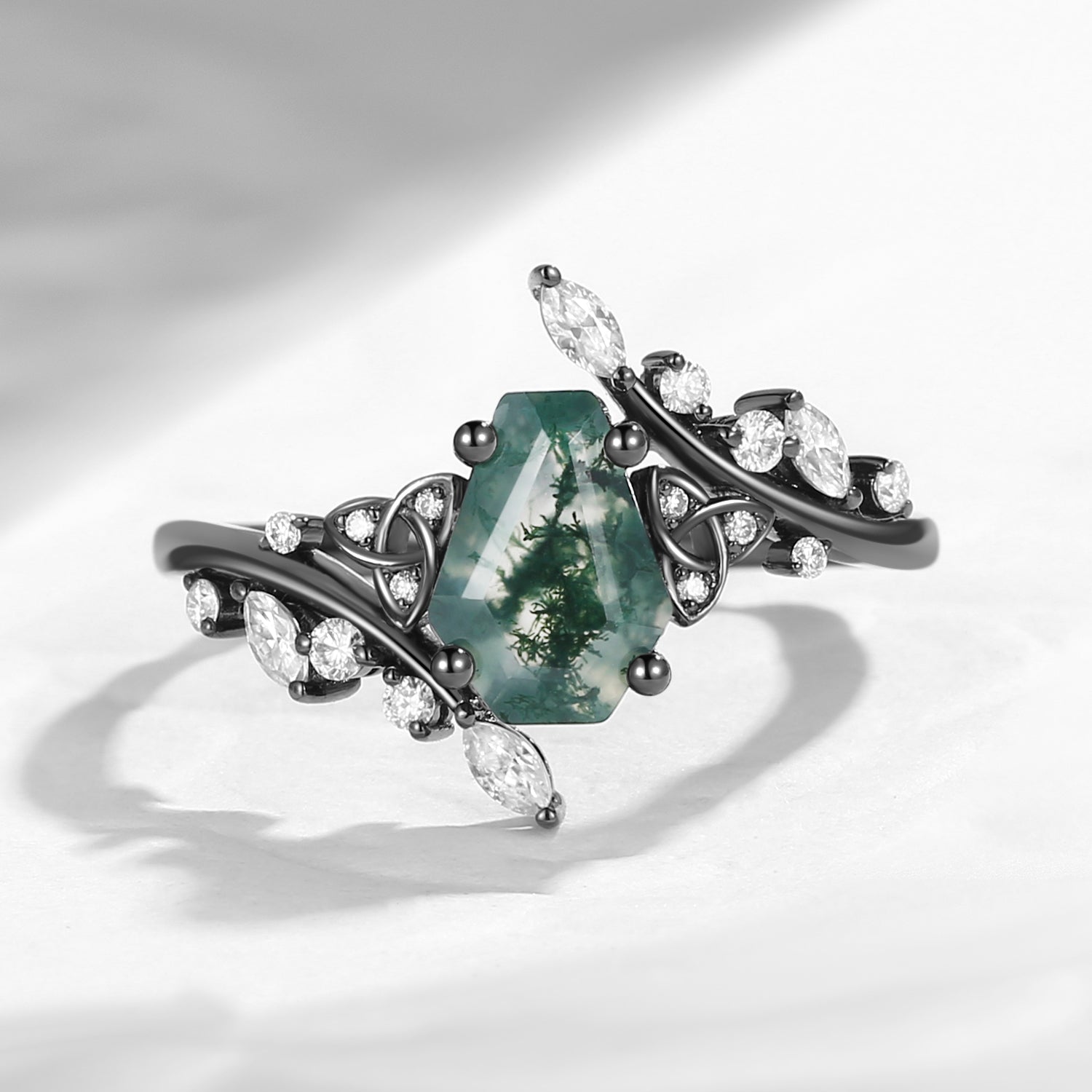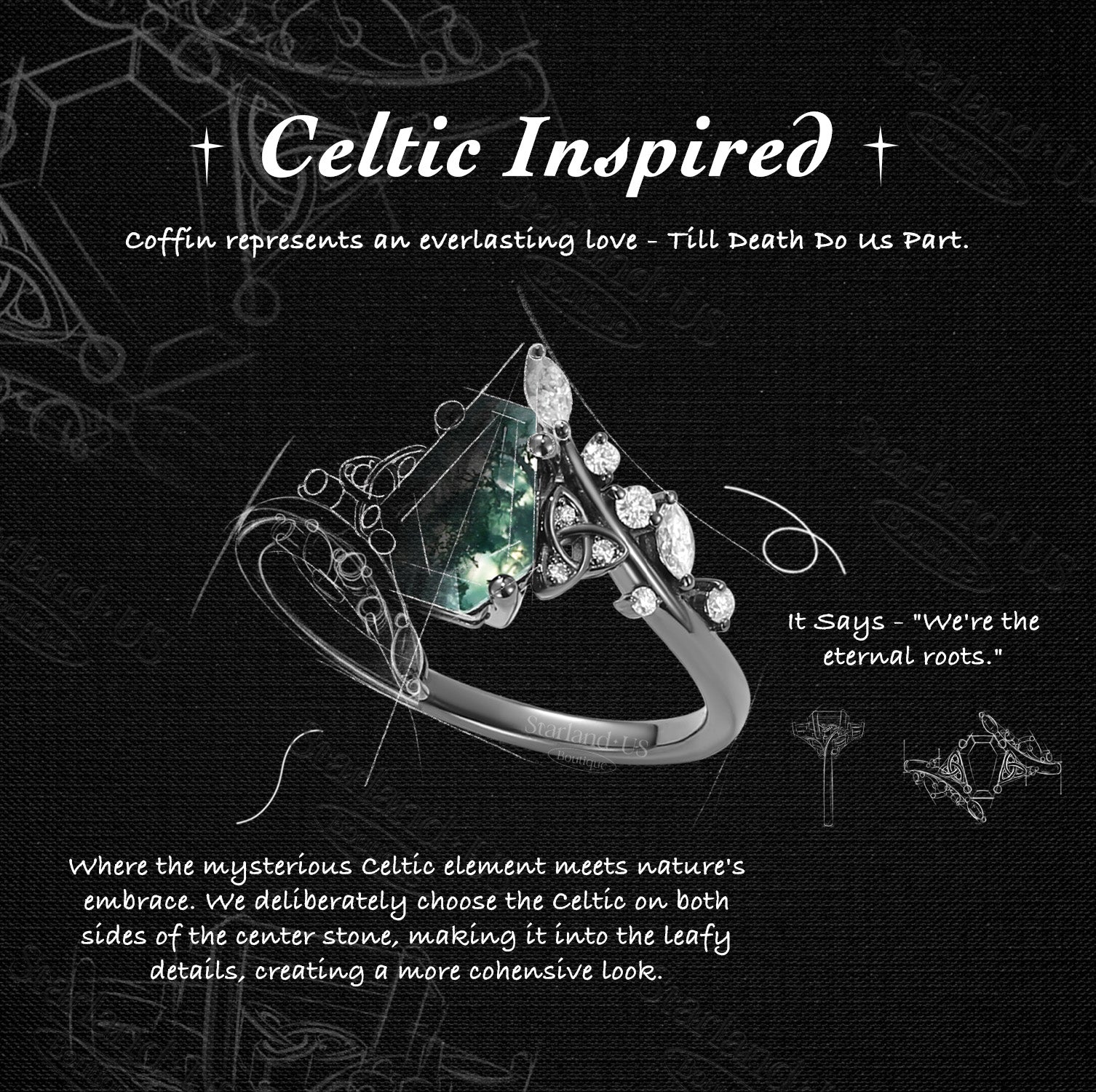 Coffin Moss Agate Nature Inspired Celtic Engagement Ring